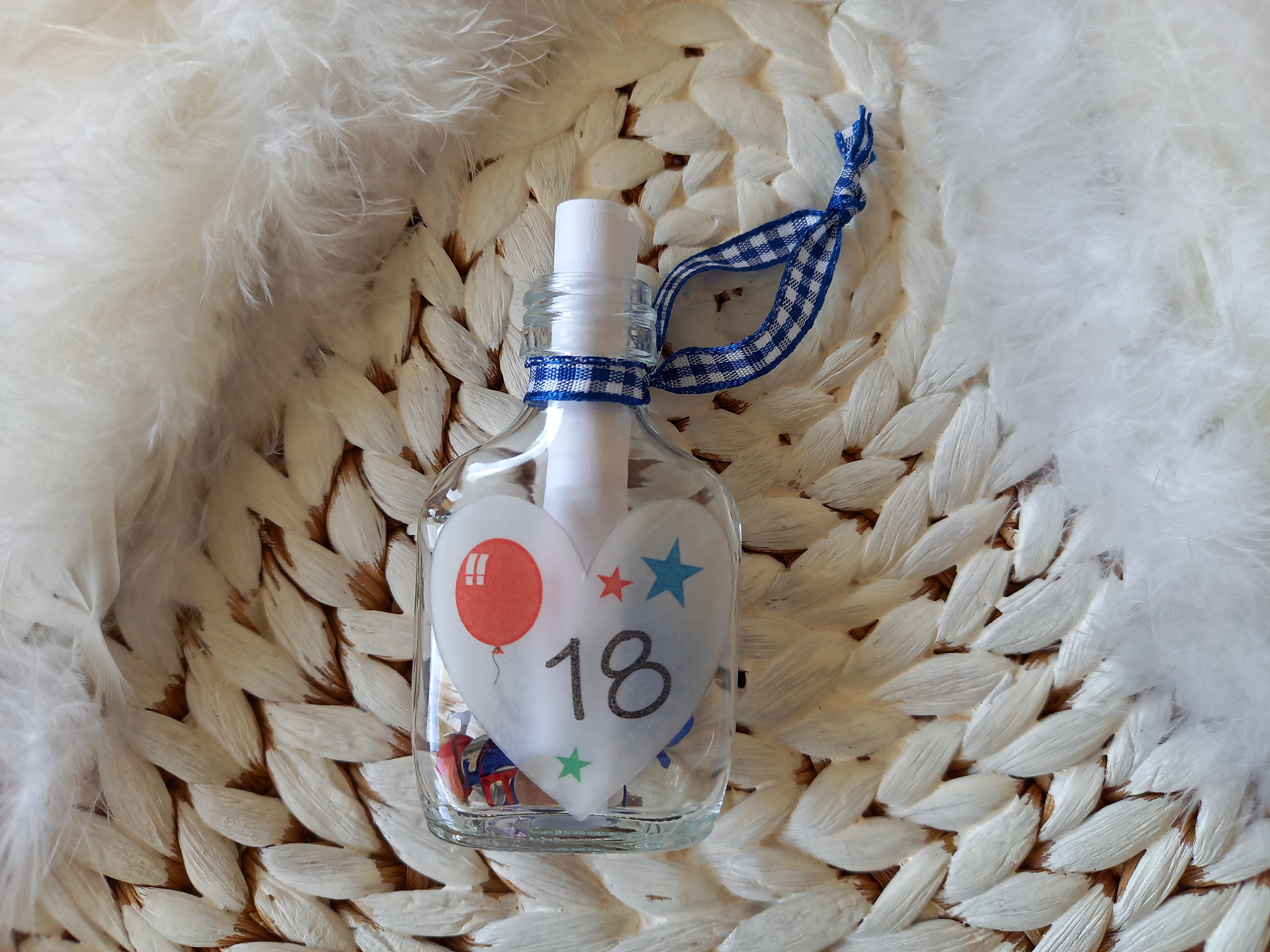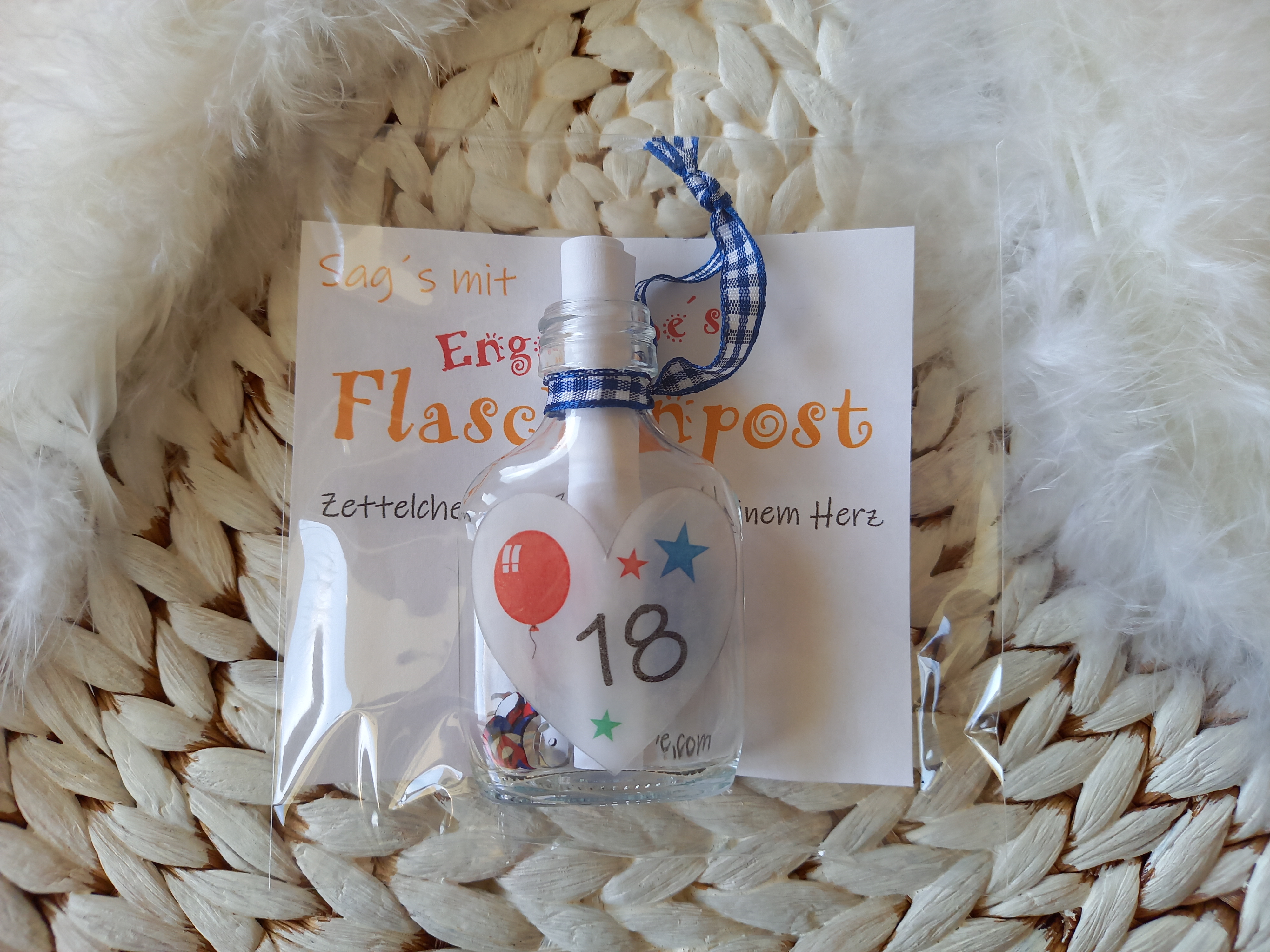 ...süßes Fläschchen mit Zettel (+ Ersatzzettel) für liebe Zeilen.