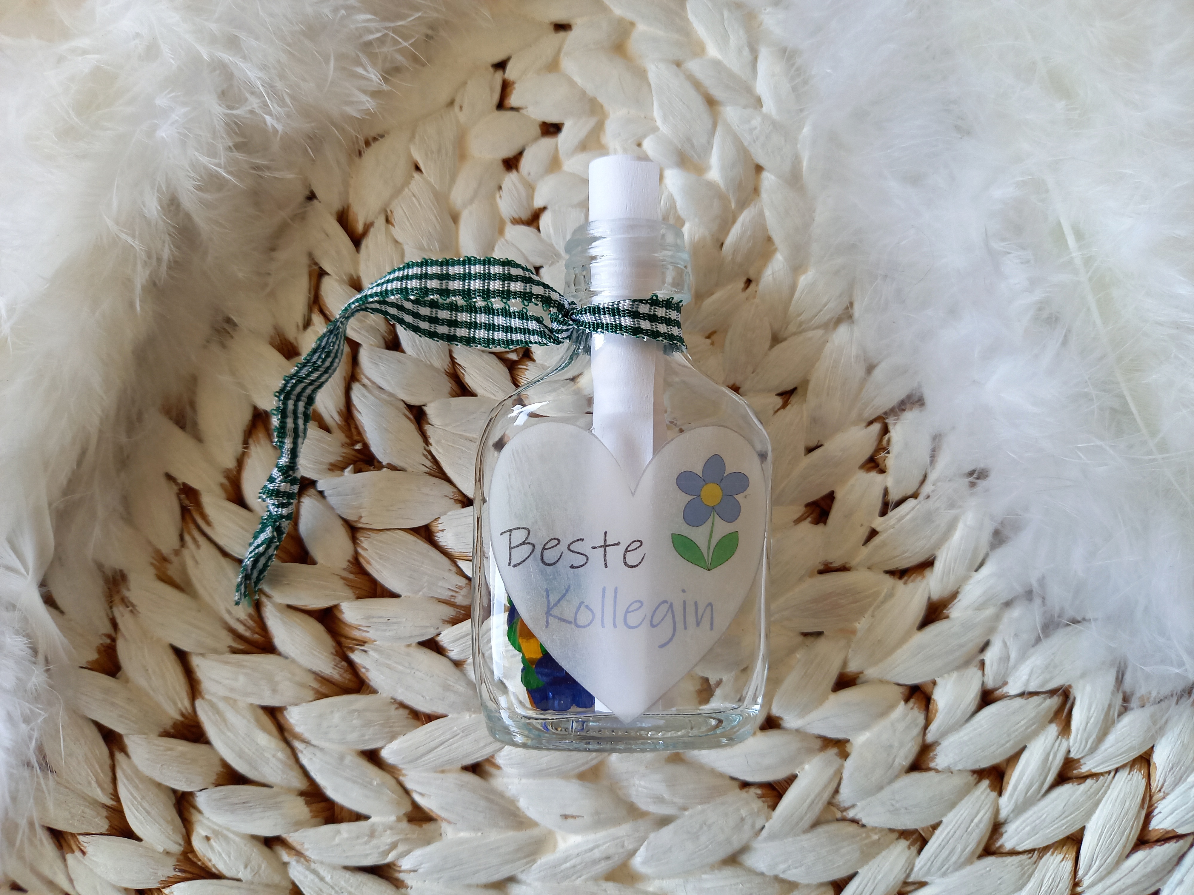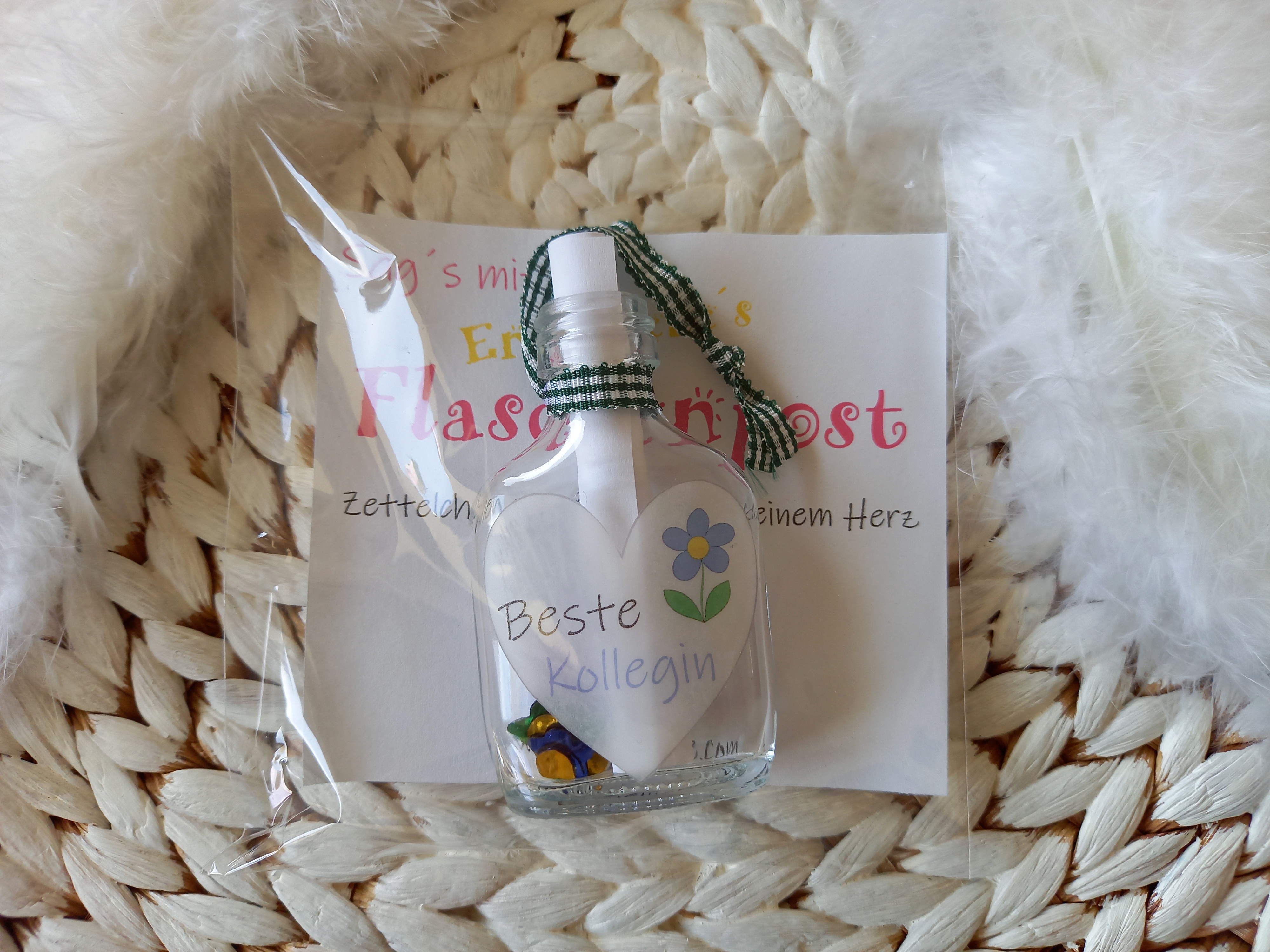...süßes Fläschchen mit Zettel (+ Ersatzzettel) für liebe Zeilen.