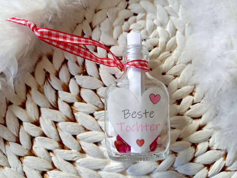 Beschriftung: Beste Tochter Größe: 7 x 4 x 1,5 cm, Zettel 9 x 7,5 cm