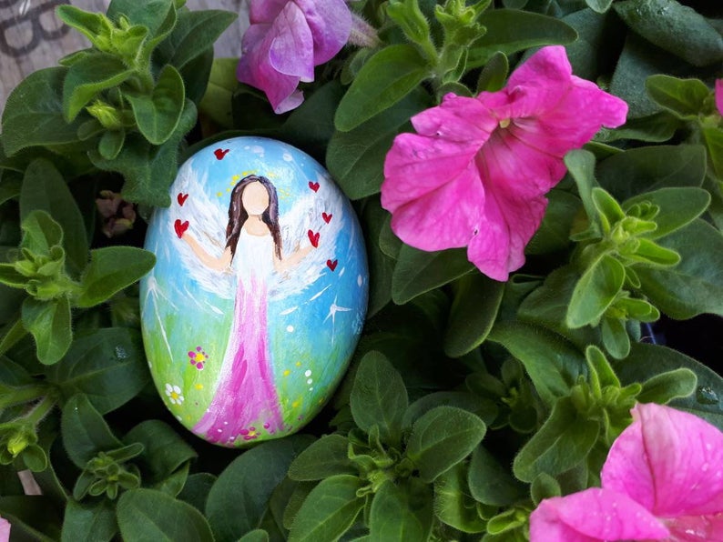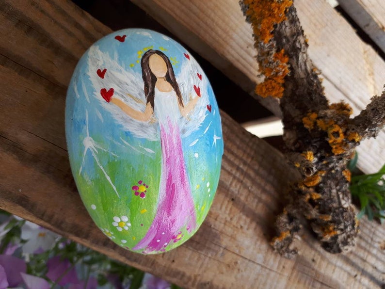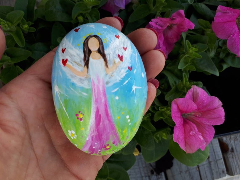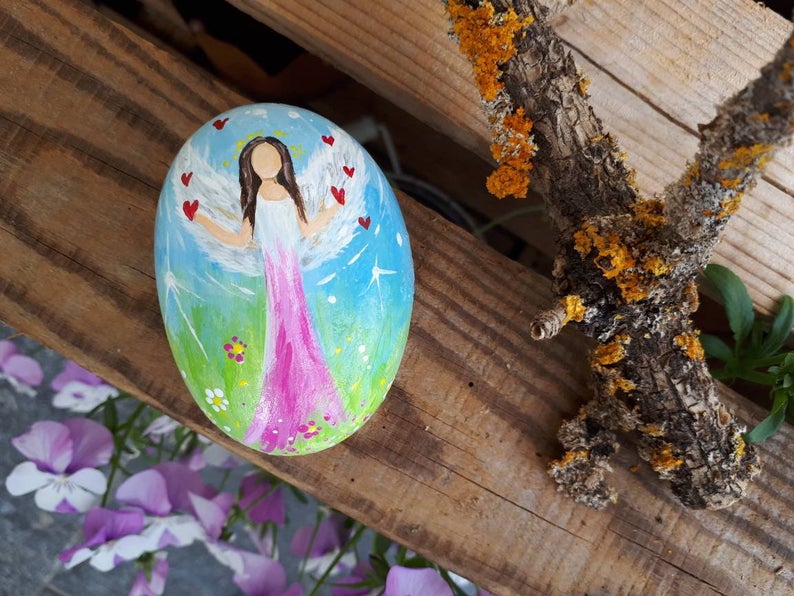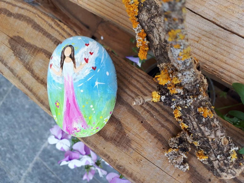 Wunderschöner Deko-Stein mit einem Engel bemalt