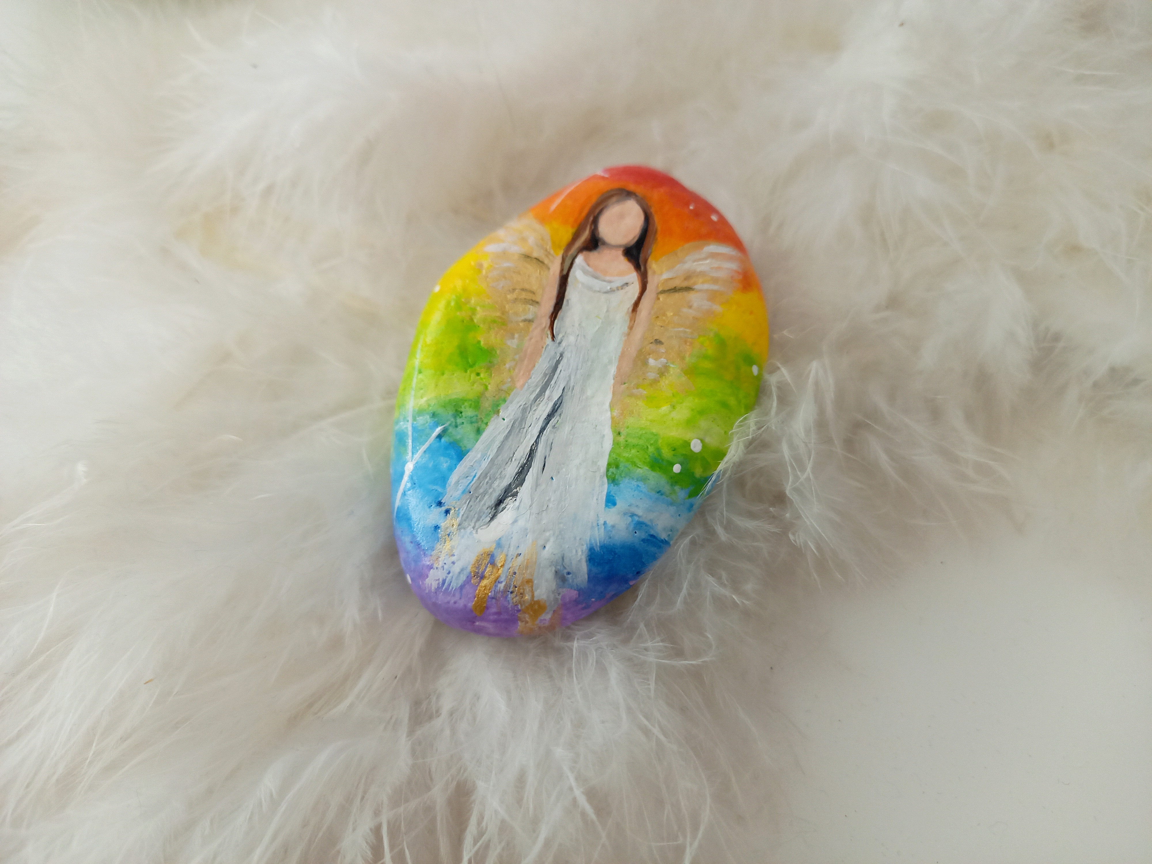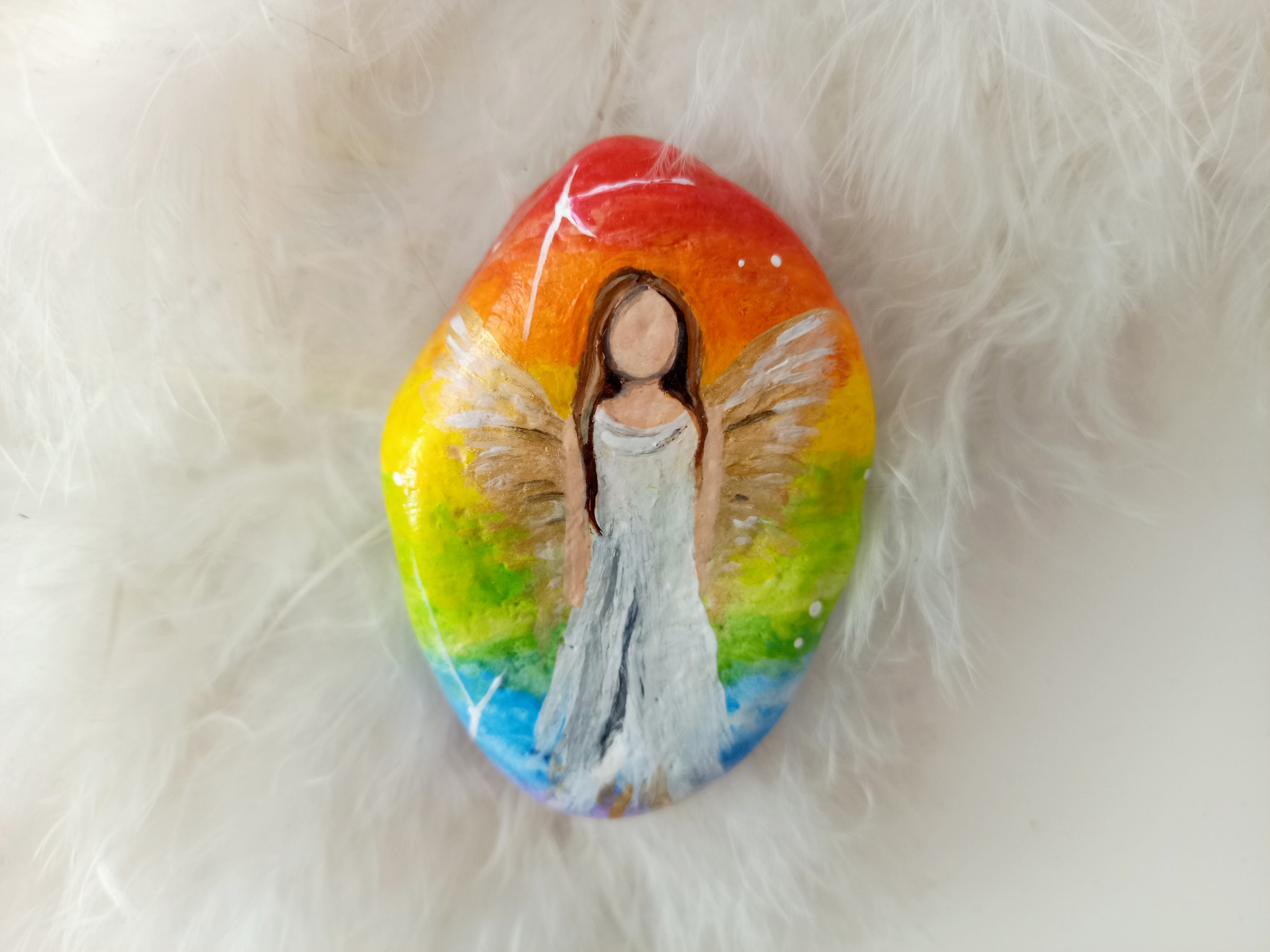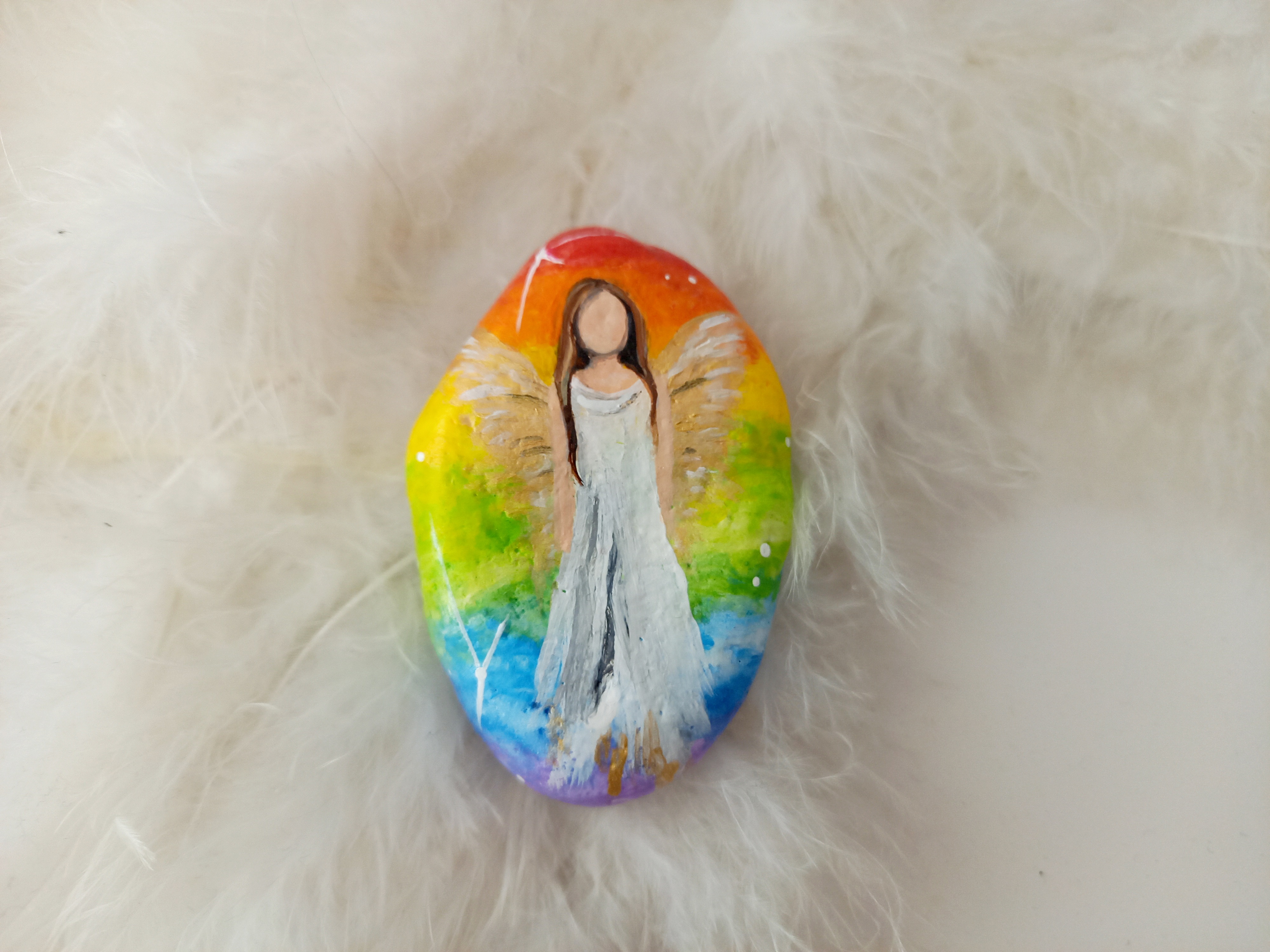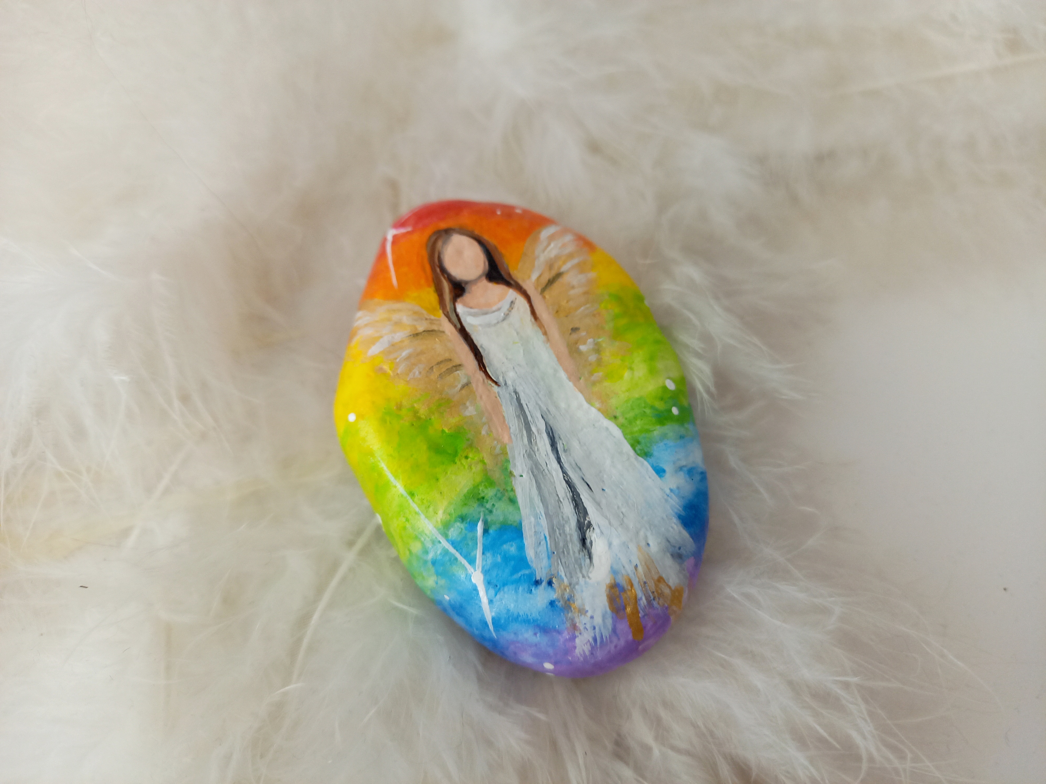 Wunderschöner Deko-Stein mit einem Engel bemalt