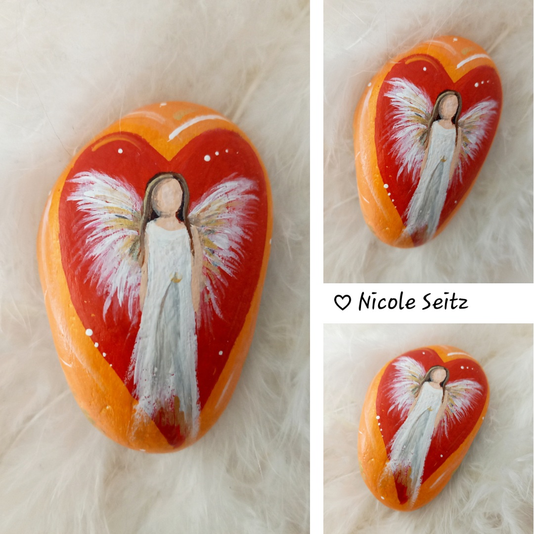 Wunderschöner Deko-Stein mit einem Engel bemalt