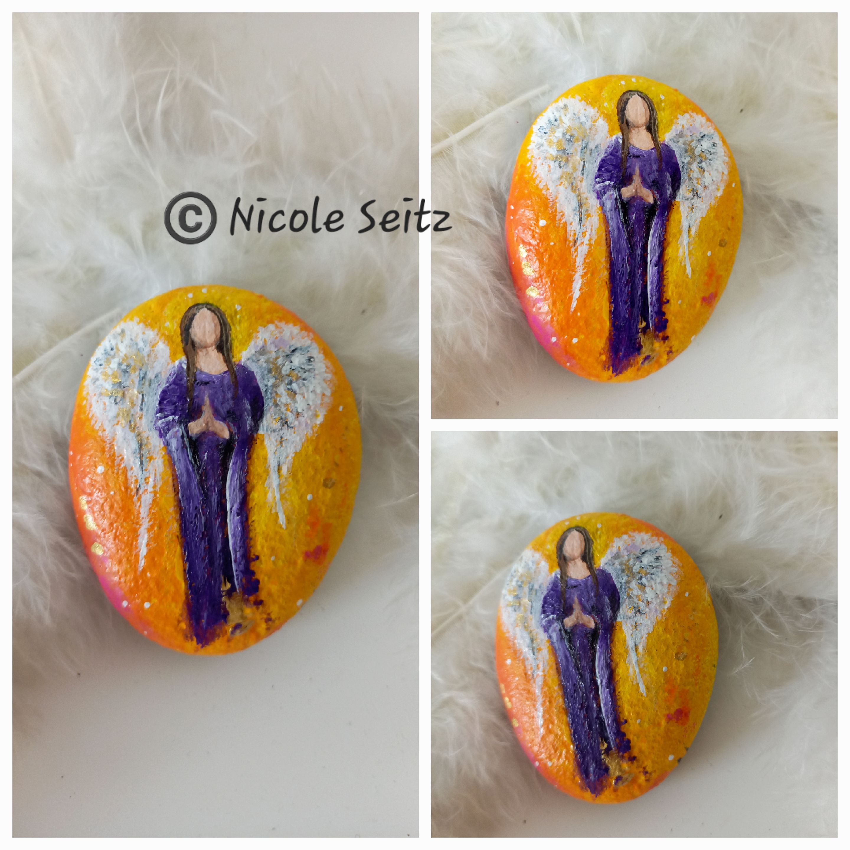 Wunderschöner Deko-Stein mit einem Engel bemalt