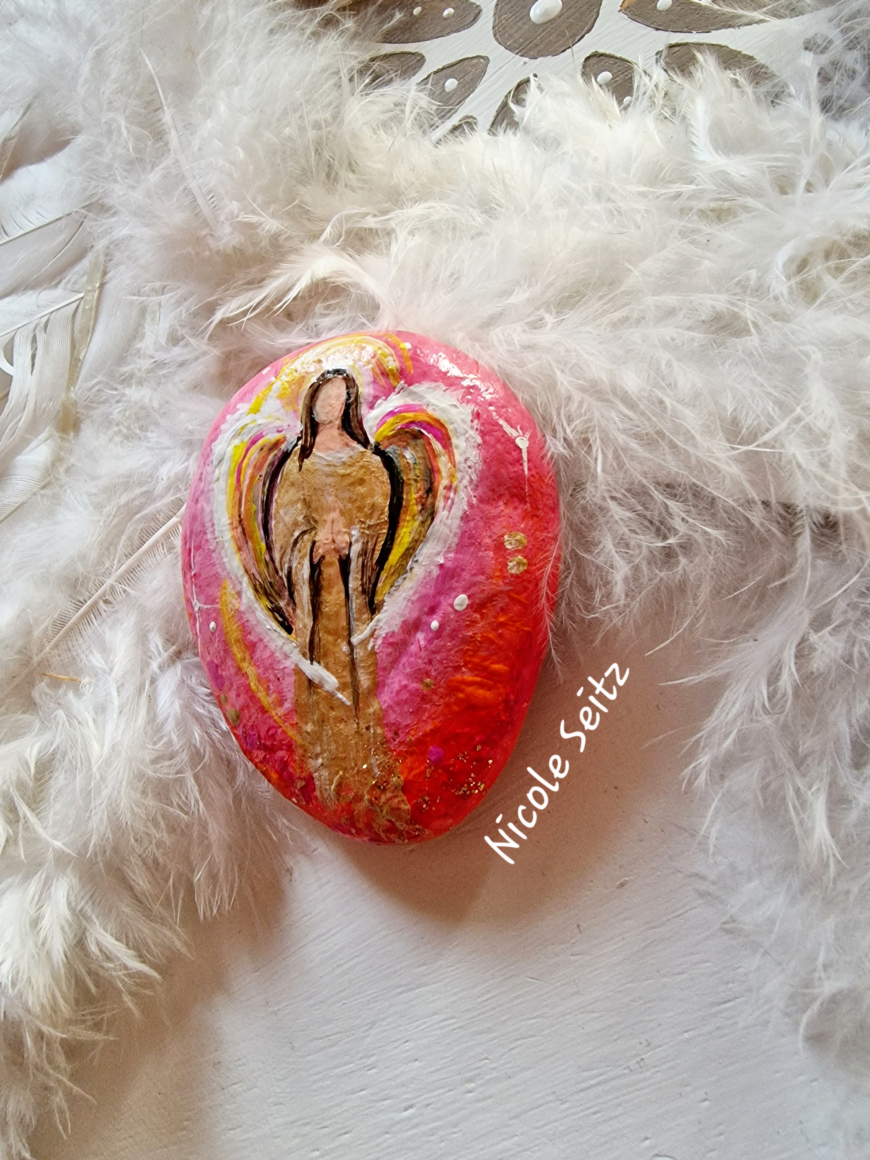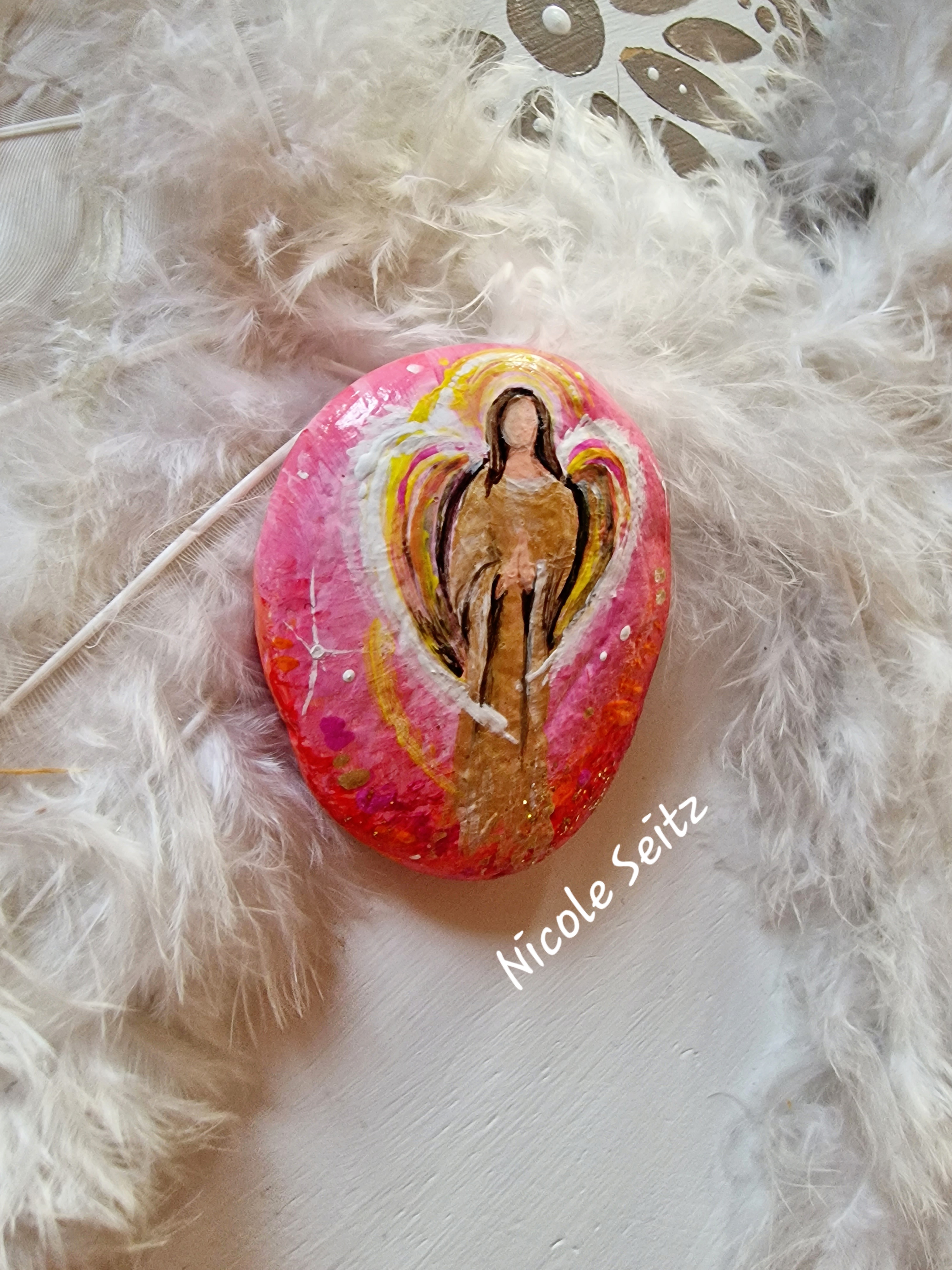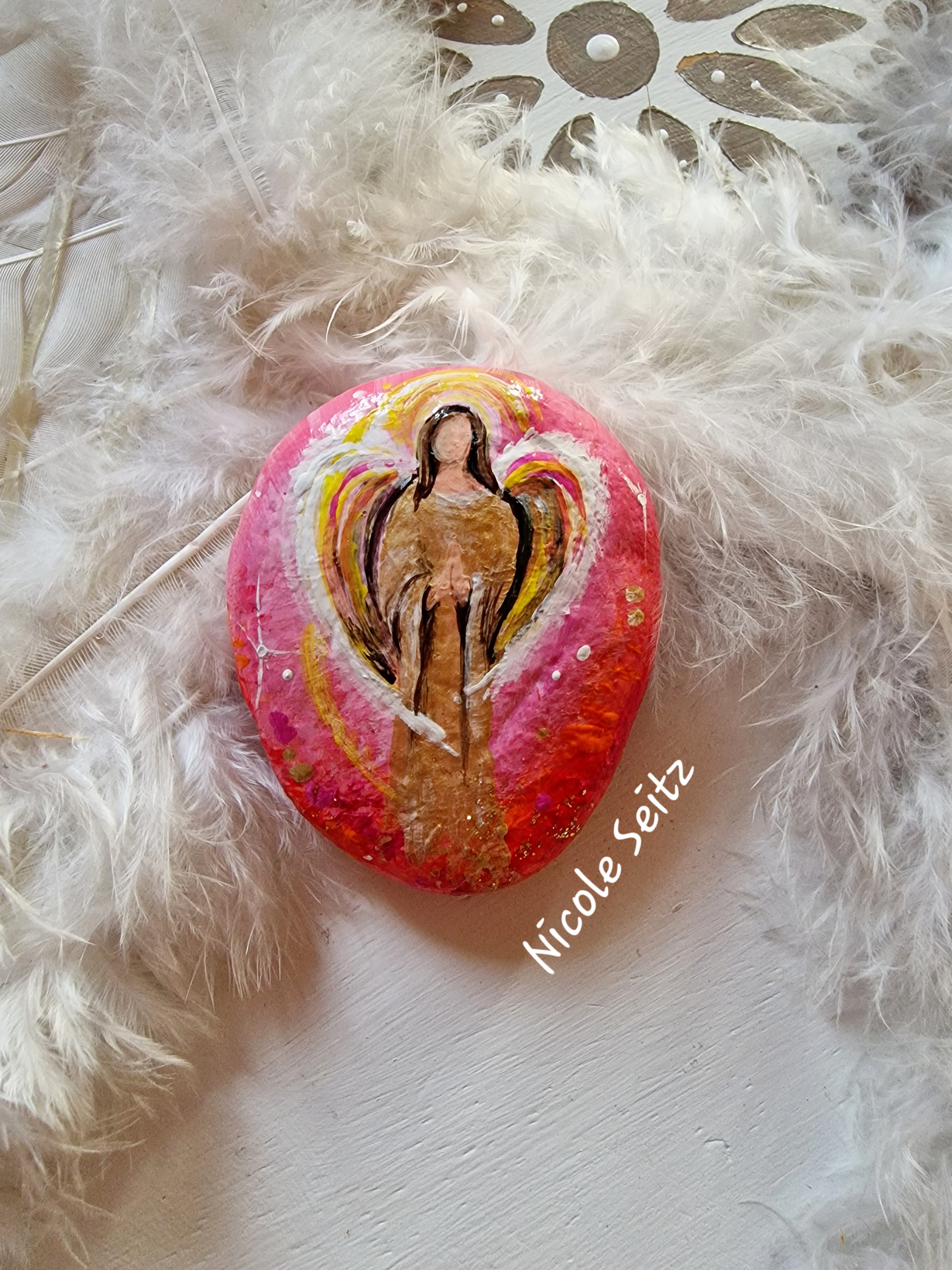 Wunderschöner Deko-Stein mit einem Engel bemalt