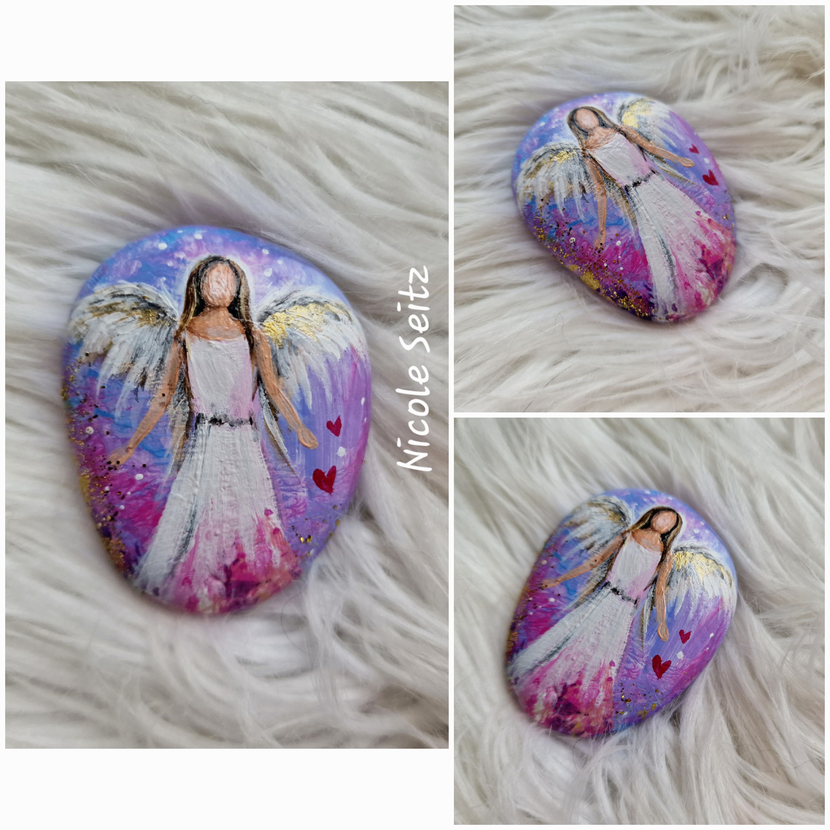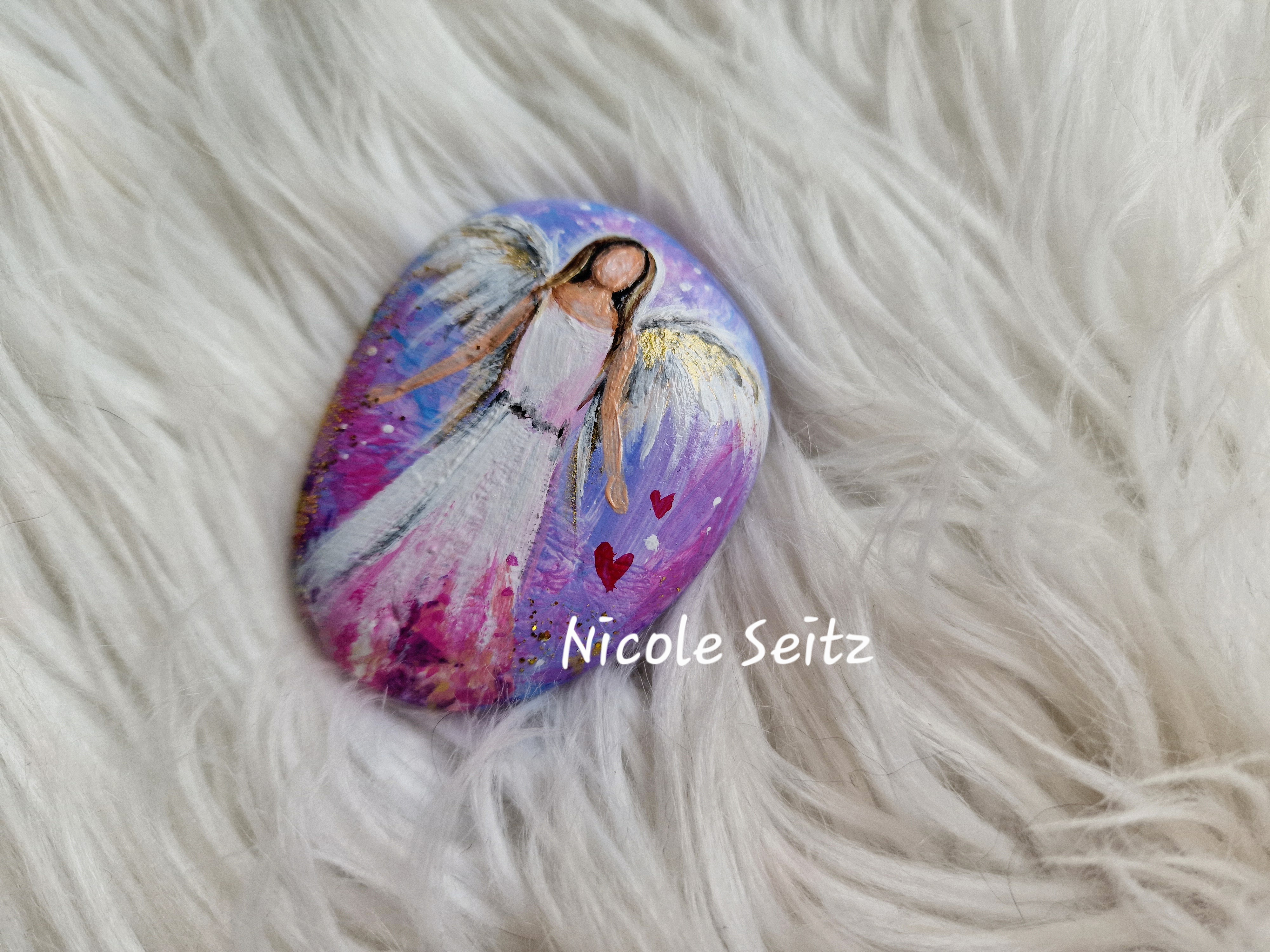 Engel auf Stein gemalt * 5,5 x 4,3 x 1,5 cm * Rosa-Lila-Pink * Herzchen