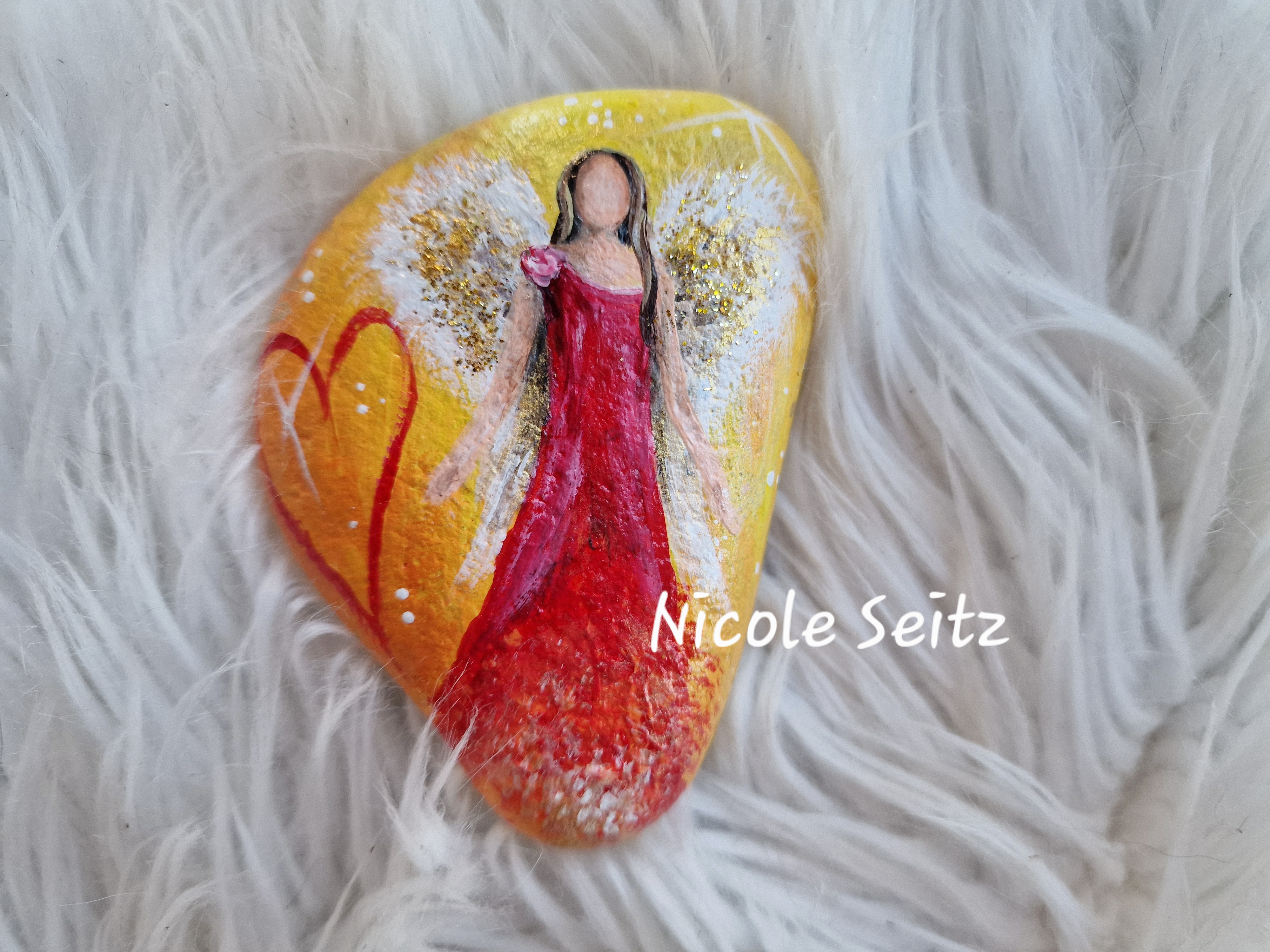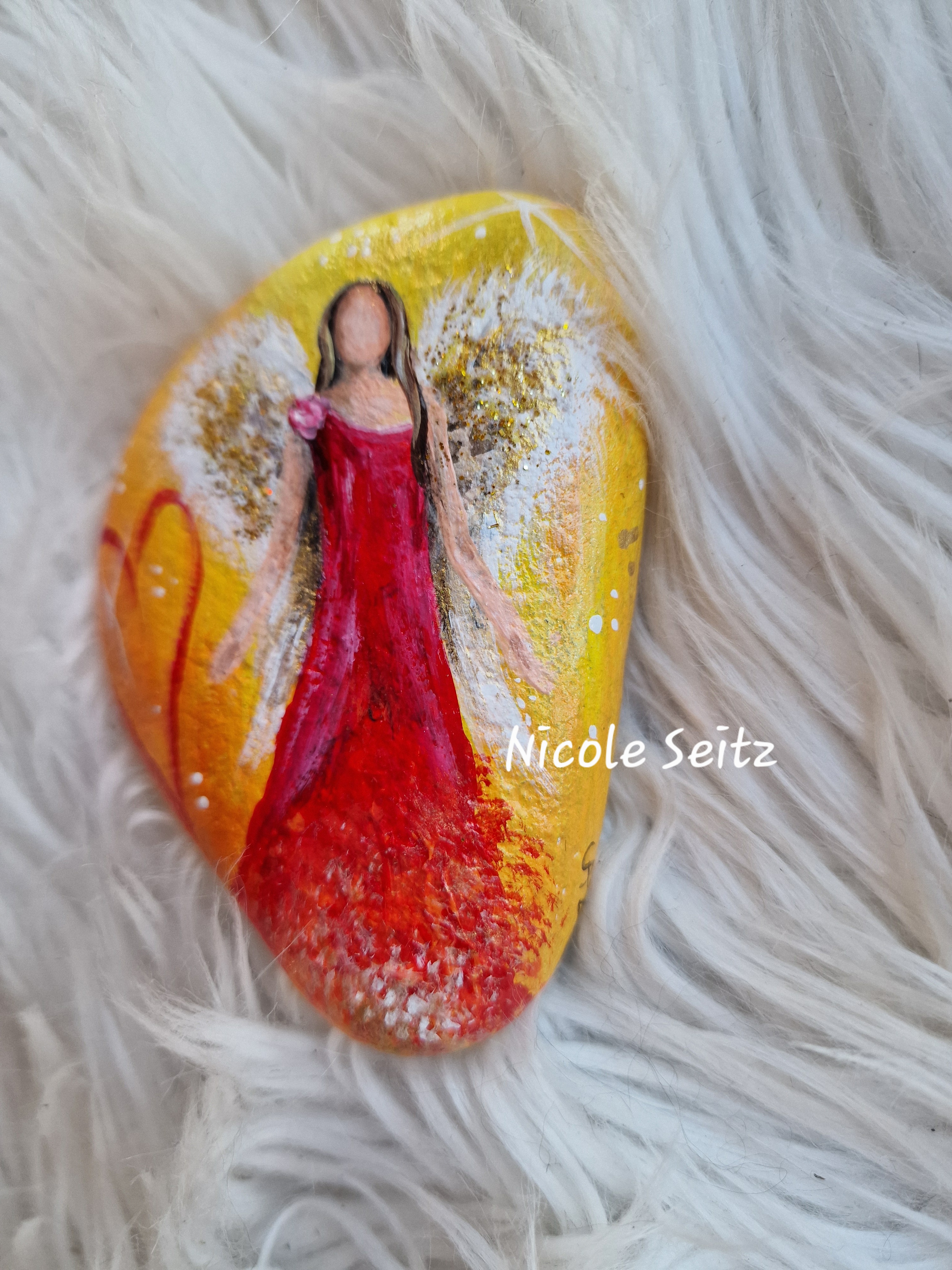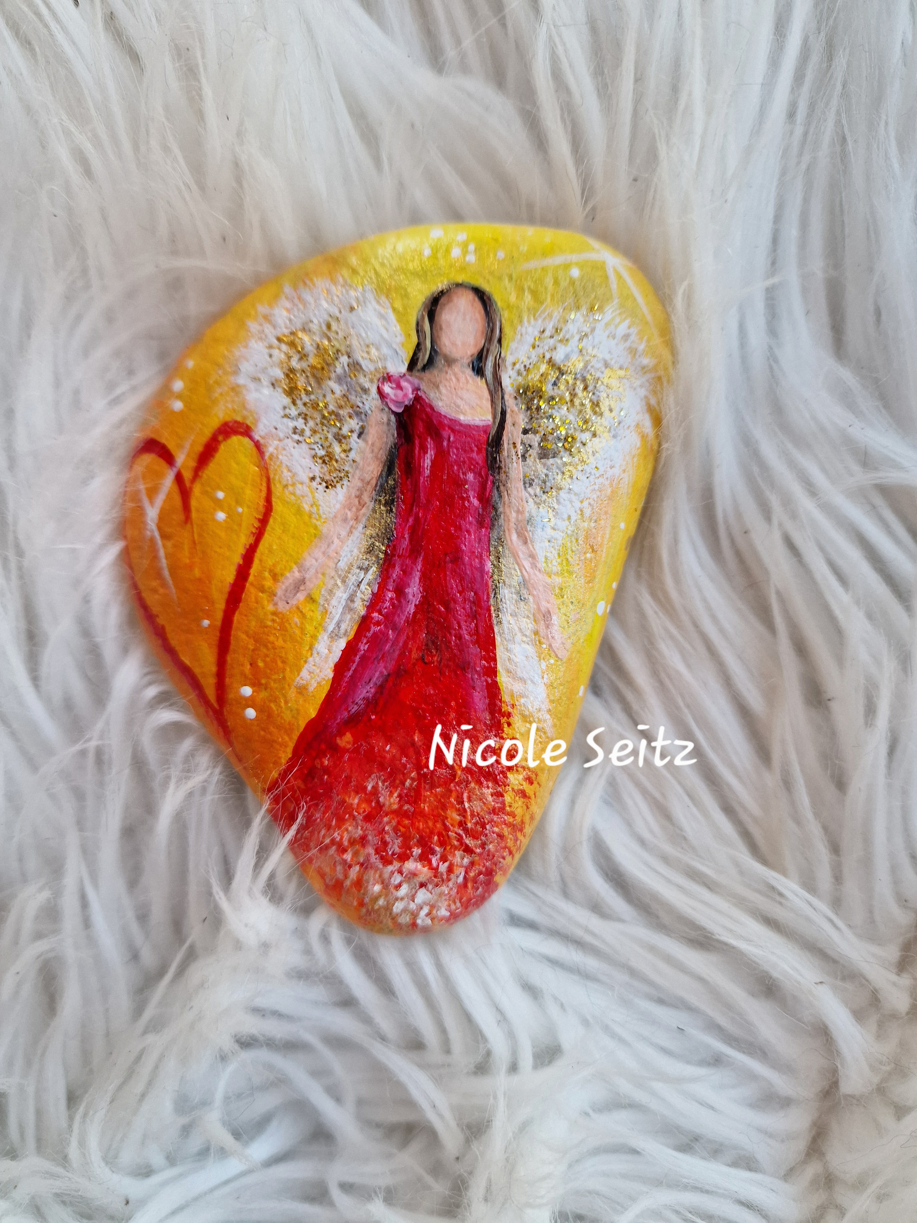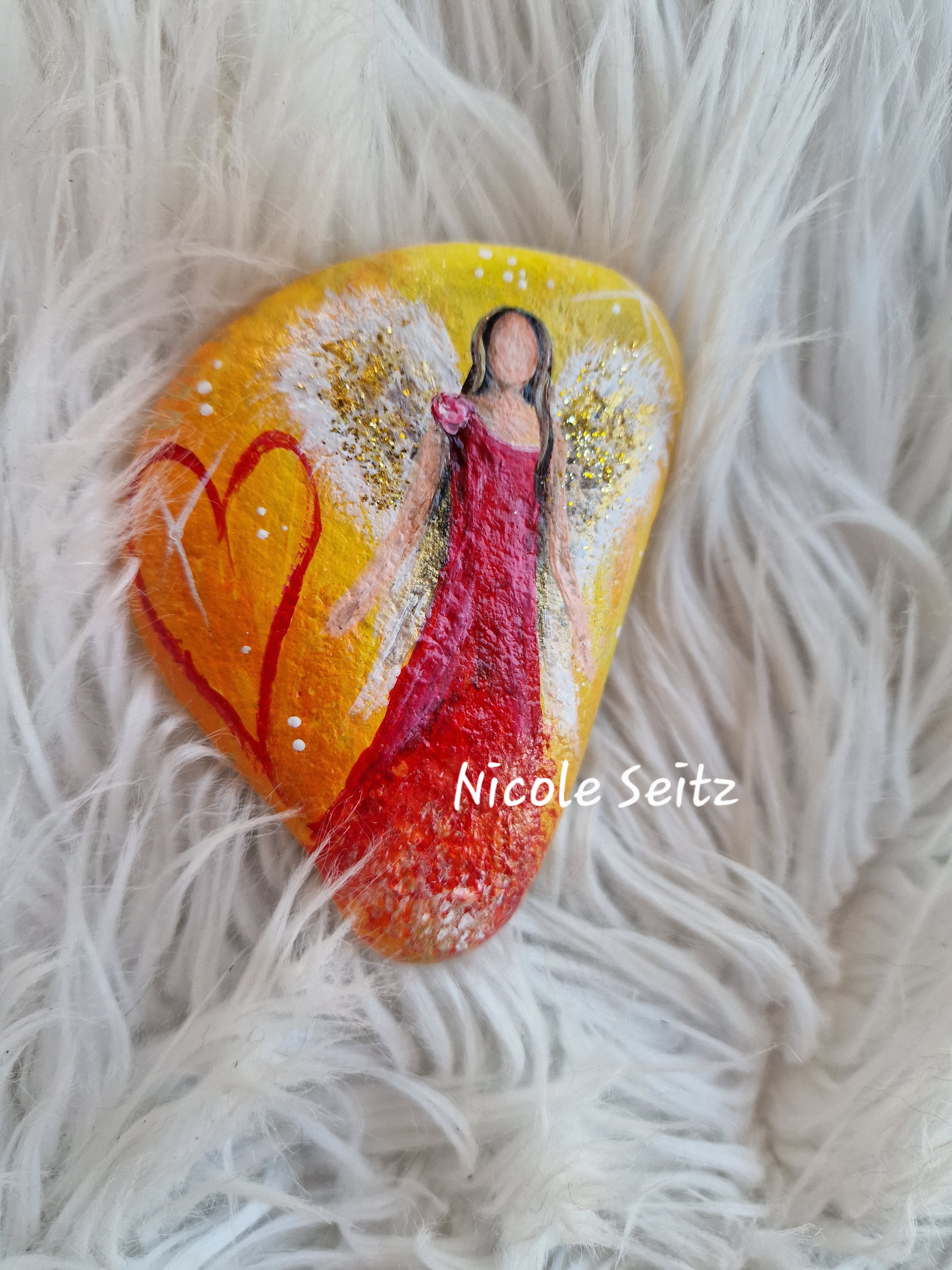 Herzensengel auf Stein gemalt * 9 x 6,5 x 2 cm * Rot-Orange-Gelb