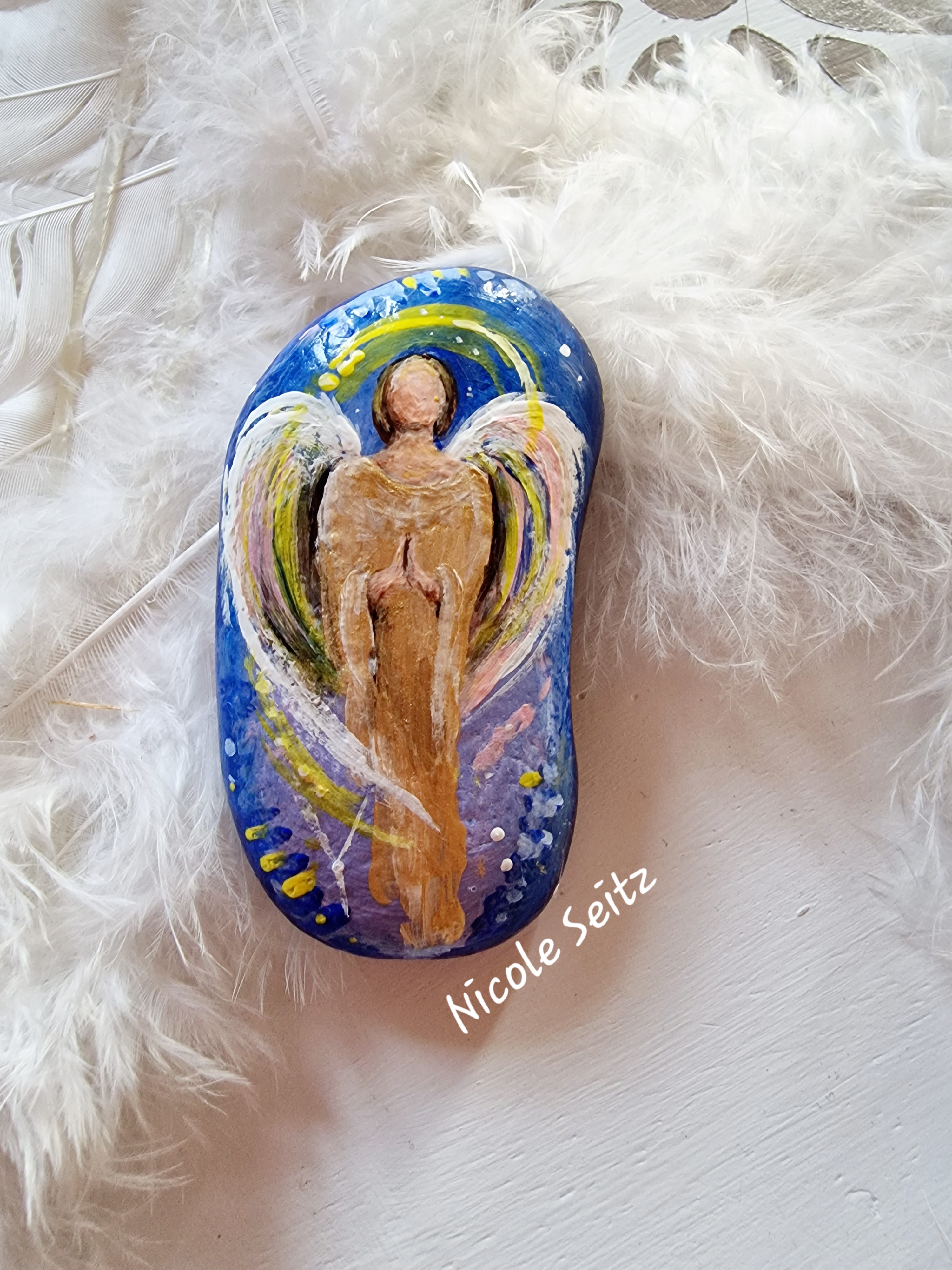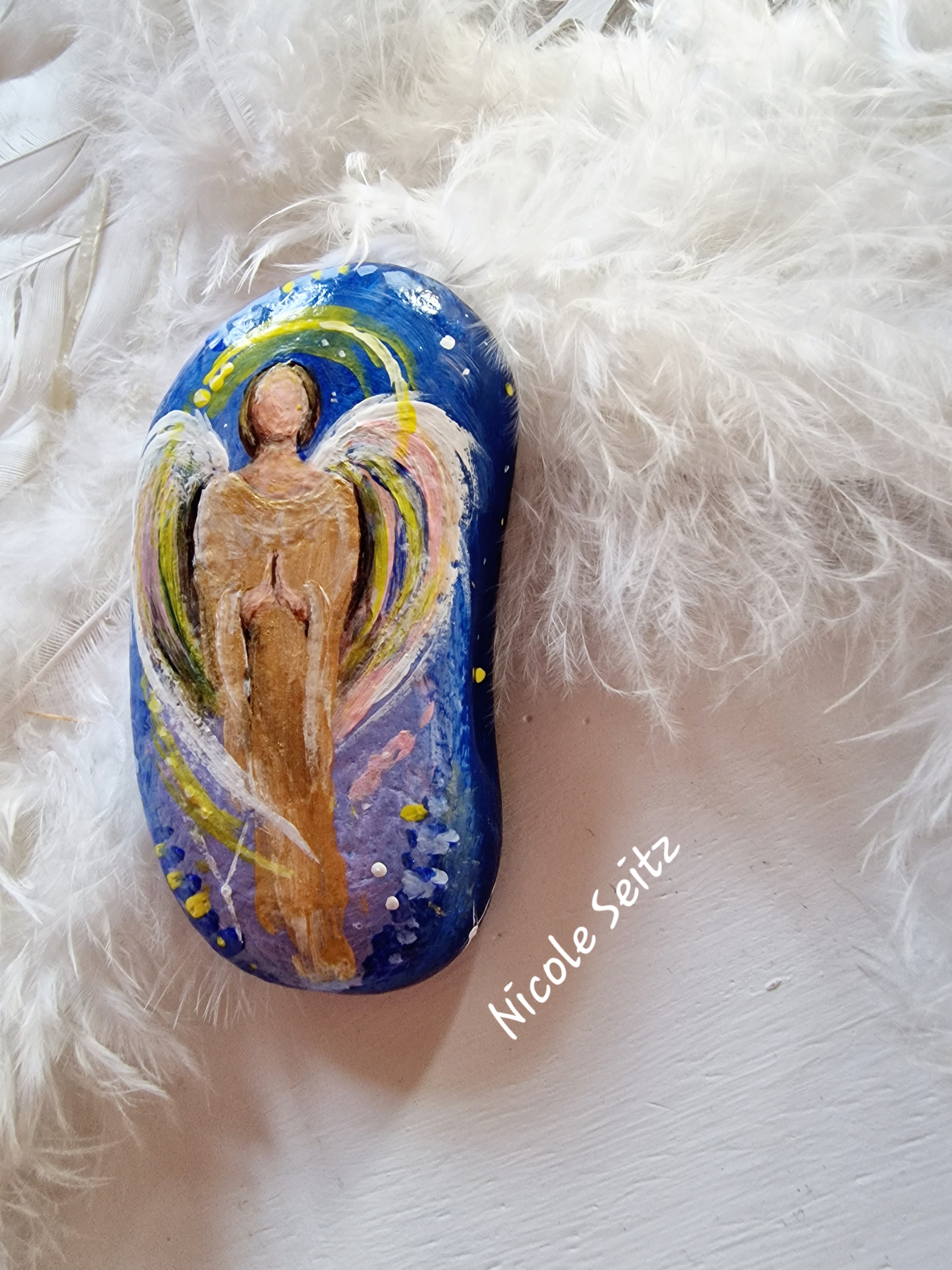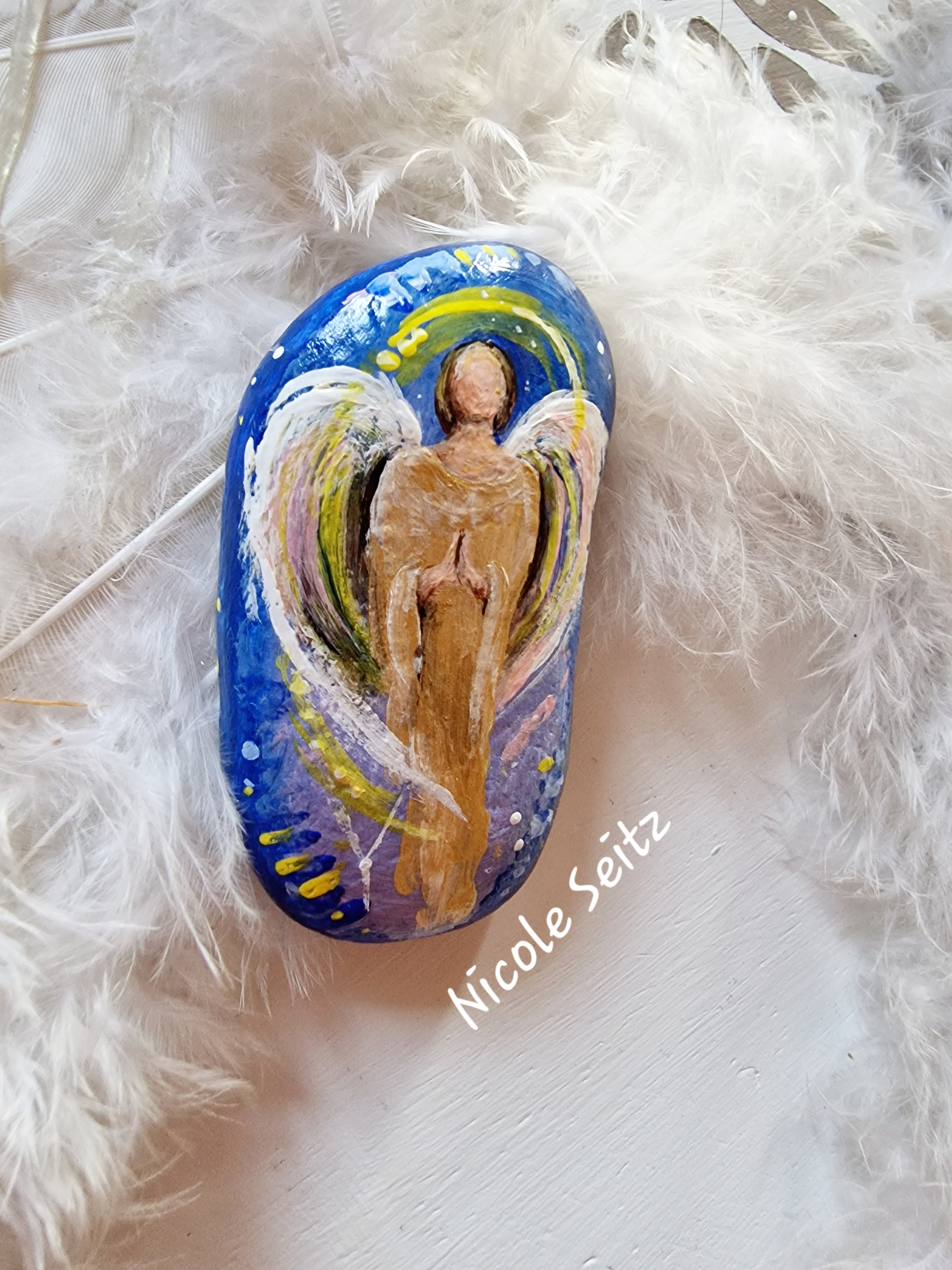 Wunderschöner Deko-Stein mit einem Engel bemalt