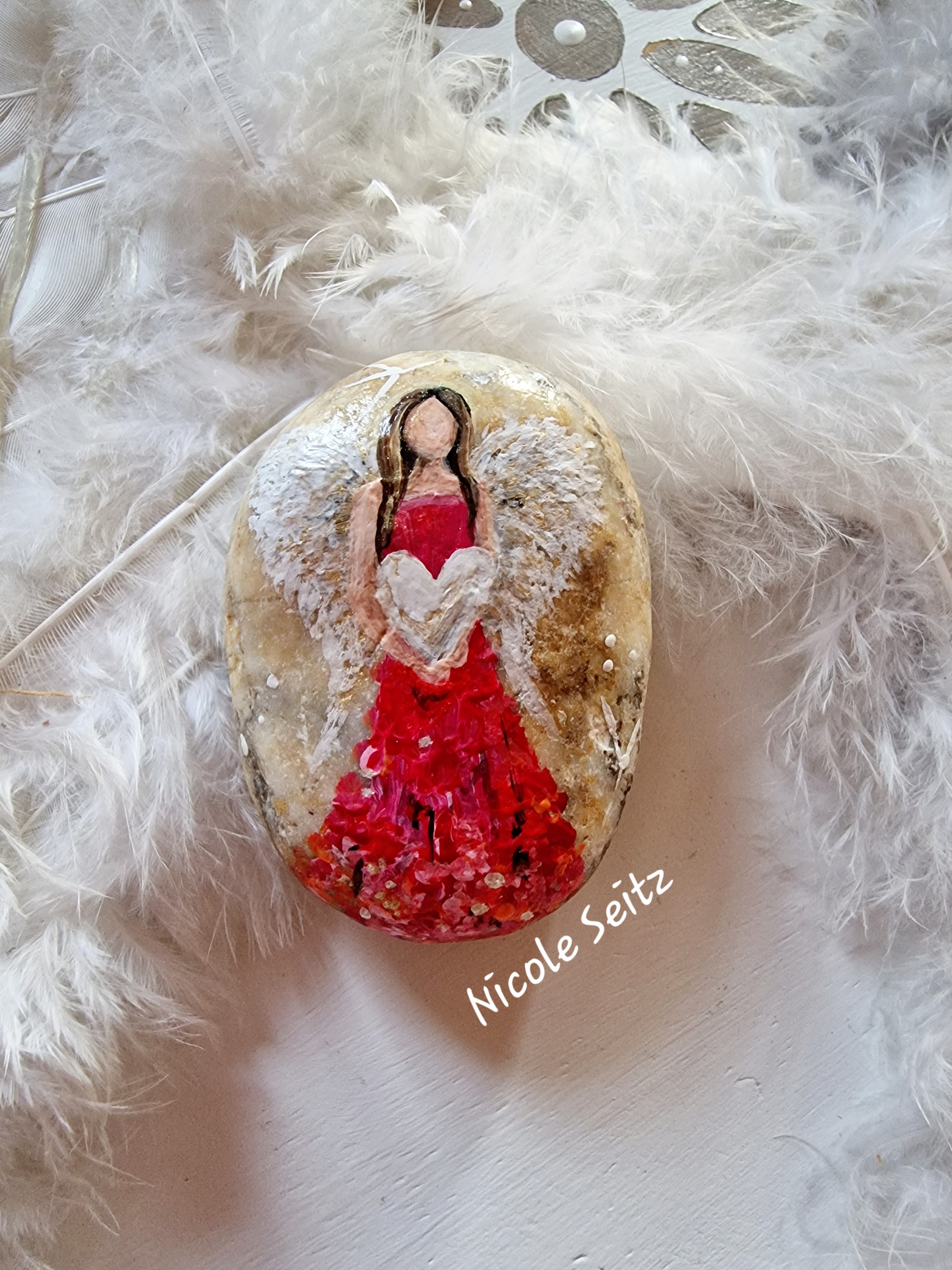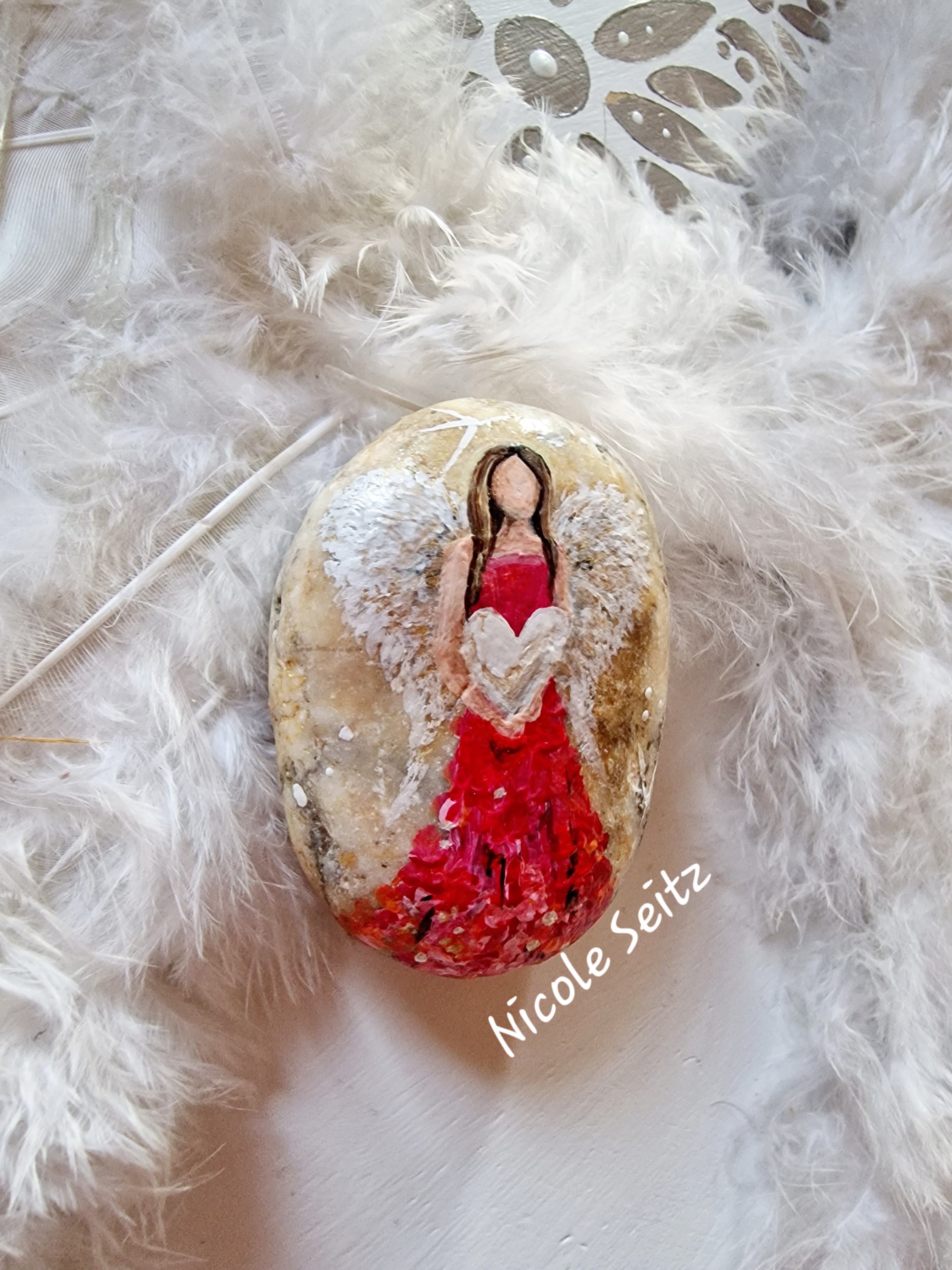 Wunderschöner Deko-Stein mit einem Engel bemalt