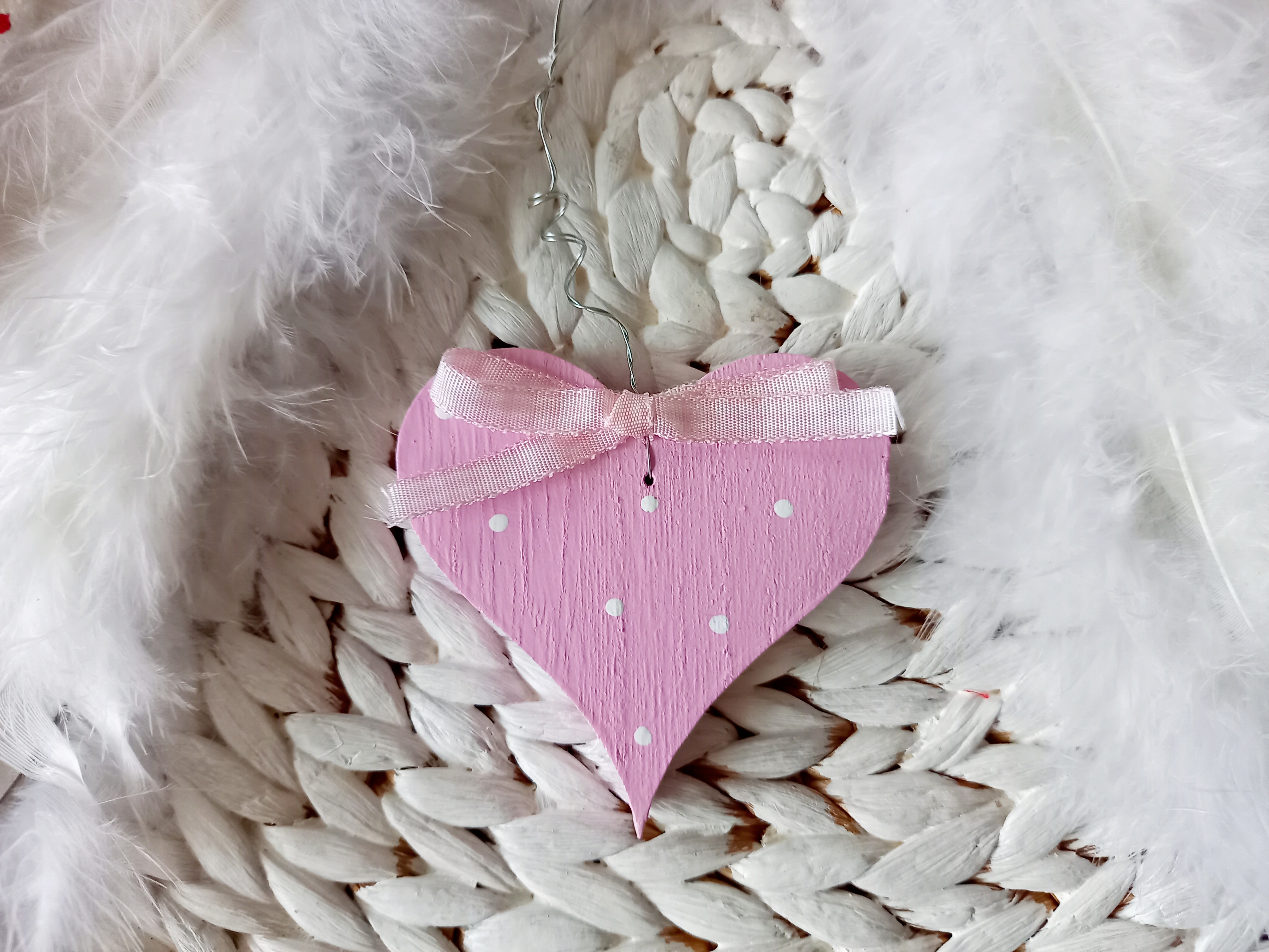 Kleiner Herzhänger * Pünktchen * Rosa * 7 x 7 x 0,7 cm * Holz