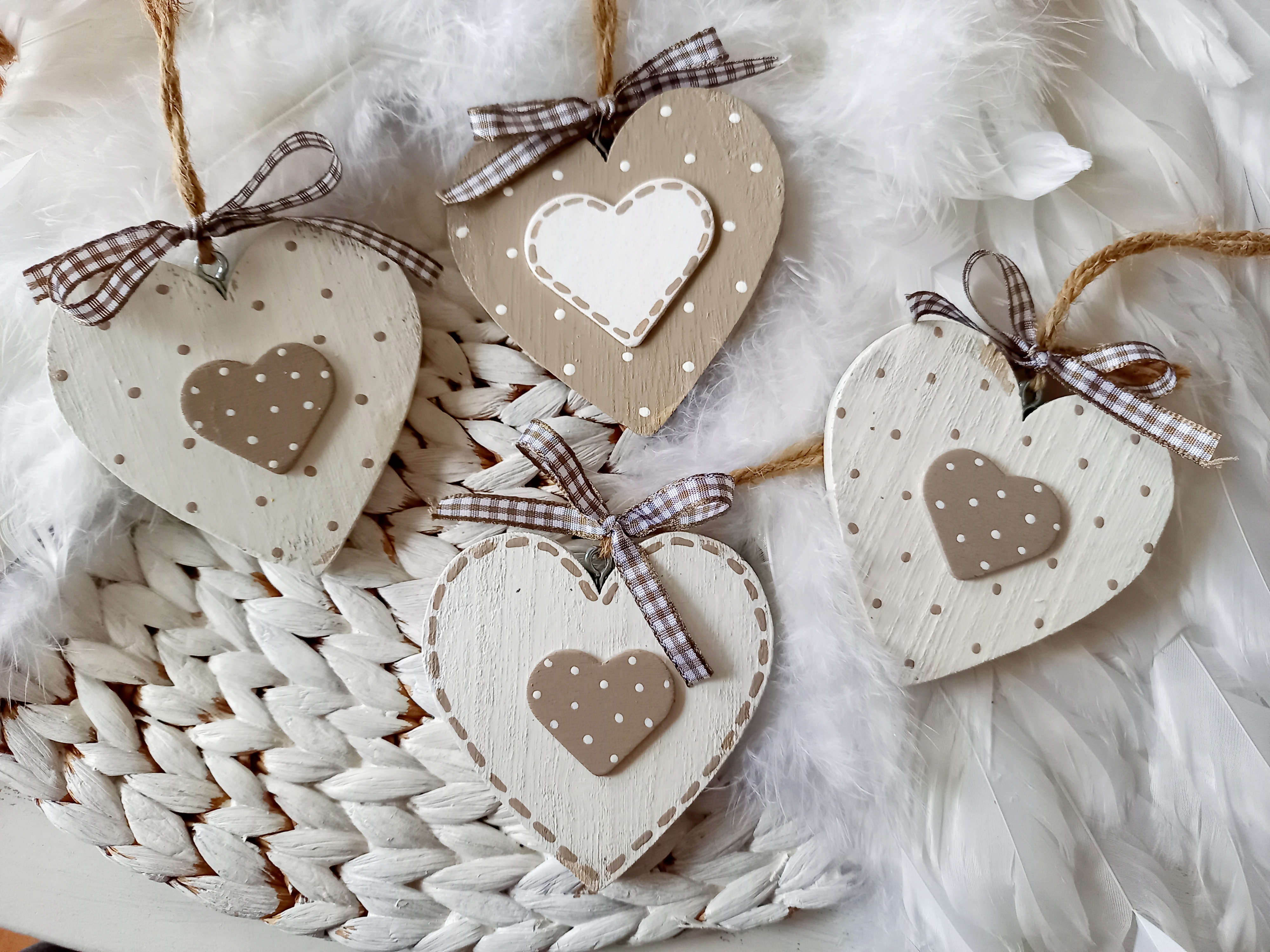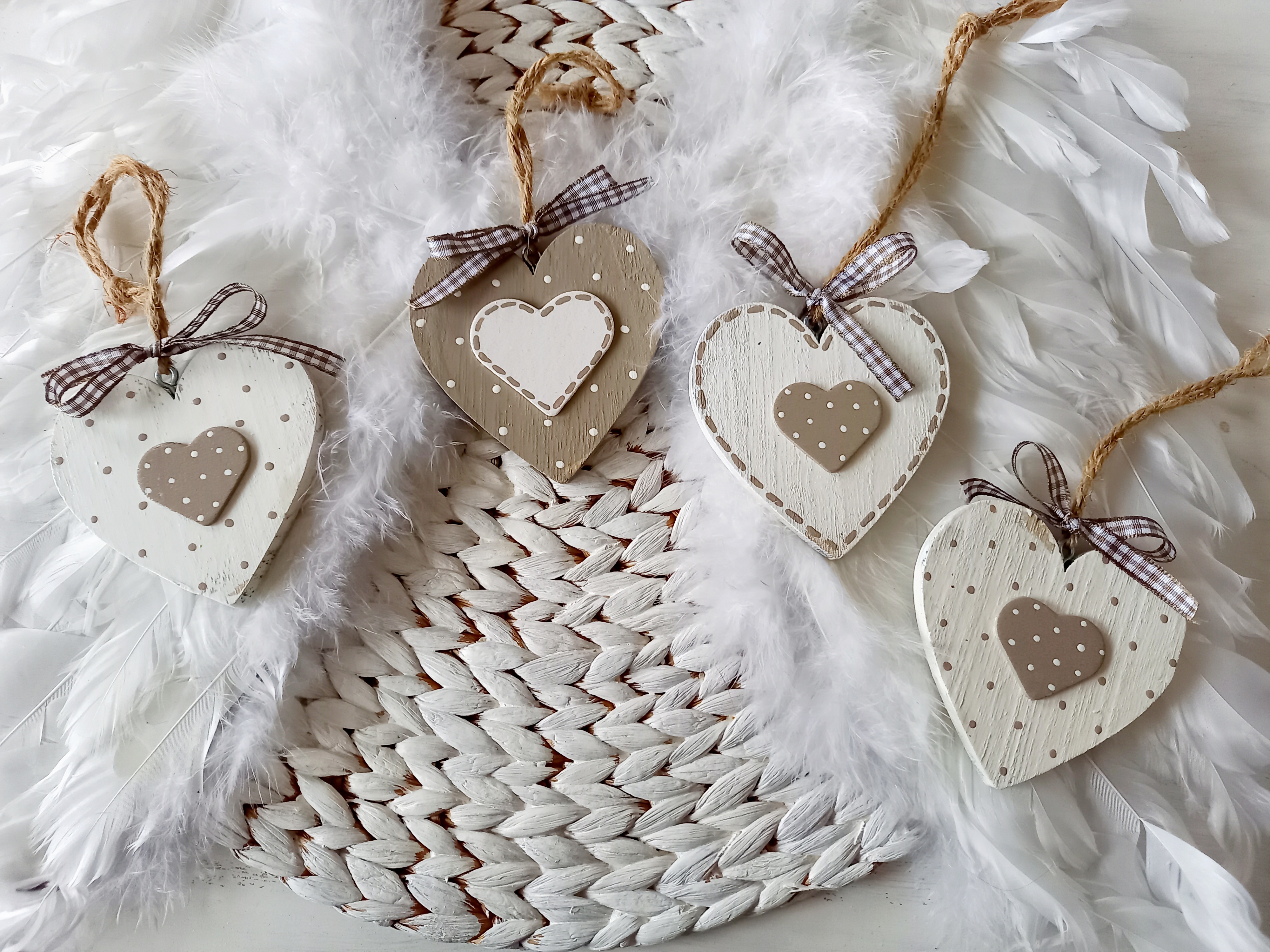 4 Herzhänger * Beige