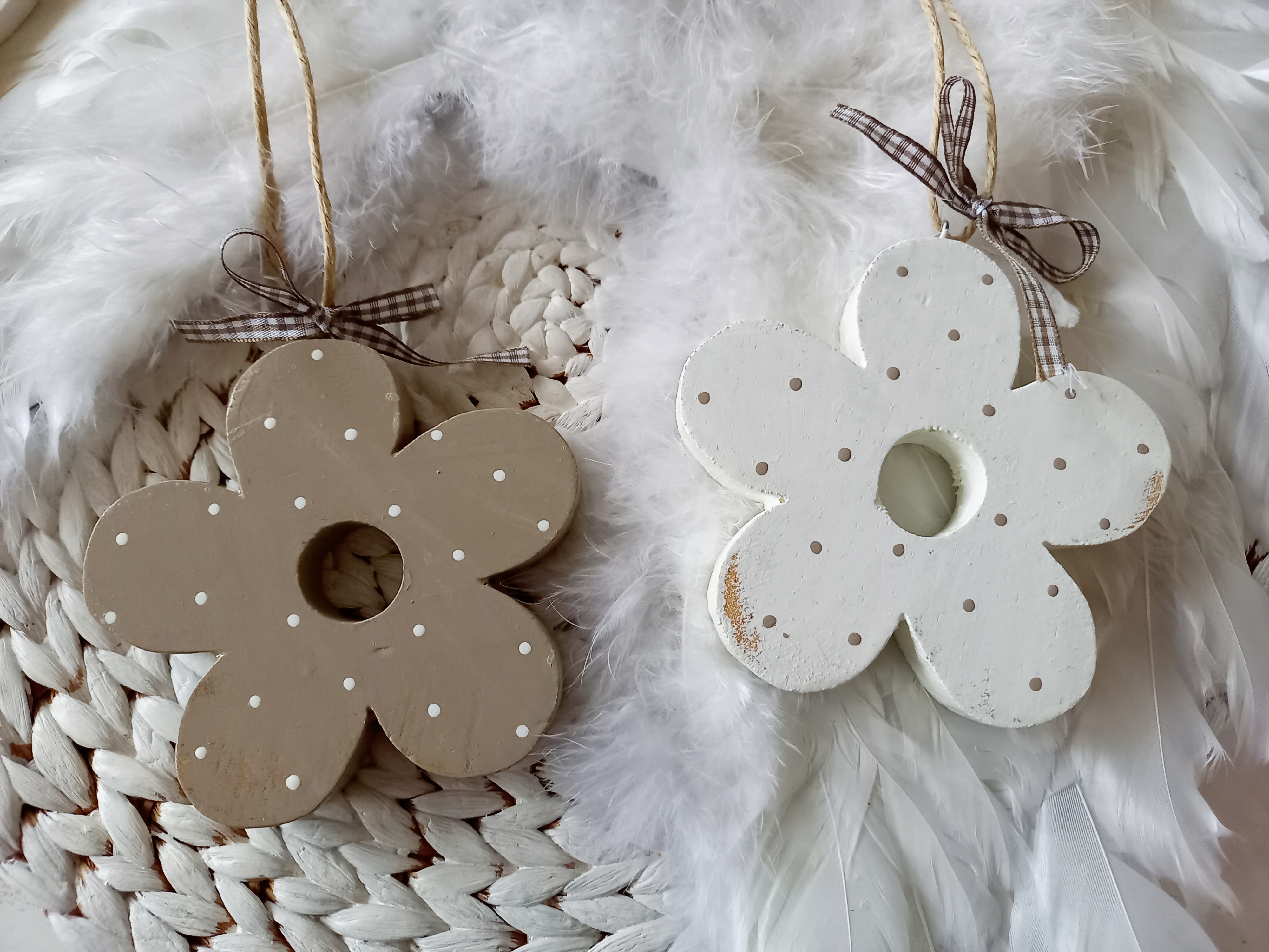 2 Holzblumen * Beige-Weiß
