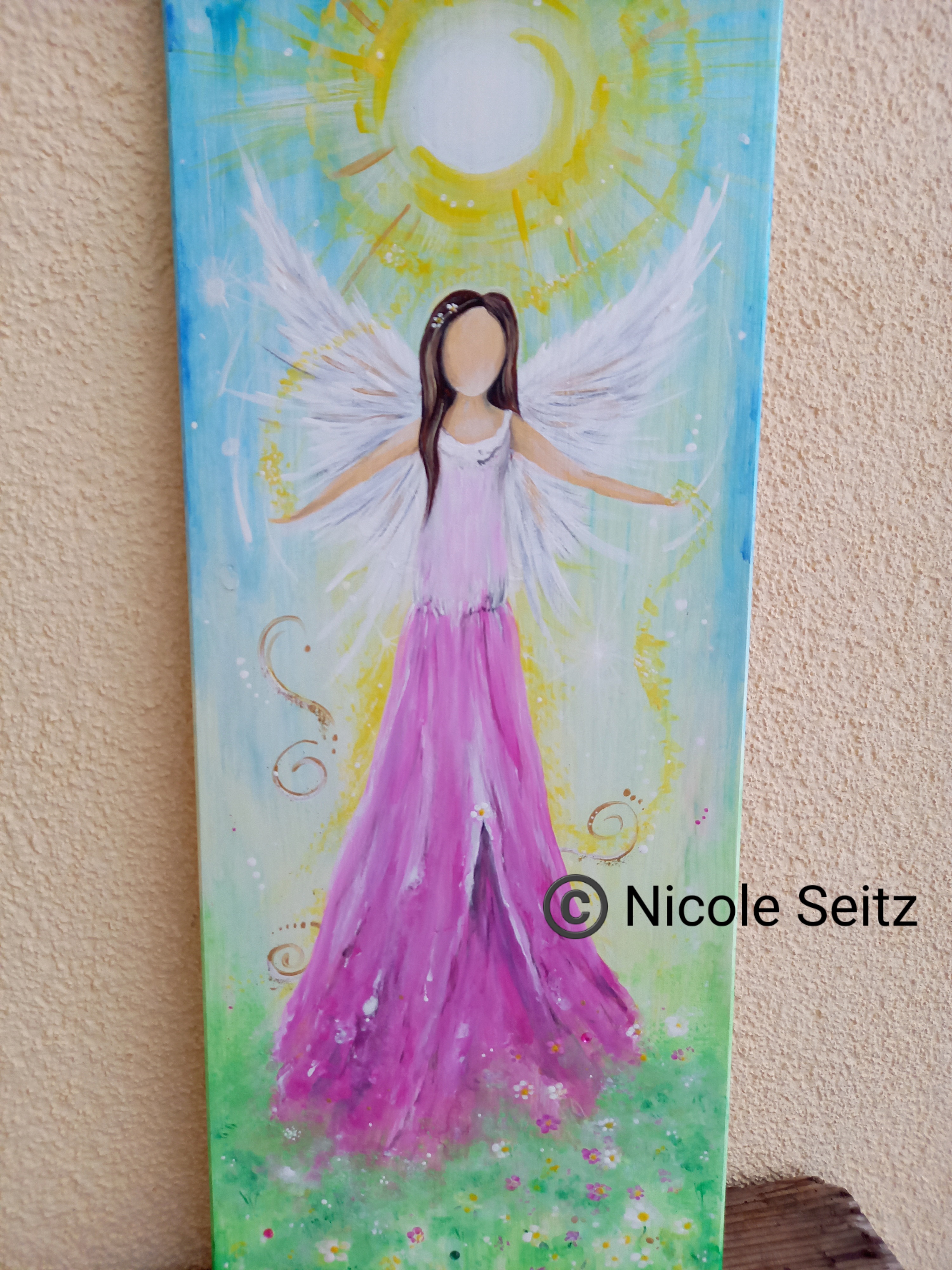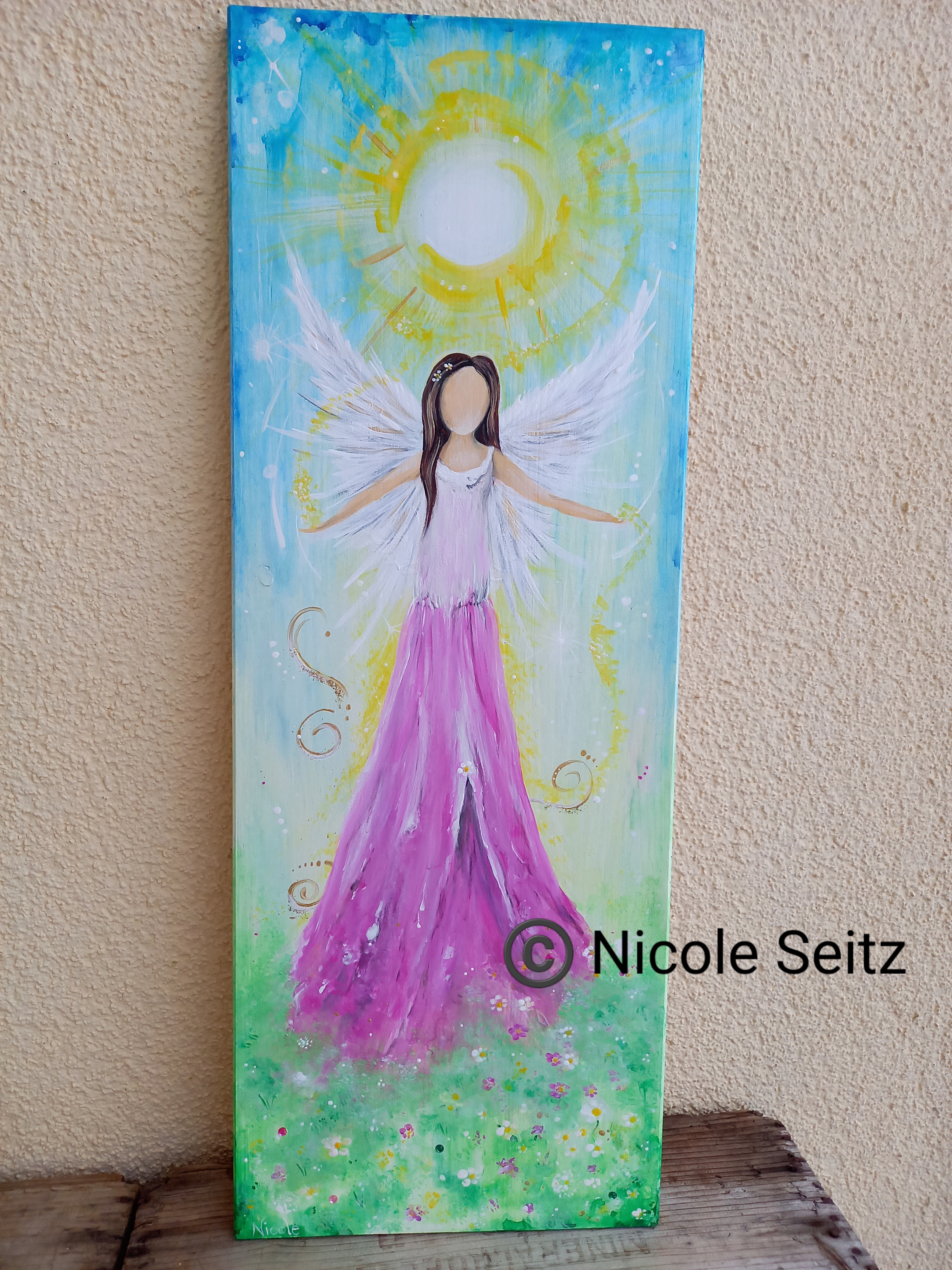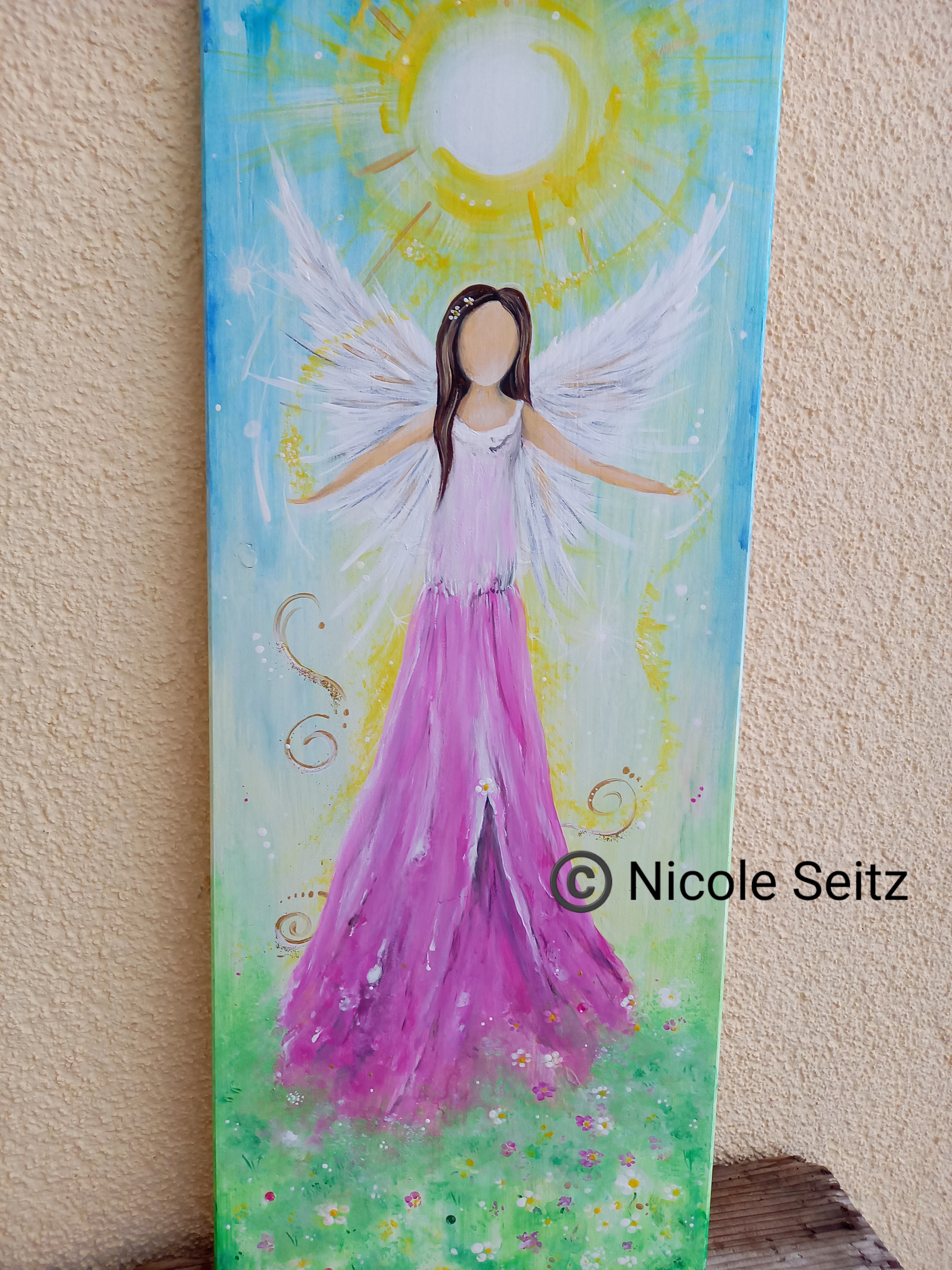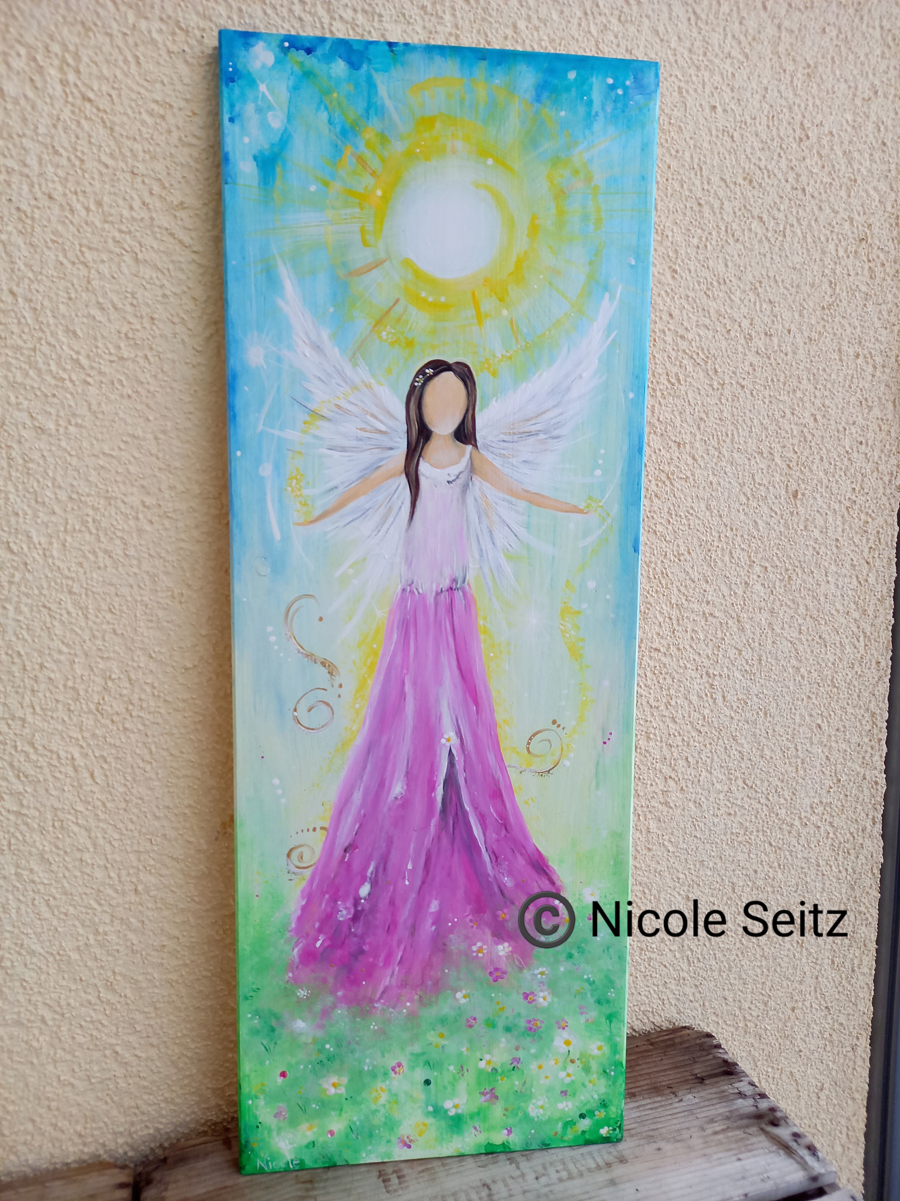 Auf eine Holzplatte (30 x 80 cm) gemalt.