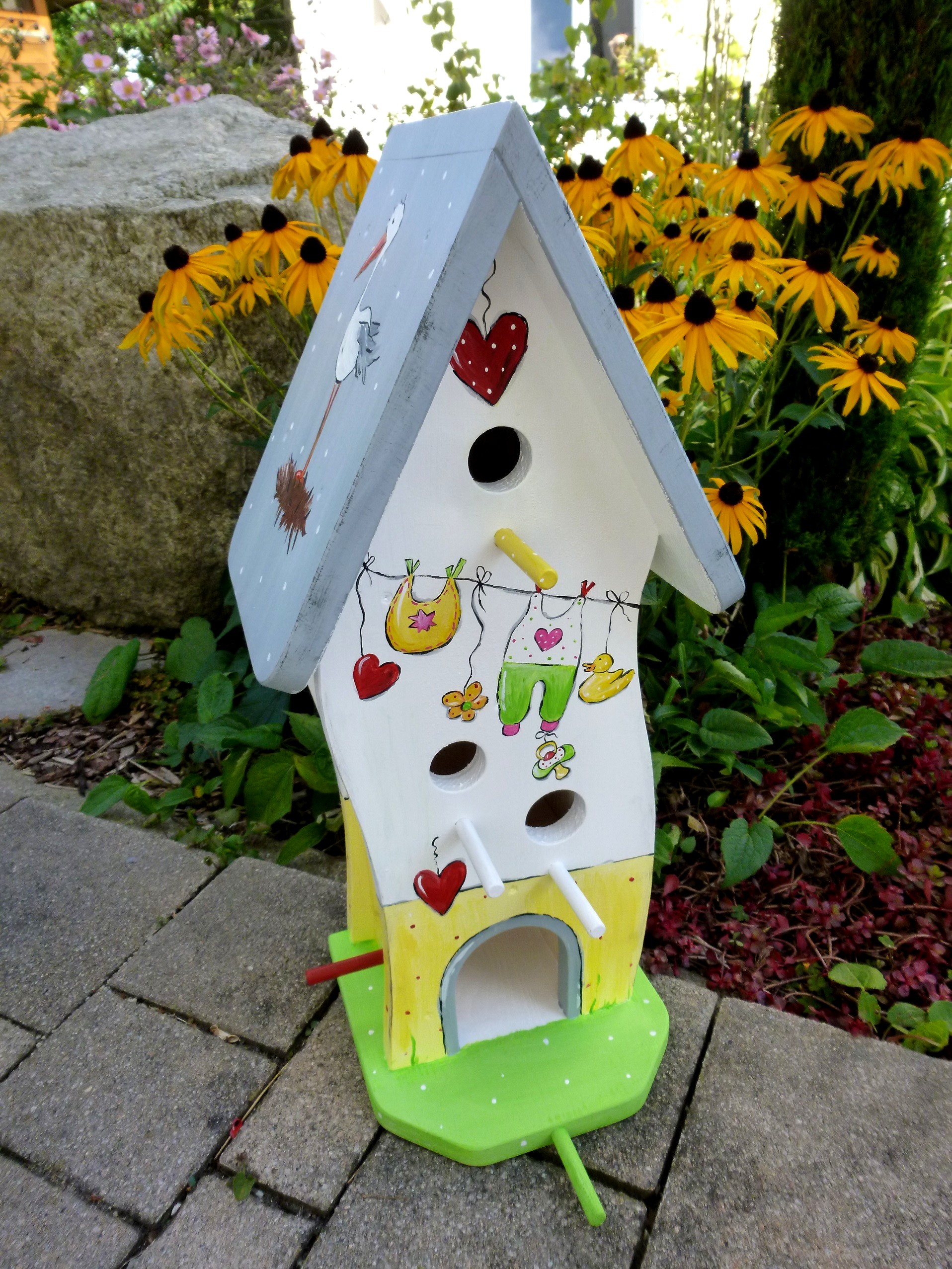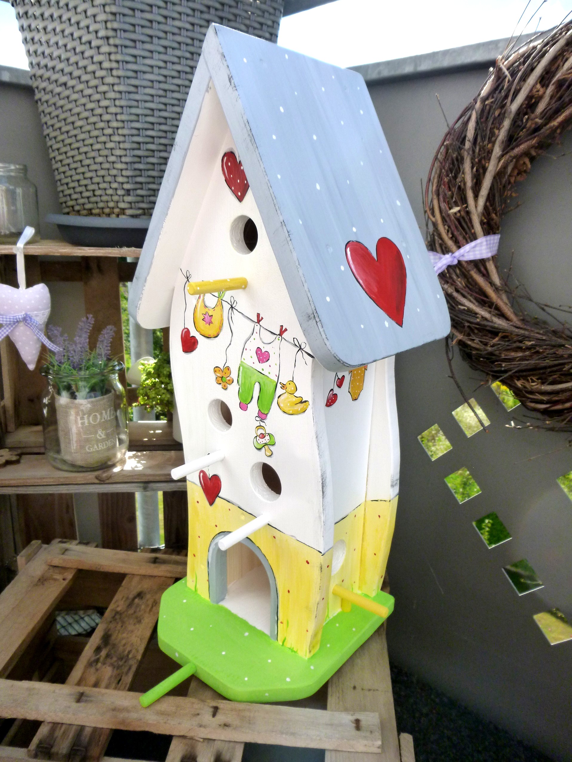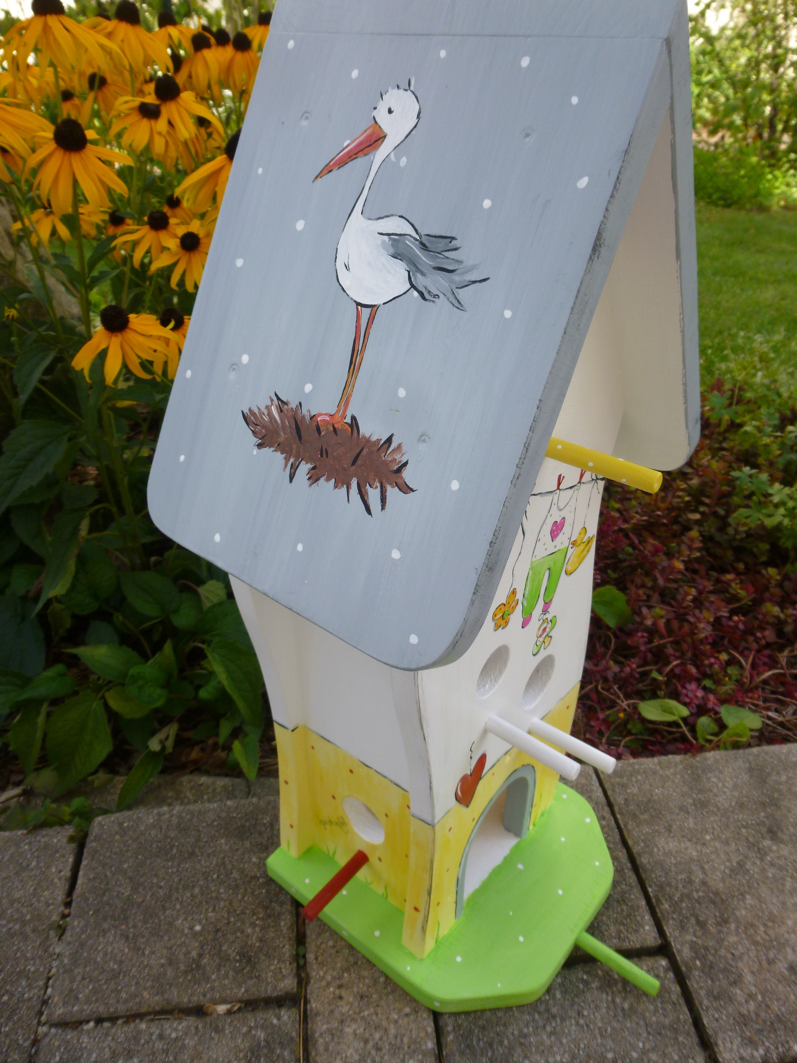 Zweimal mit guten Farben für den Außenbereich bemalt und mit einem glänzenen Acryllack zum Schutz überzogen.