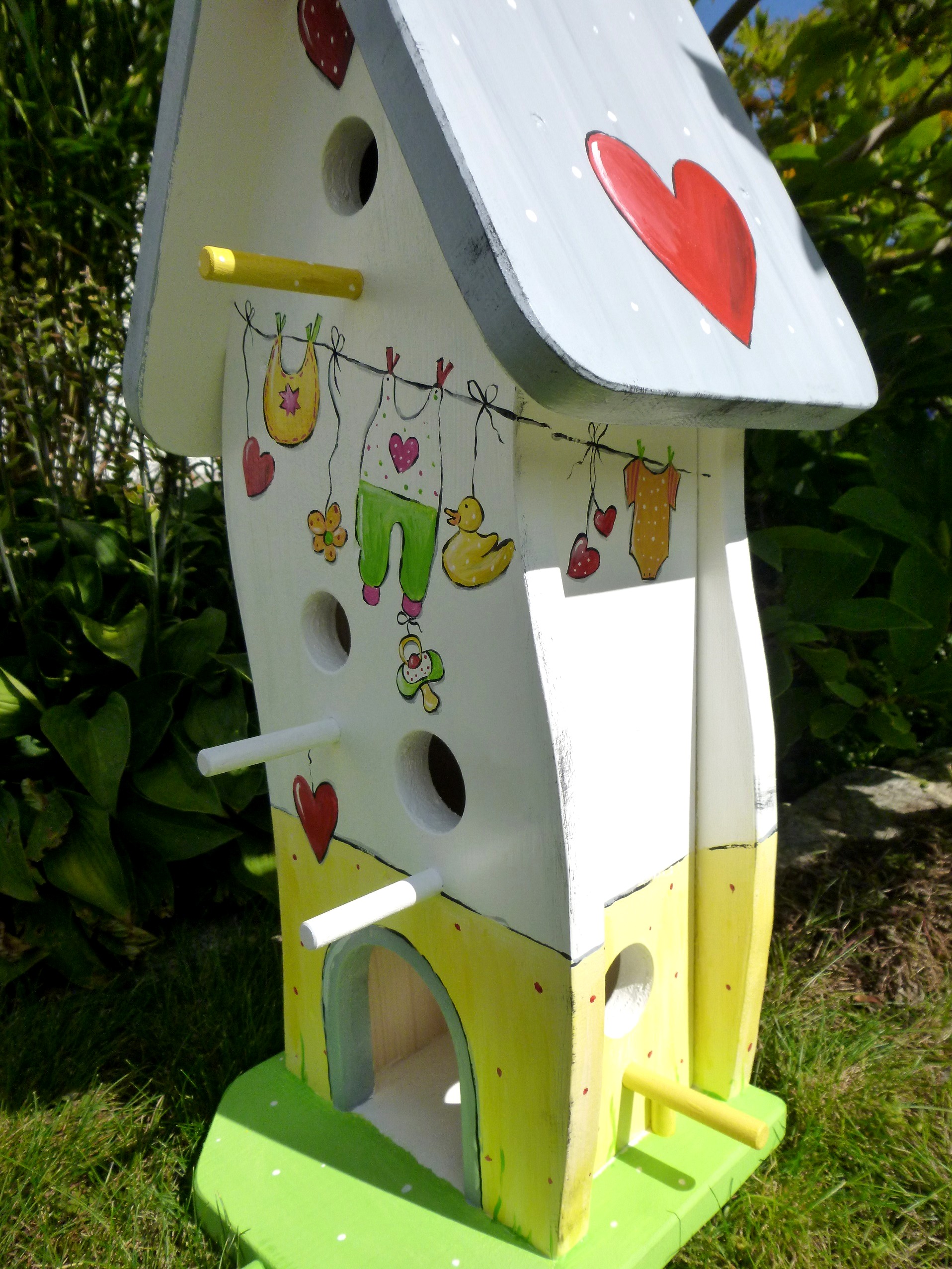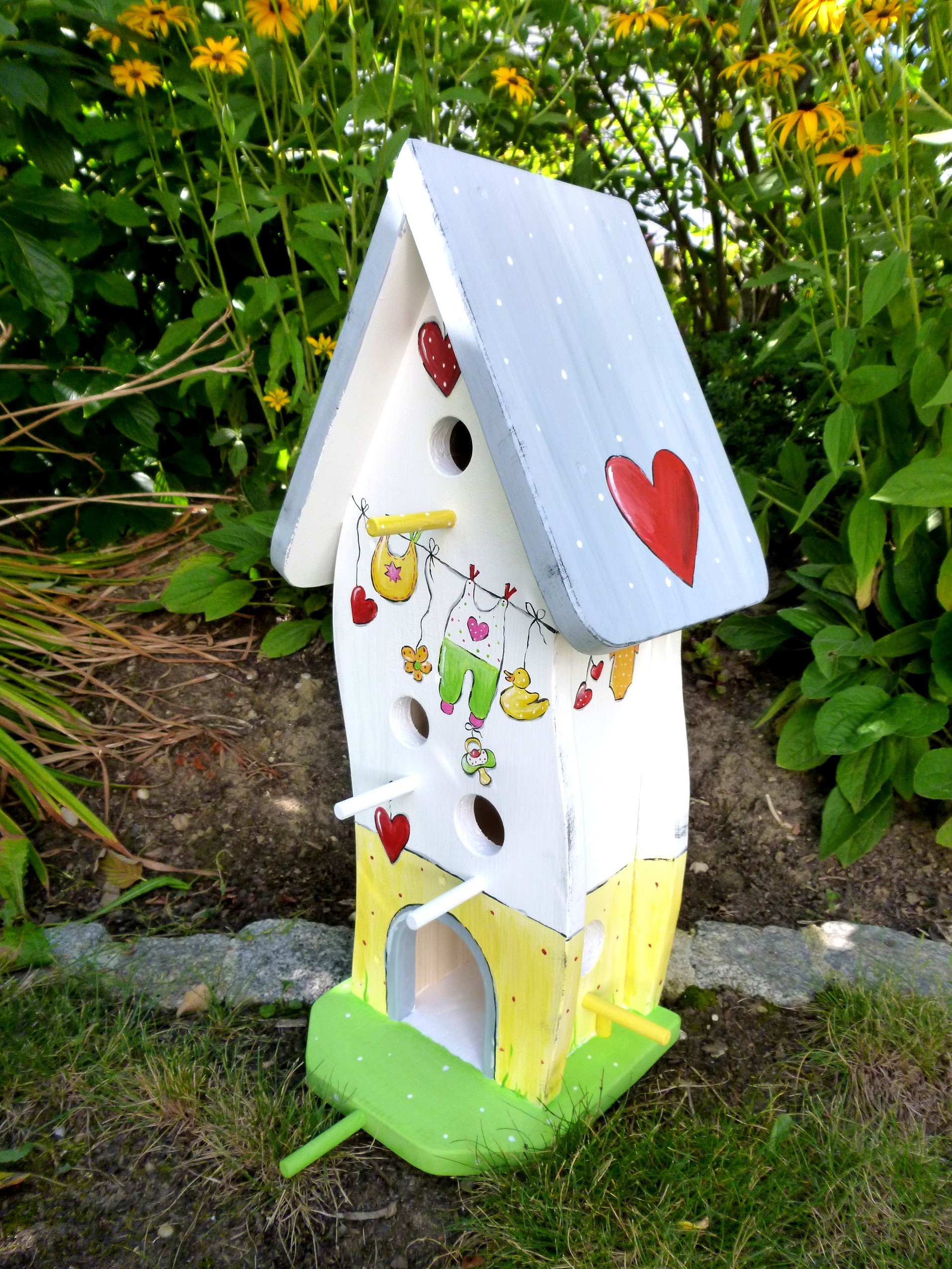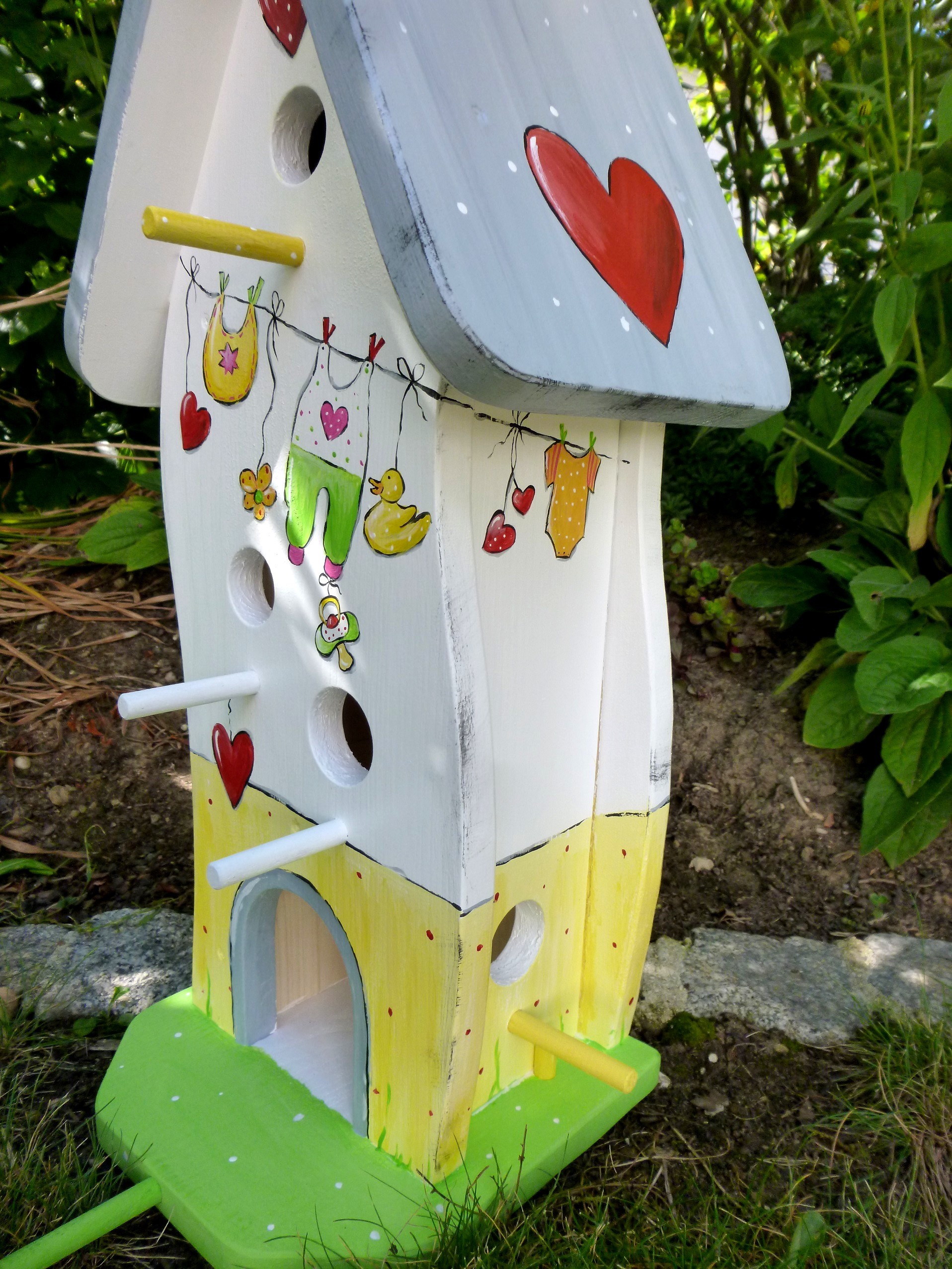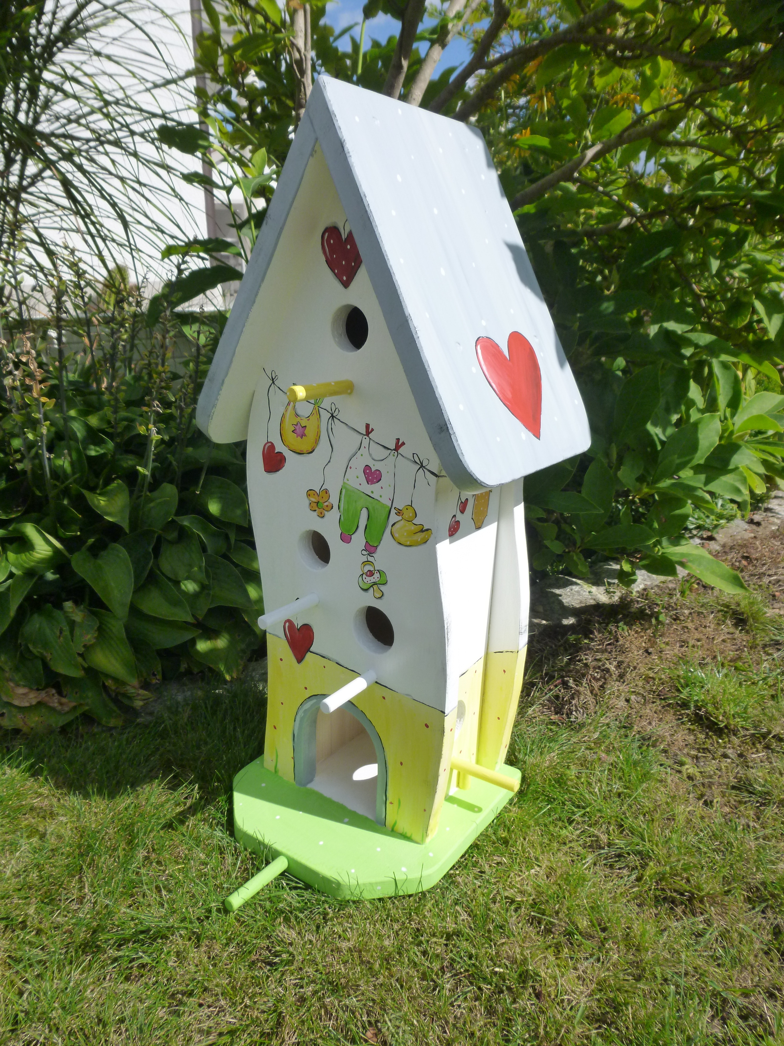 Zweimal mit guten Farben für den Außenbereich bemalt und mit einem glänzenen Acryllack zum Schutz überzogen.