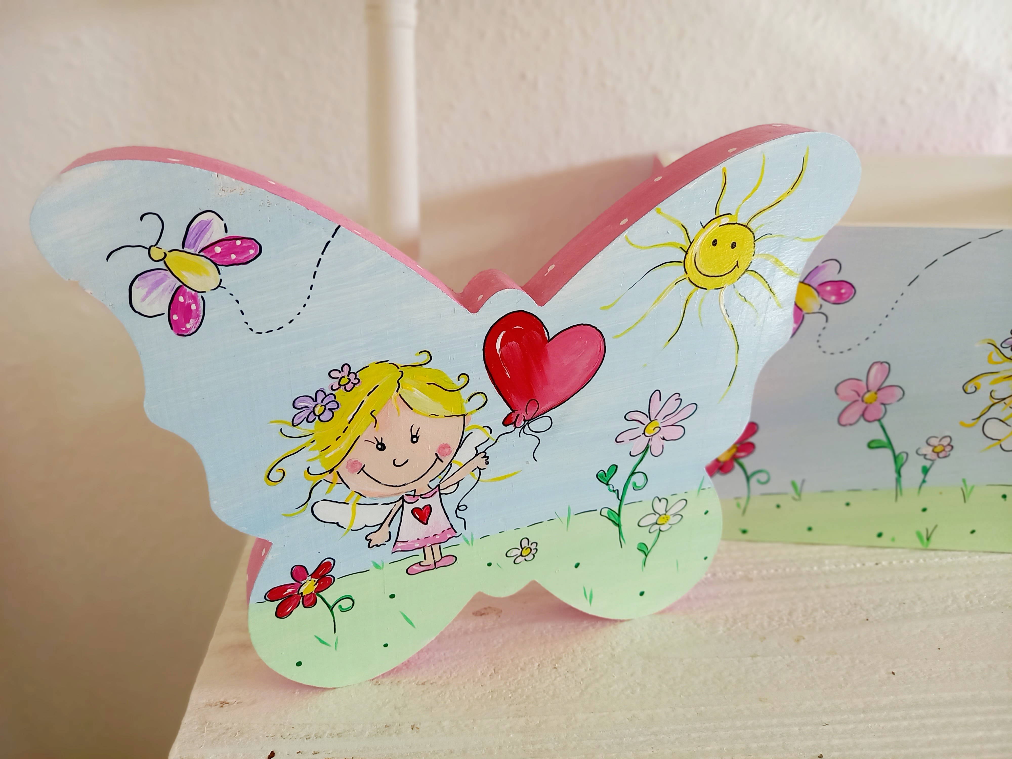 Material: Holz-Schmetterling, Acrylfarben, Acryllack