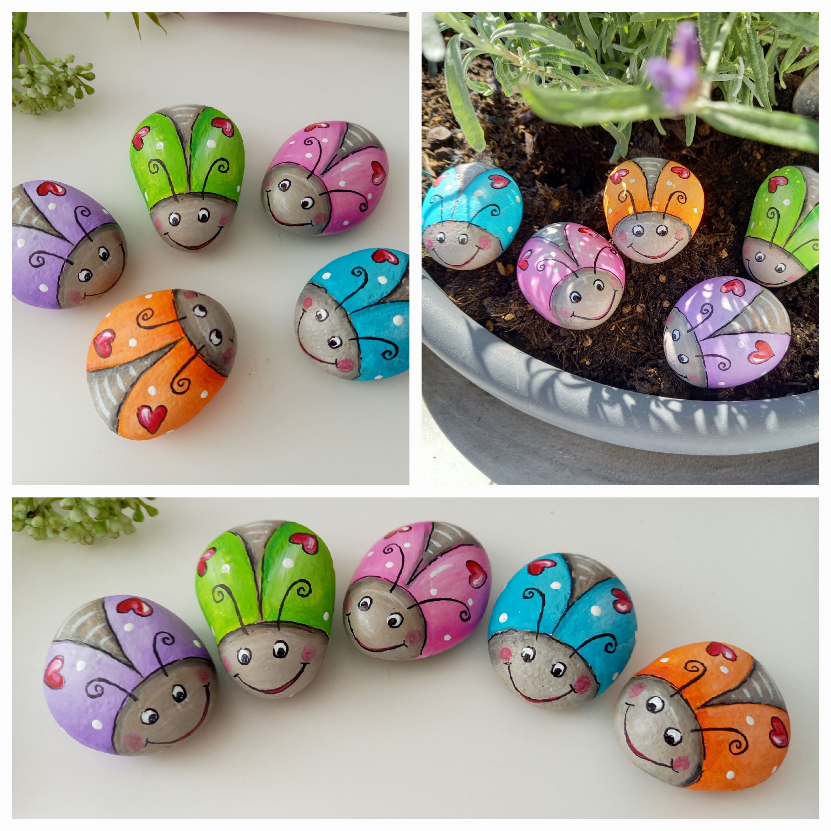 Mobile Preview: Kleiner Käferl-Stein * Grün mit Herzen * 4 x 2,8 x 1,5 cm