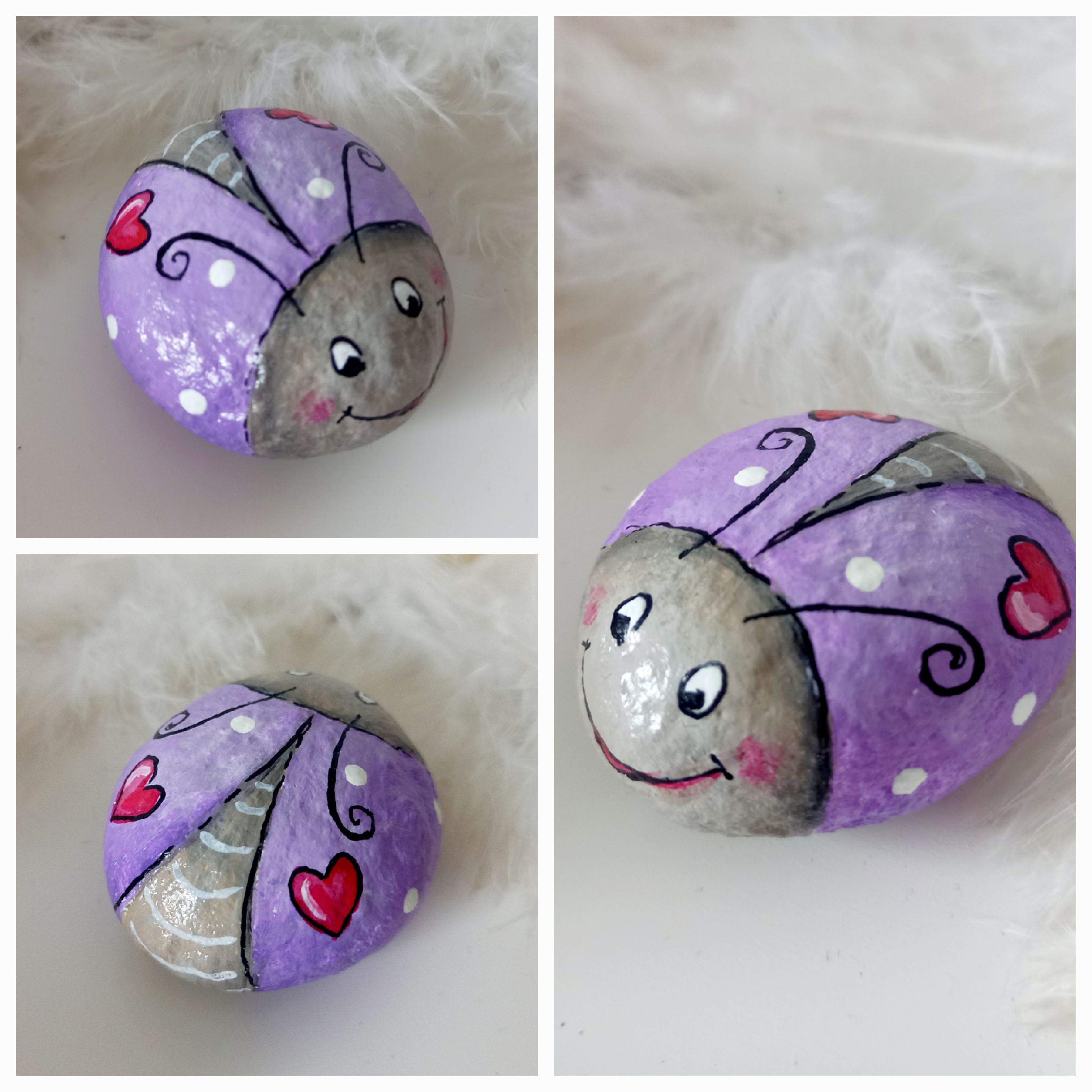 Mobile Preview: Kleiner Käferl-Stein * Lila mit Herzen * 4,2 x 3,7 x 2,4 cm