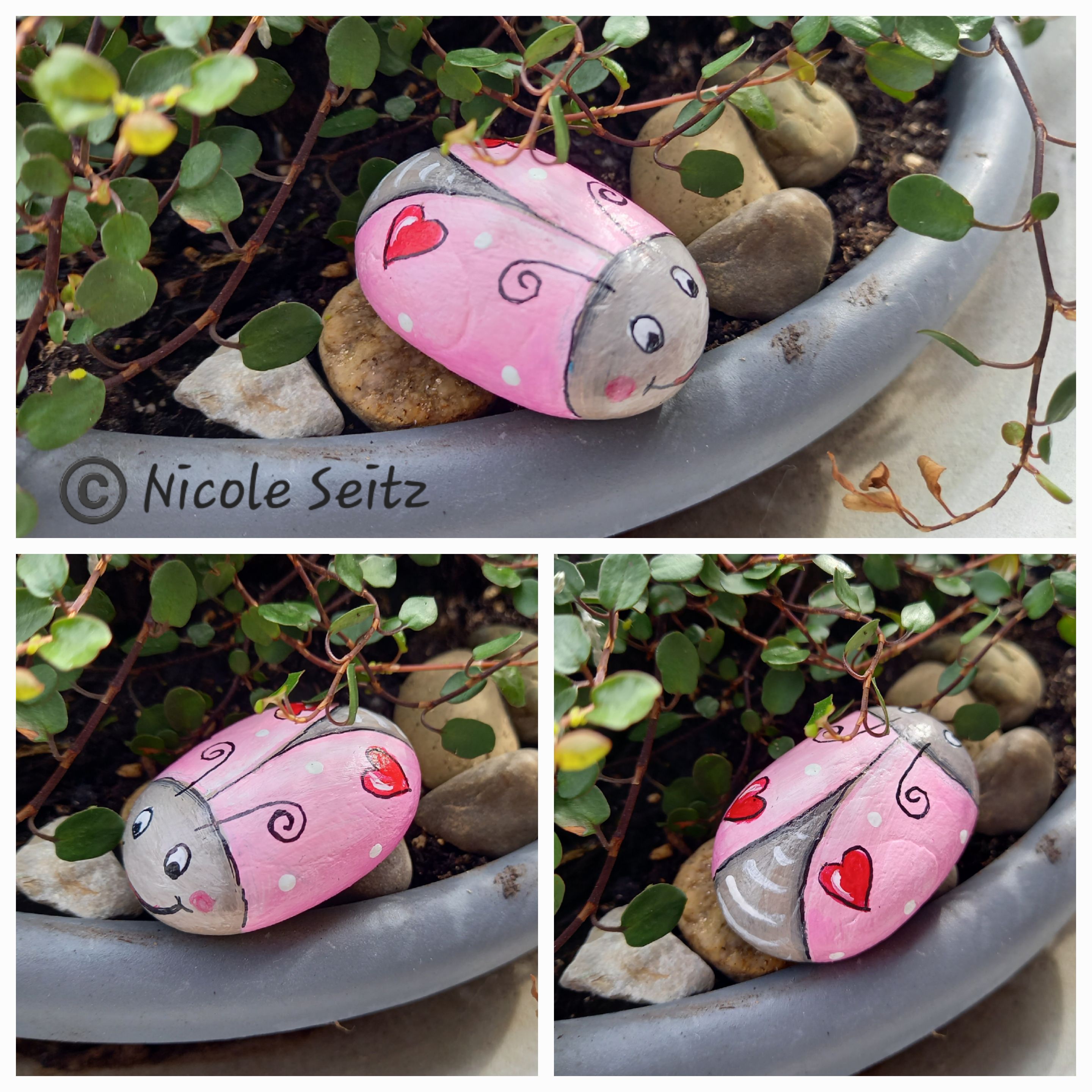 Kleiner Käferl-Stein * Rosa mit Herzen * 5 x 4,3 x 2,4 cm