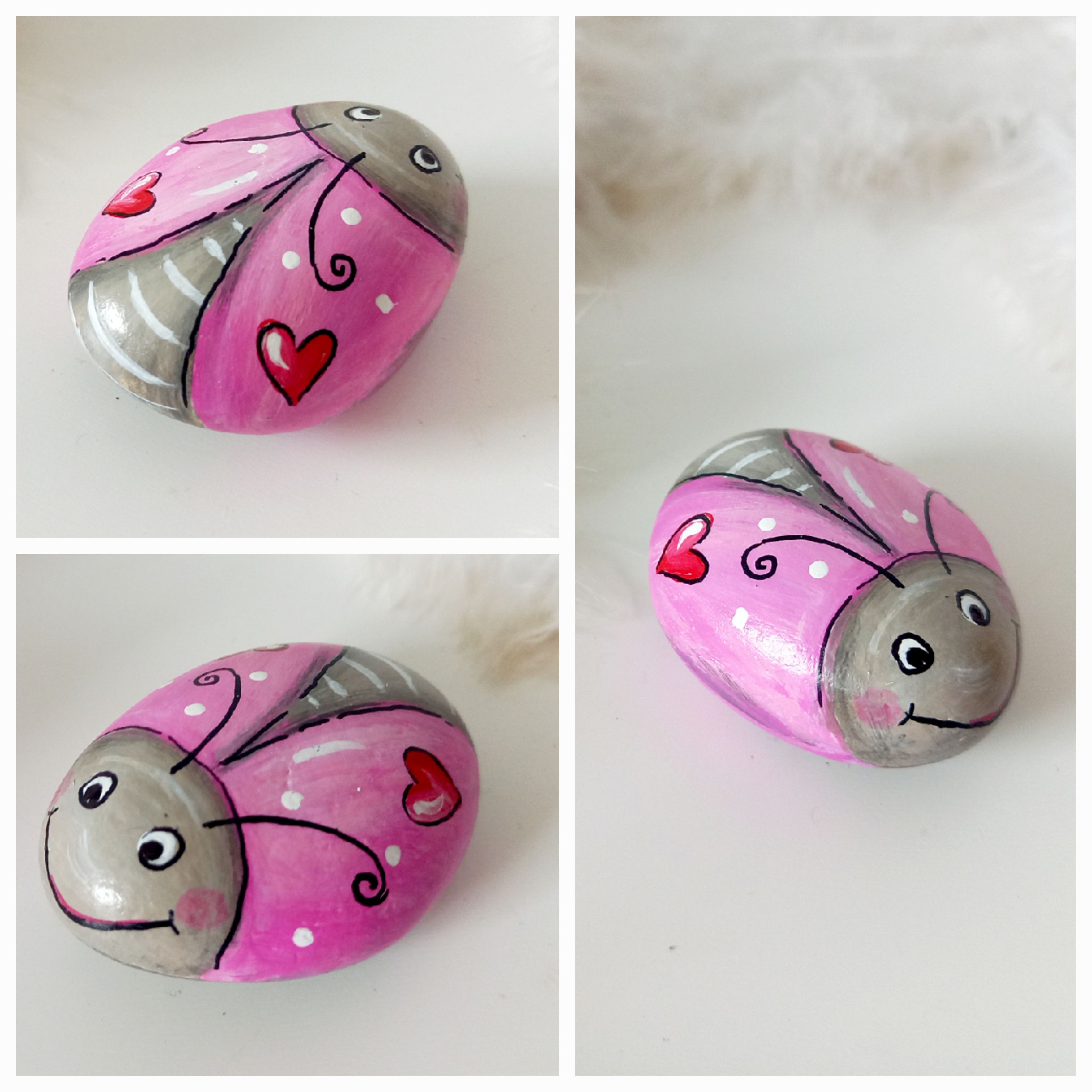 Kleiner Käferl-Stein * Pink mit Herzen * 4,3 x 3,5 x 1,9 cm