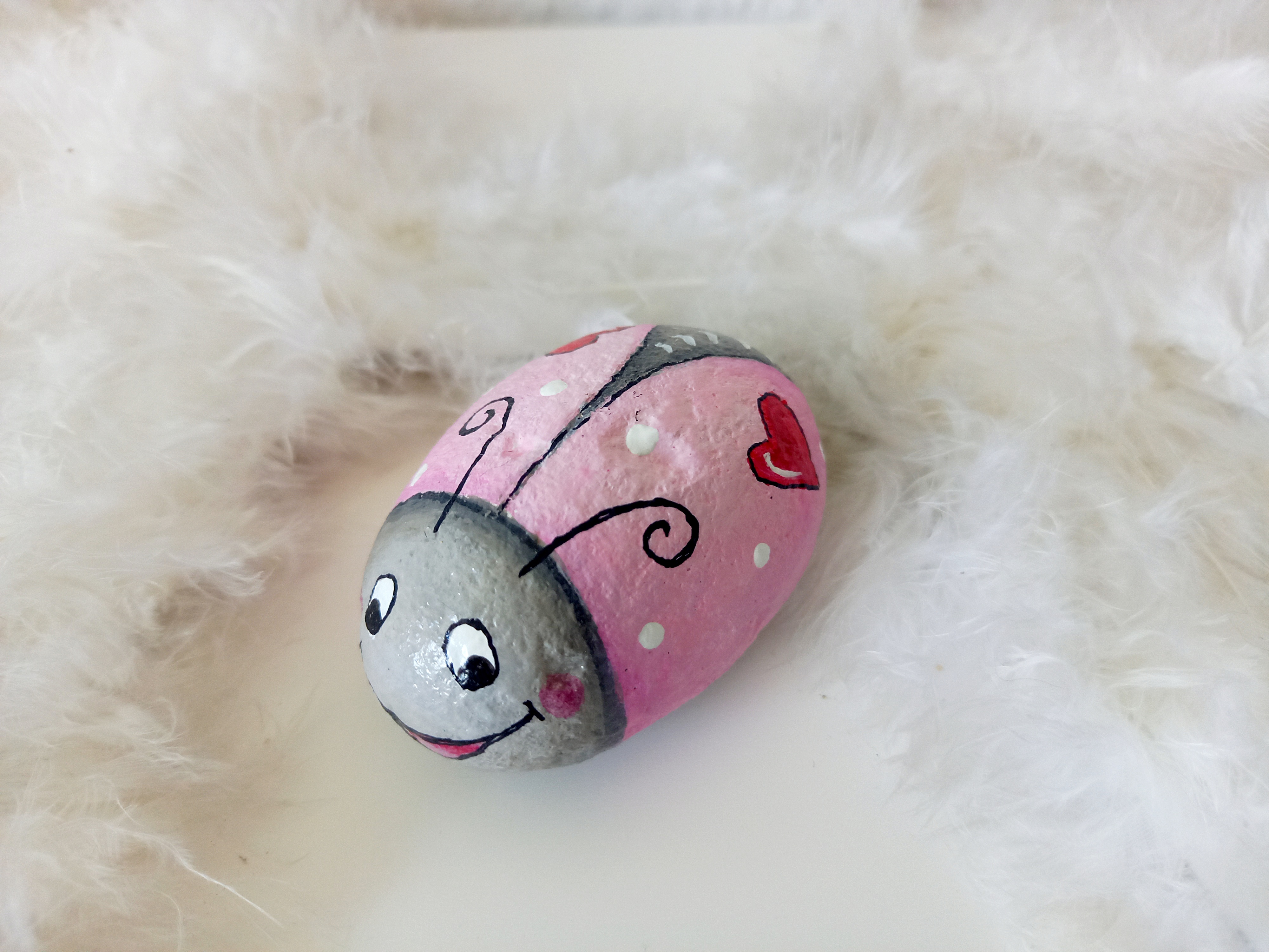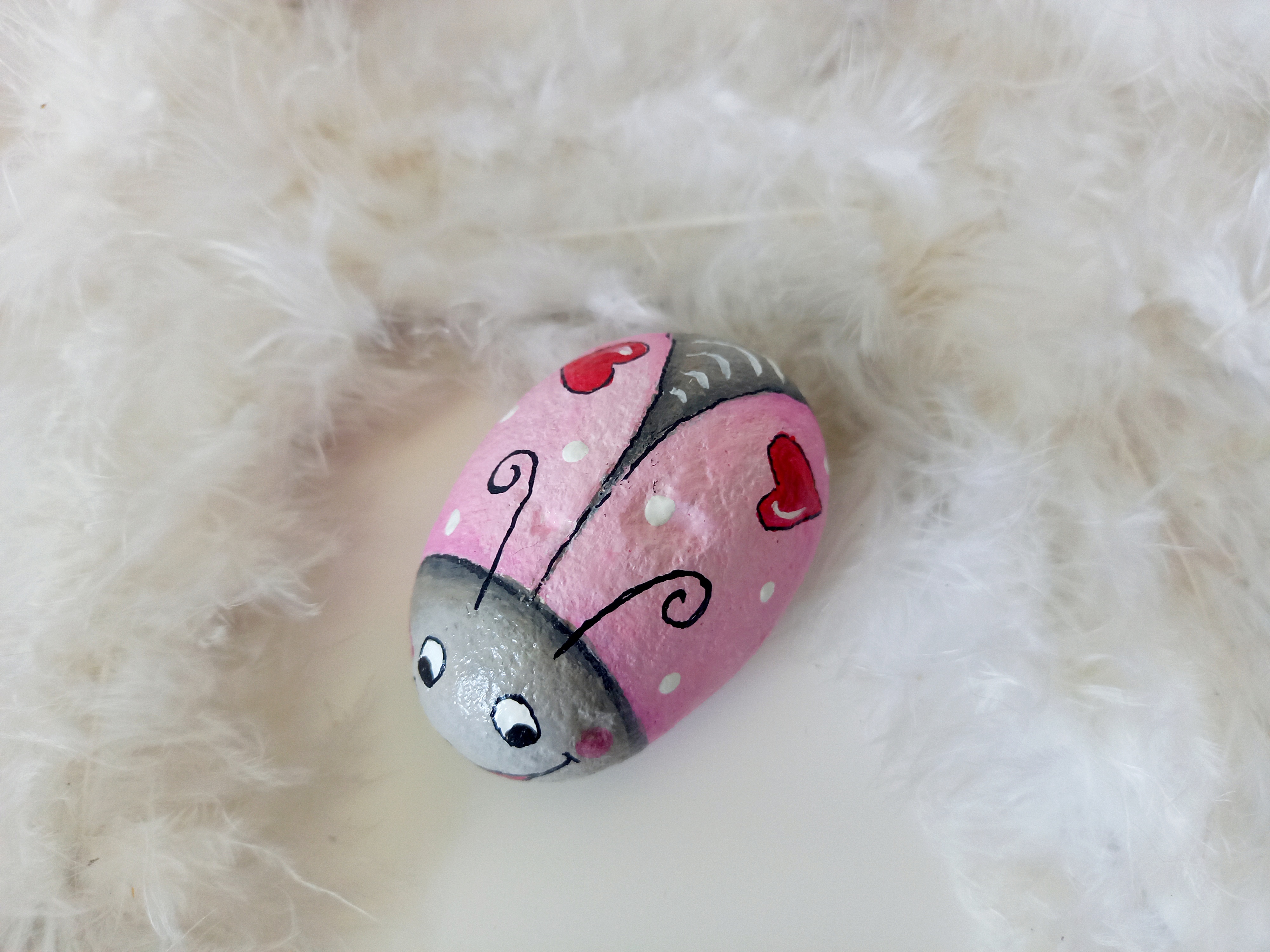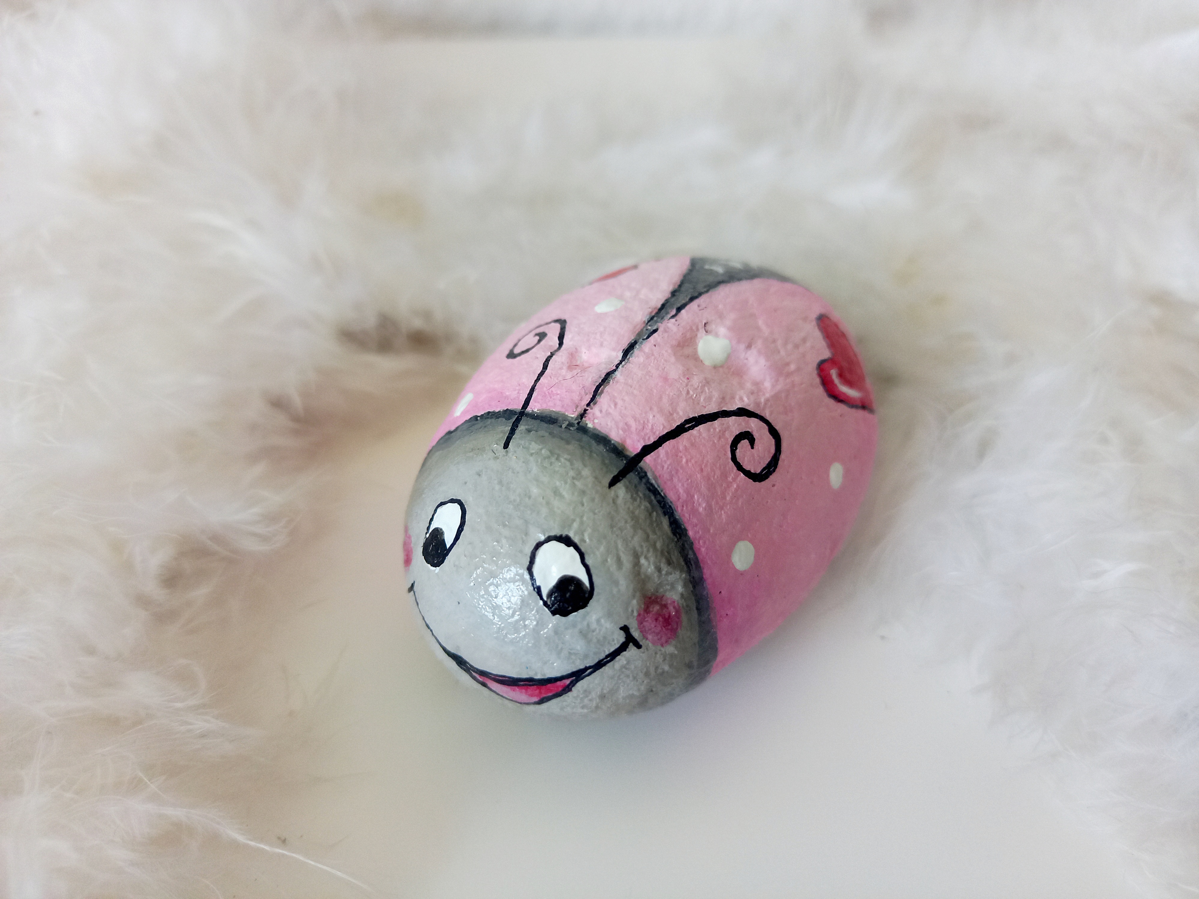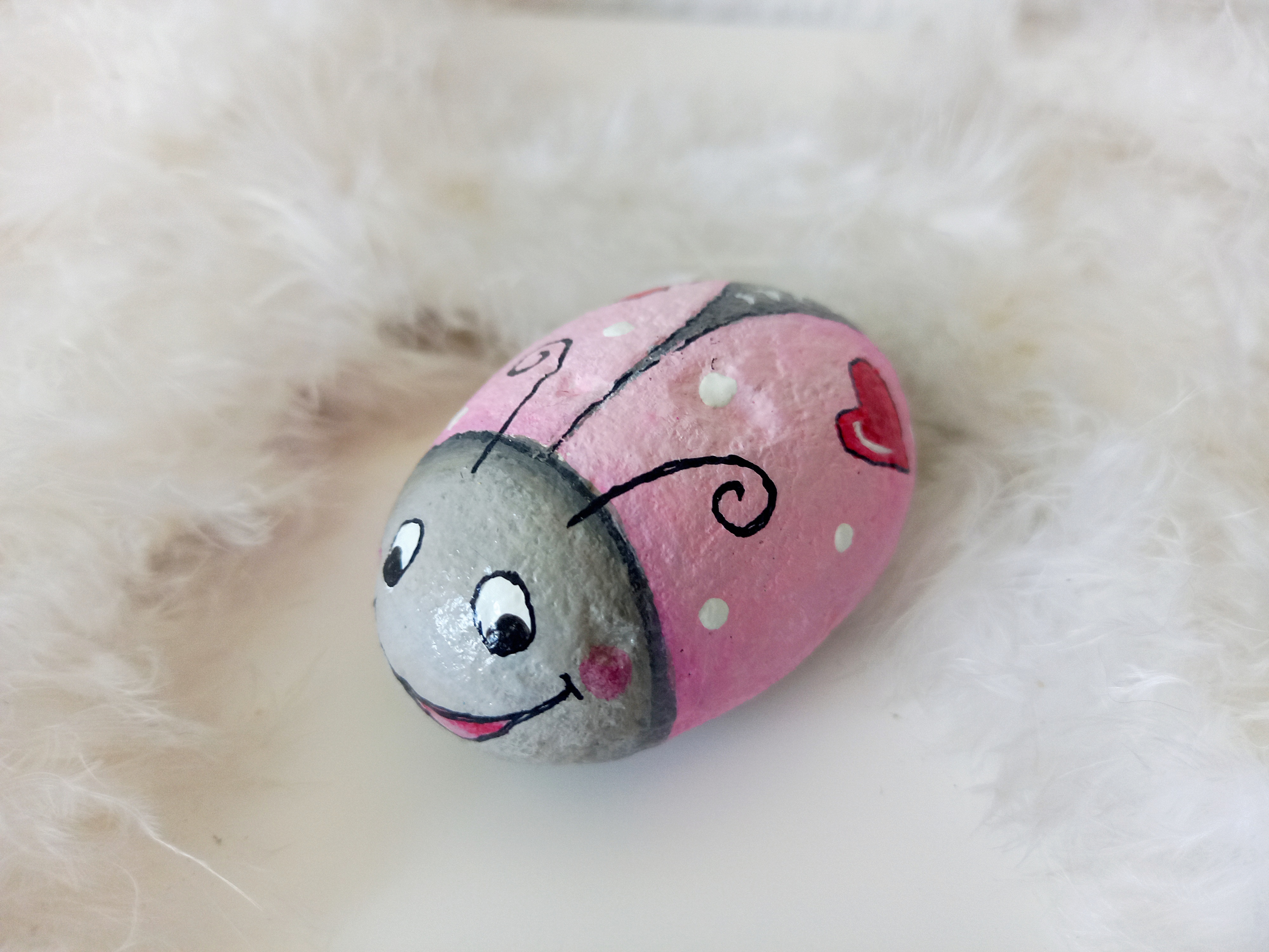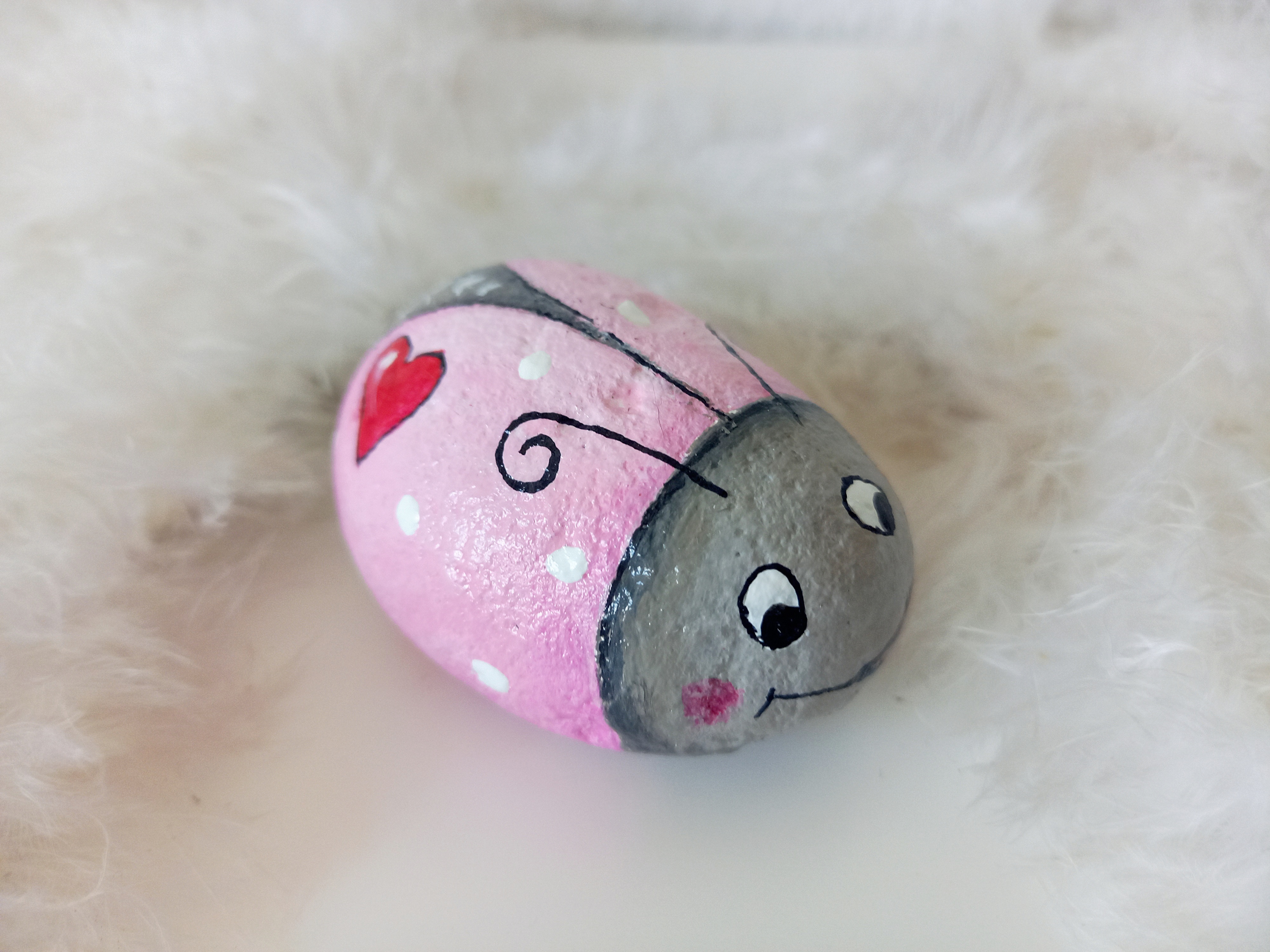 Käferl-Stein * Rosa mit Herzen * 6,7 x 4,7 x 3,7 cm