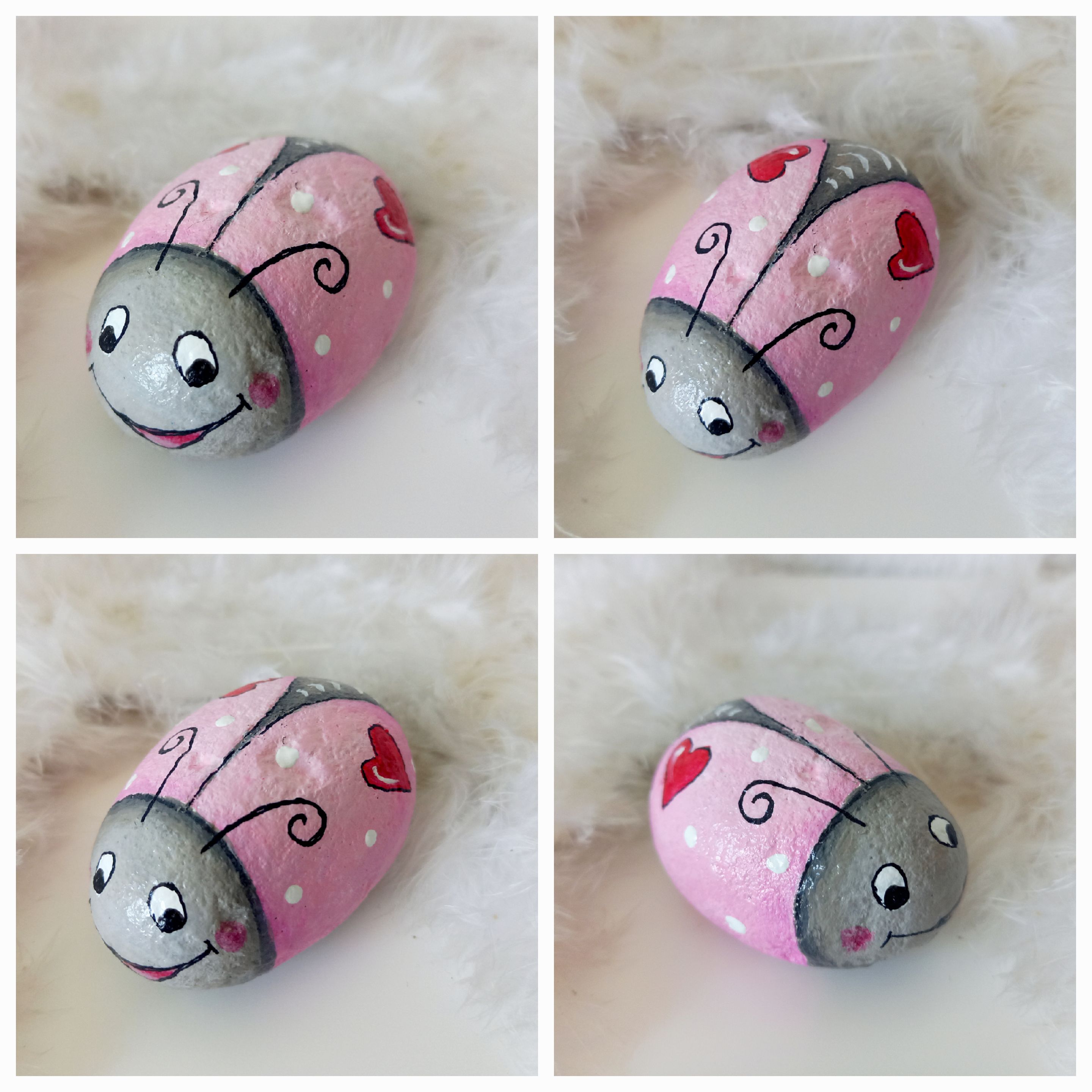 Preview: Käferl-Stein * Rosa mit Herzen * 6,7 x 4,7 x 3,7 cm