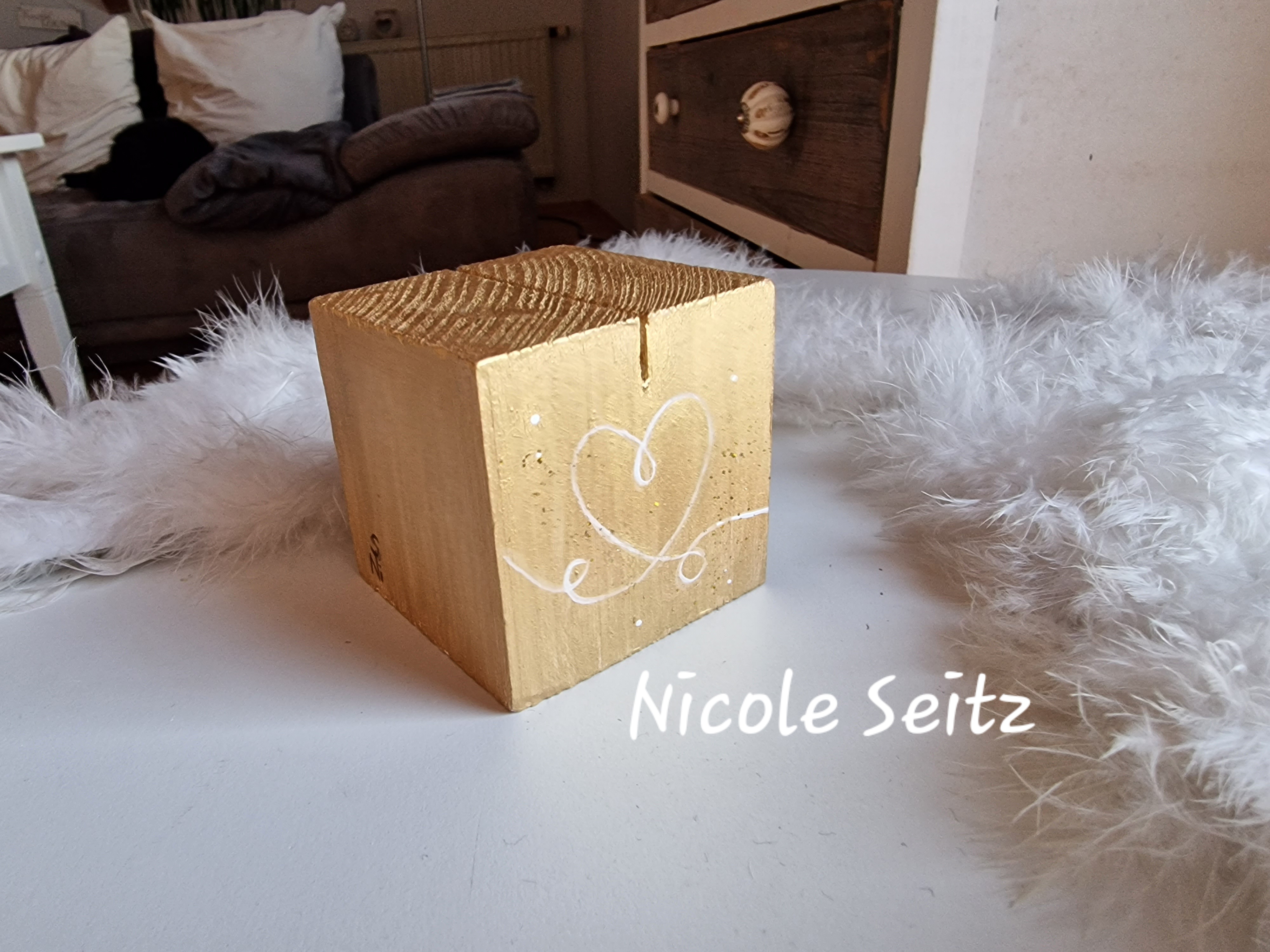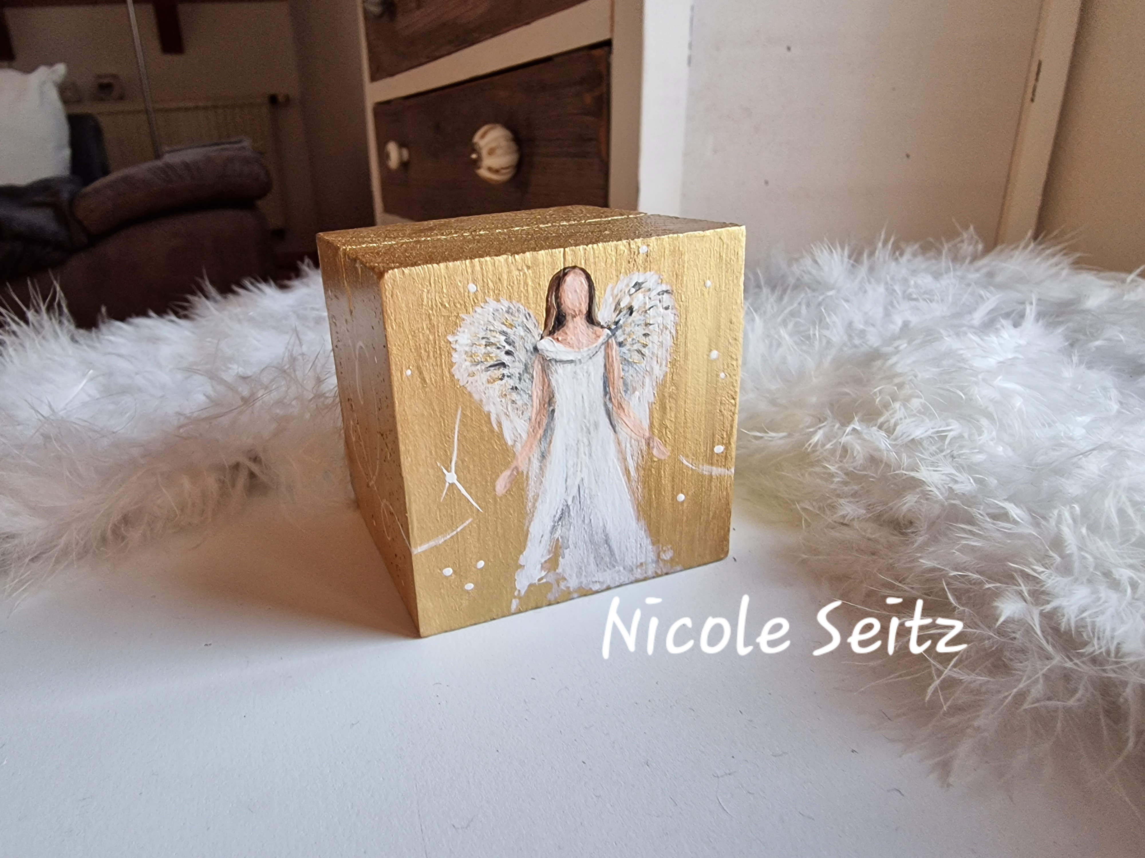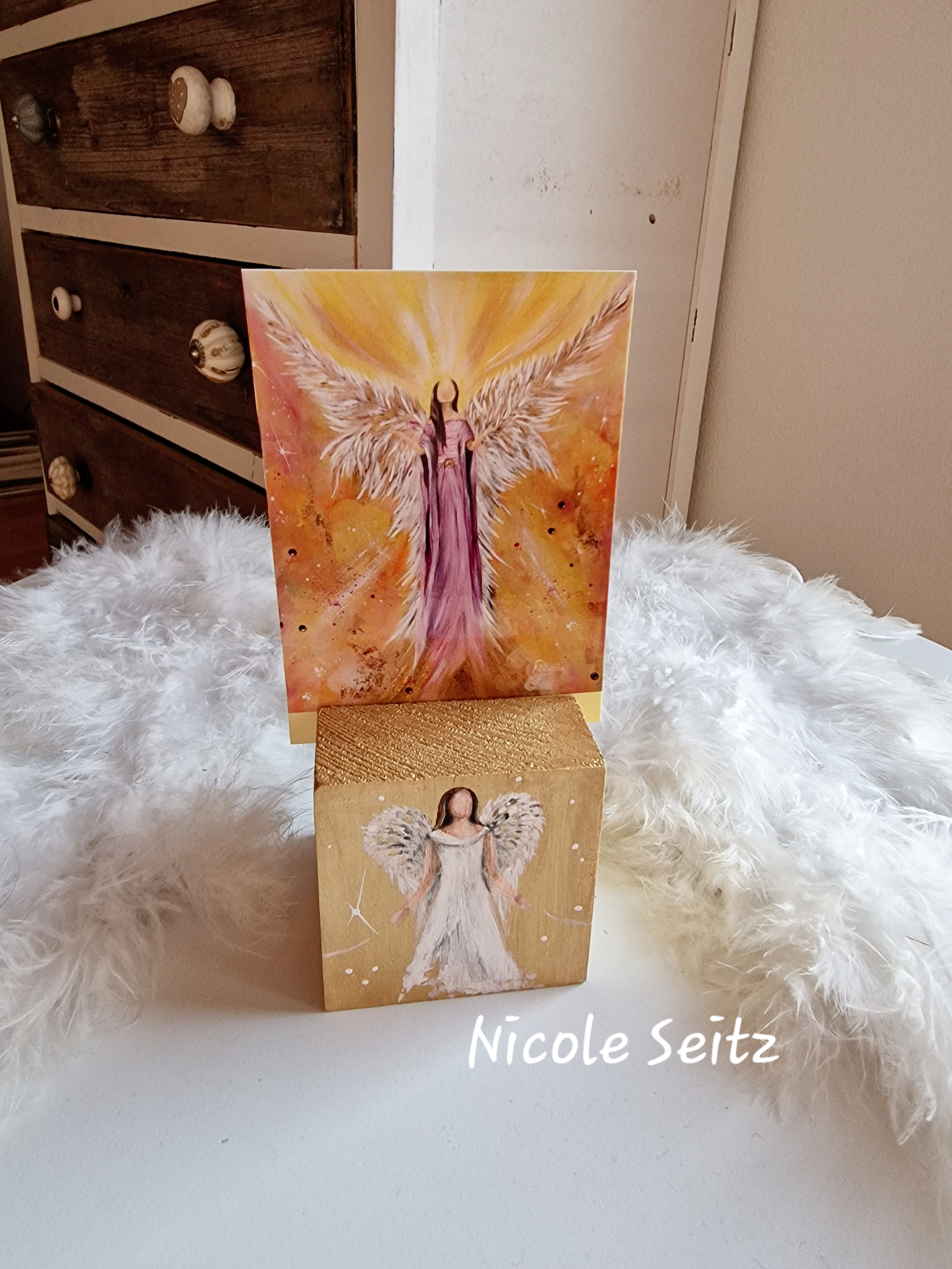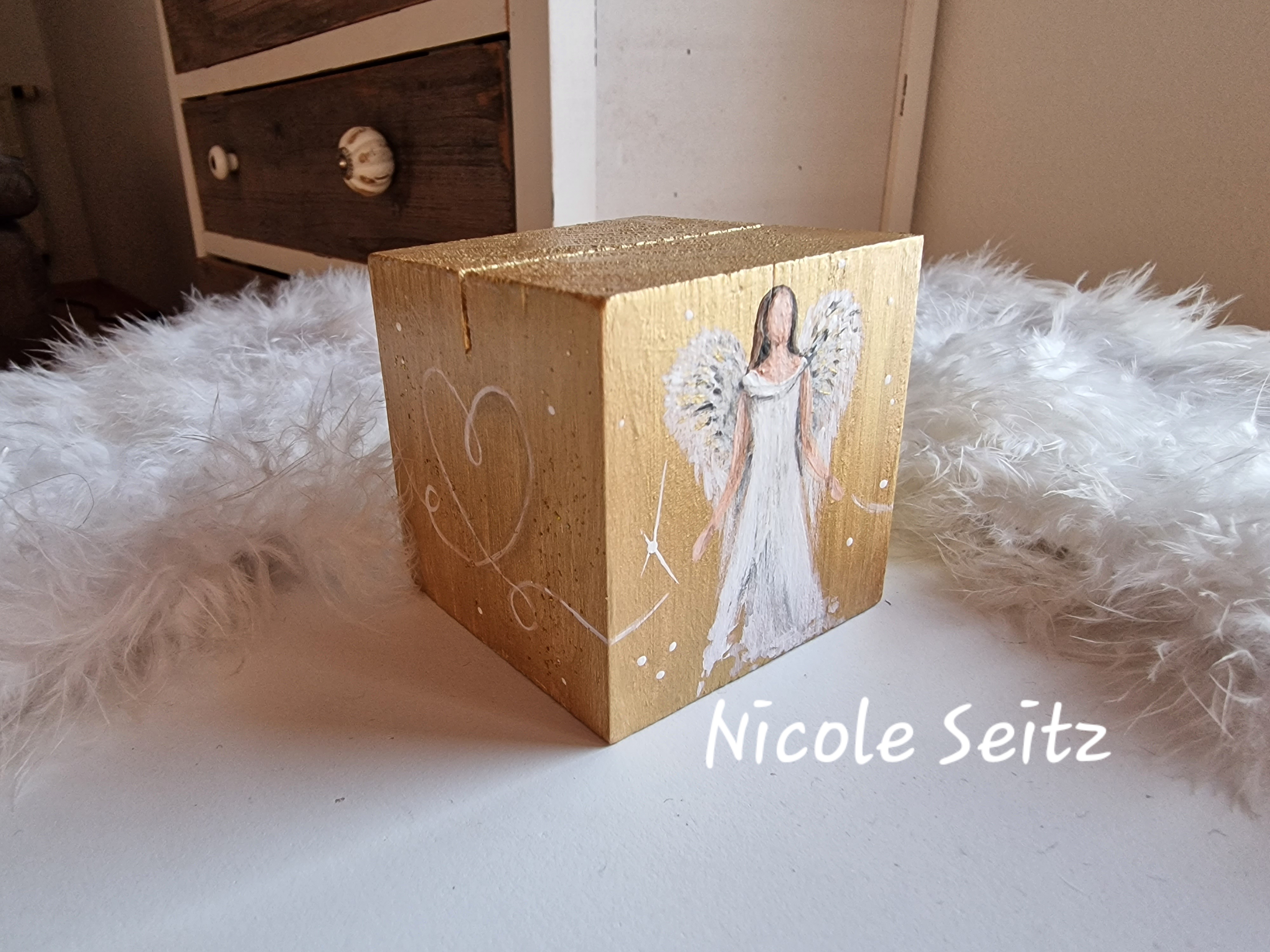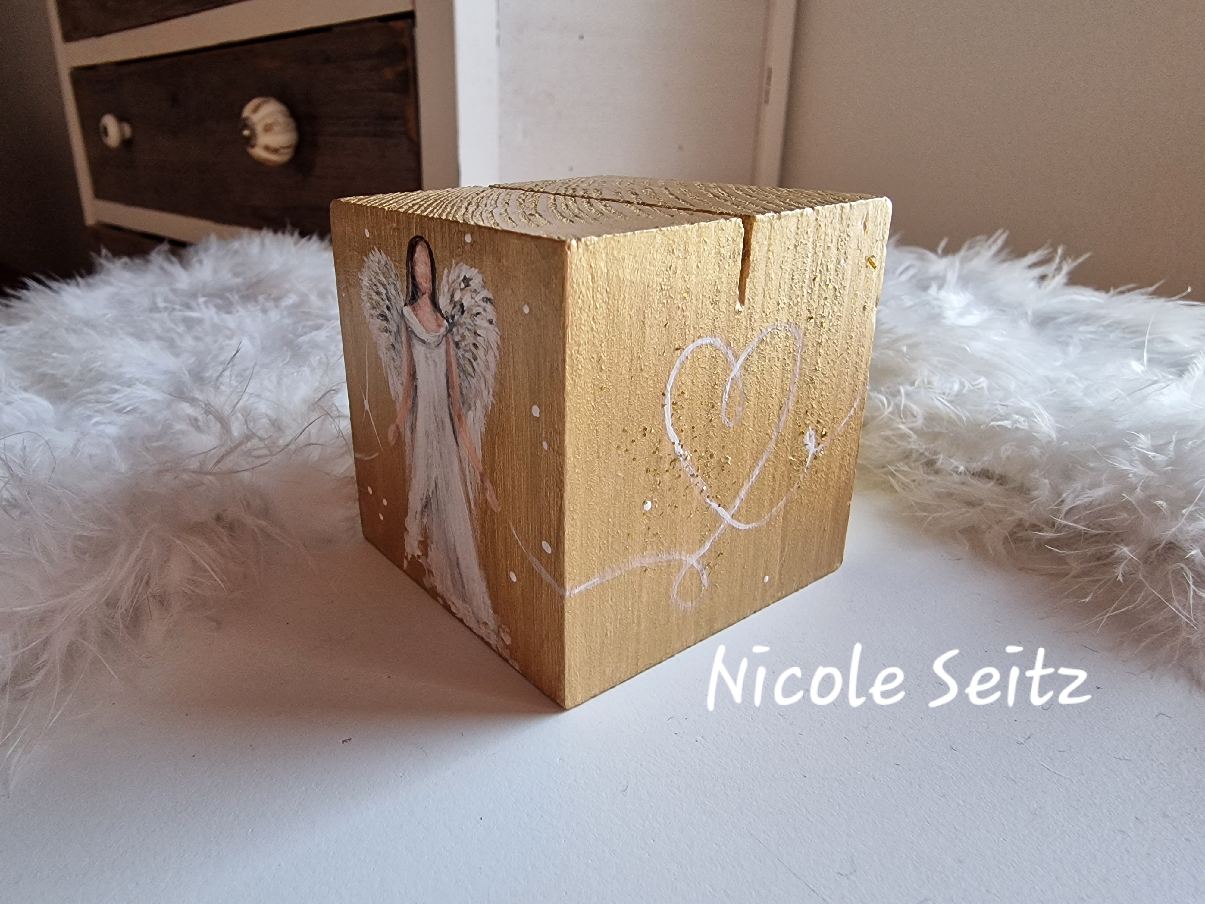 Kartenhalter * Engel * handbemalt * Holz * Herz * Gold