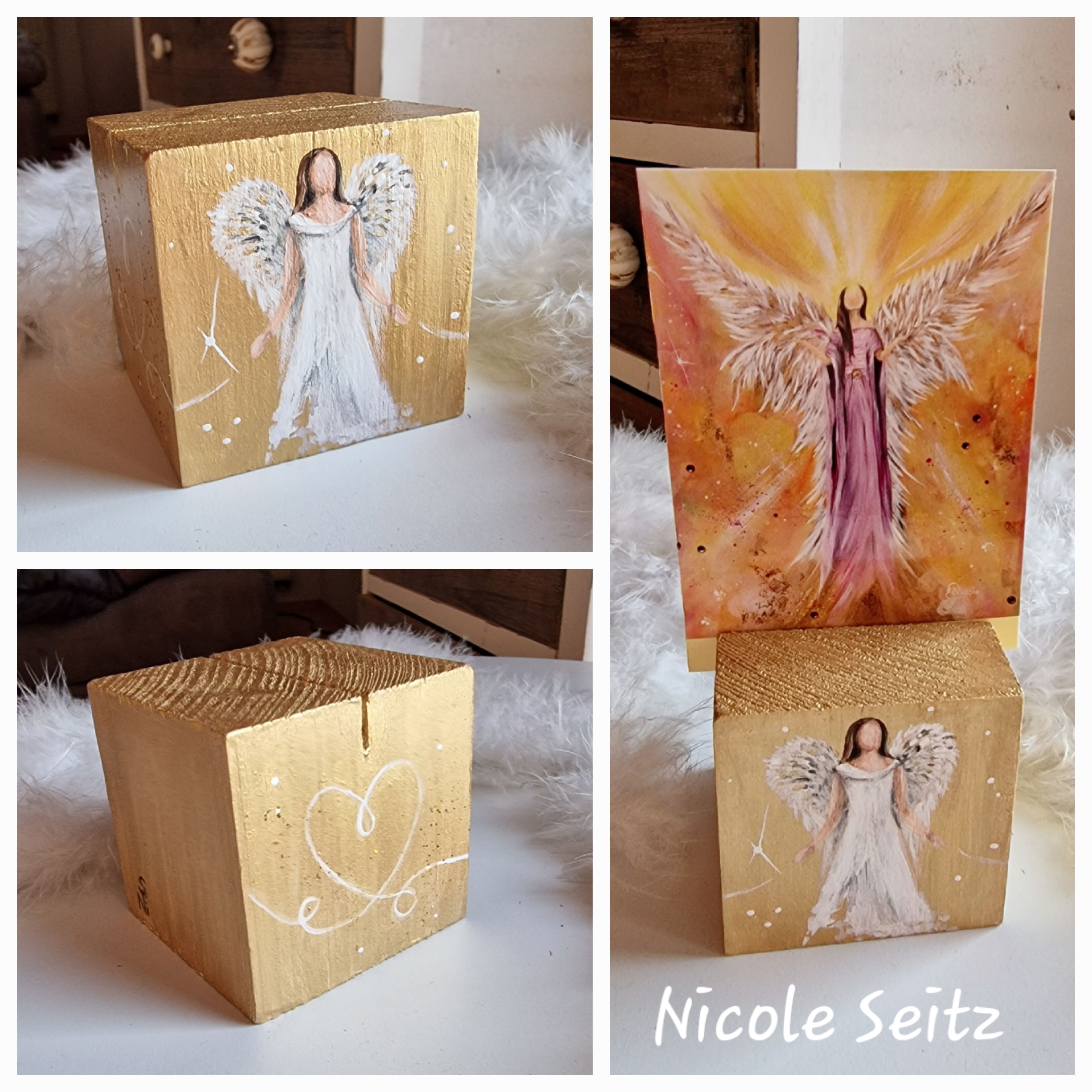 Mobile Preview: Kartenhalter * Engel * handbemalt * Holz * Herz * Gold
