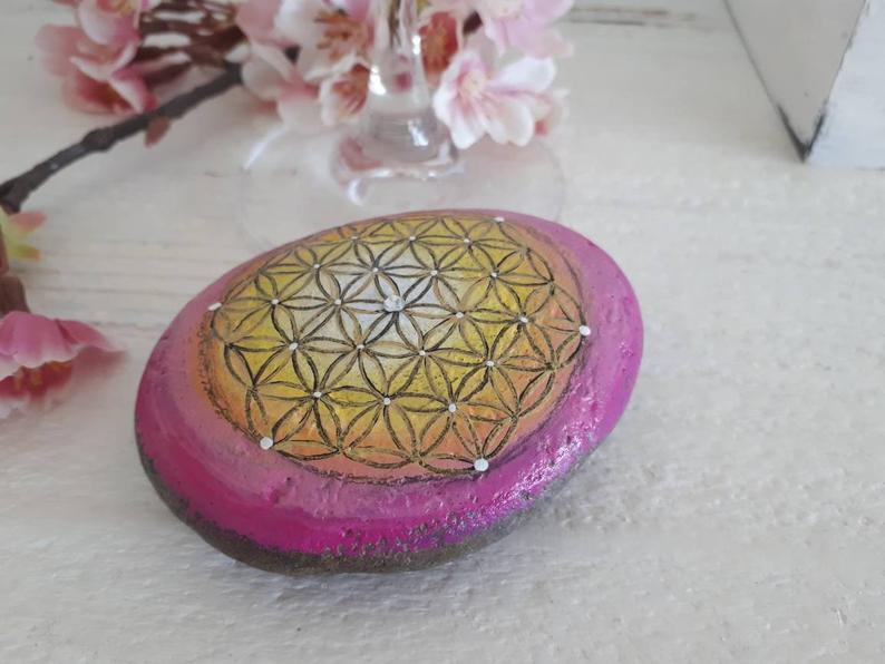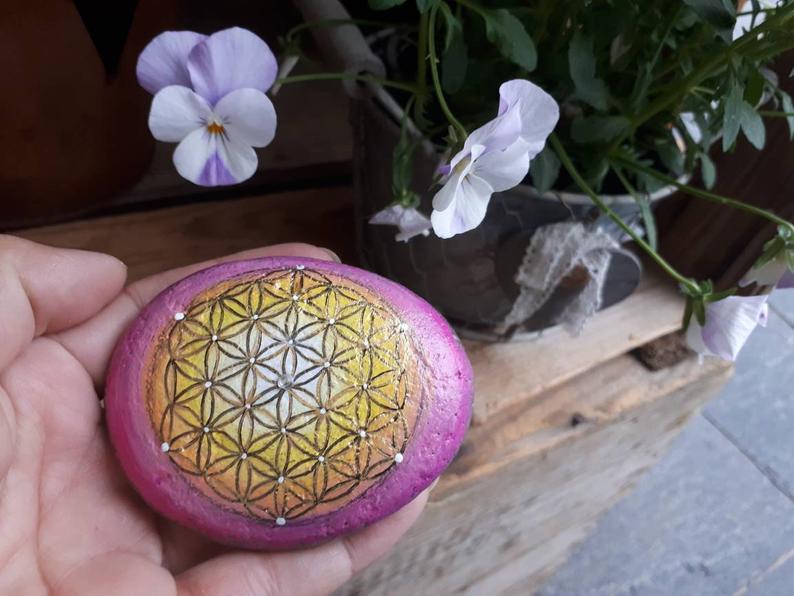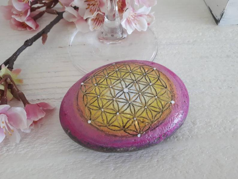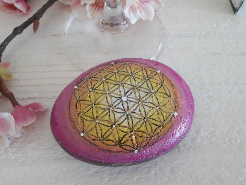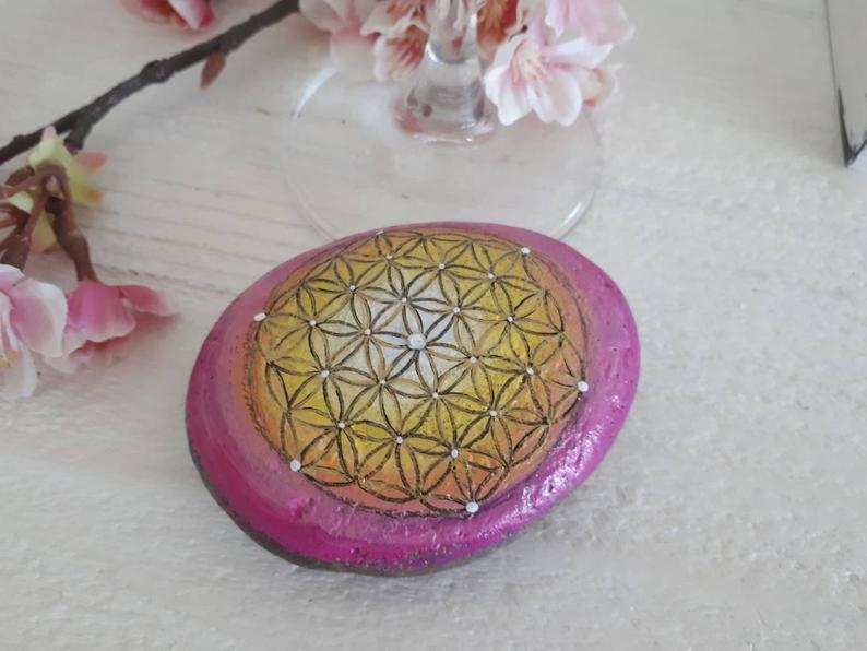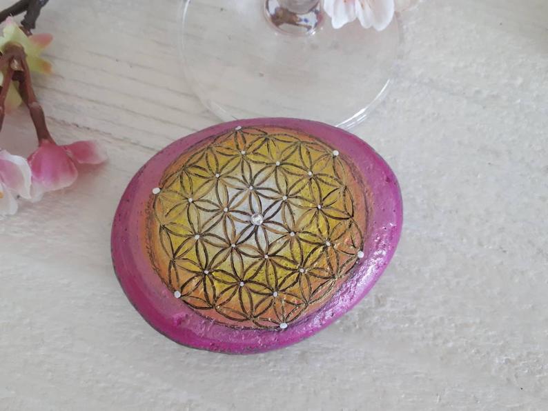 Mobile Preview: Stein * Blume des Lebens * handbemalt