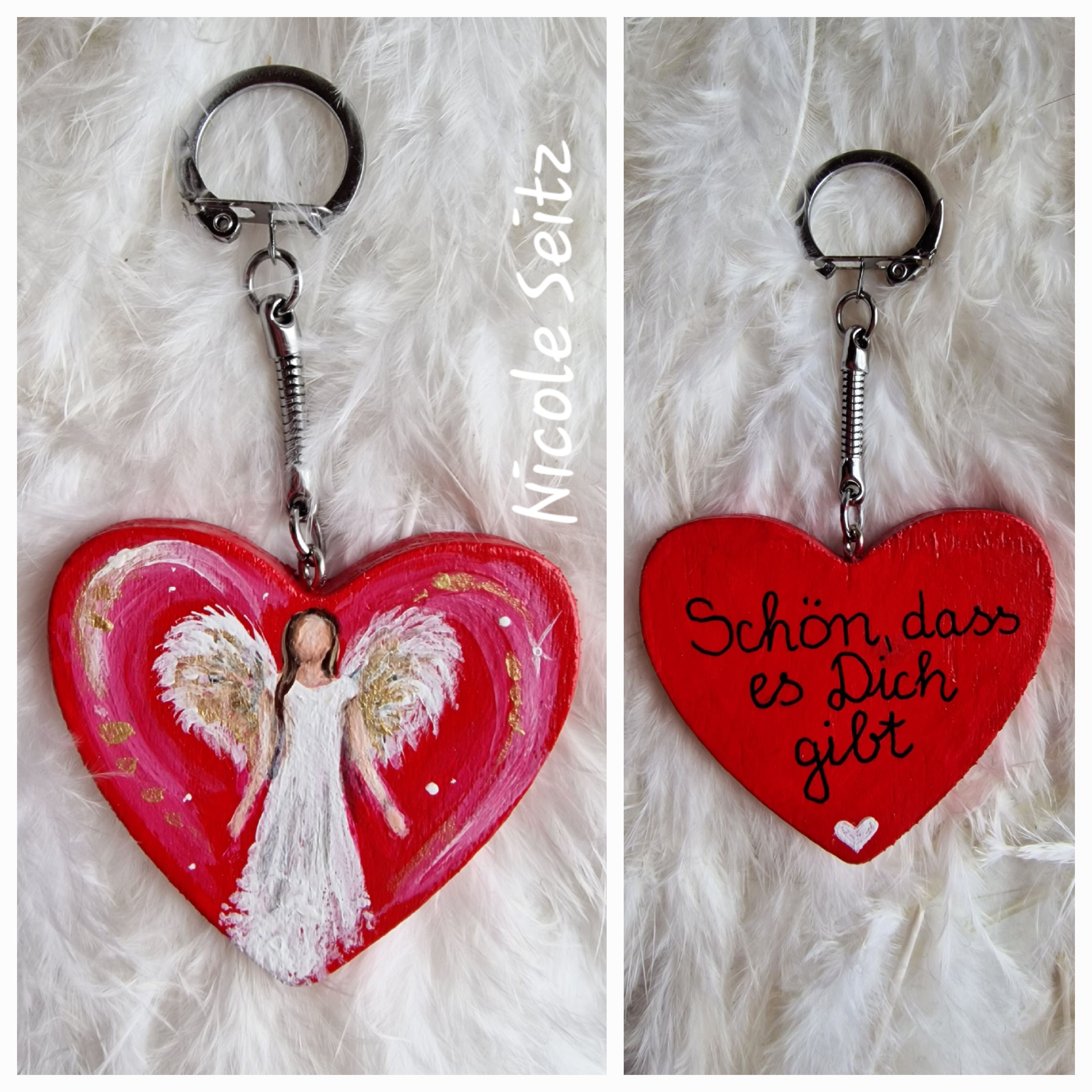 Schlüssel-/Taschenanhänger * Schutzengel * handbemalt * Herz * Rot * Schön, dass es Dich gibt
