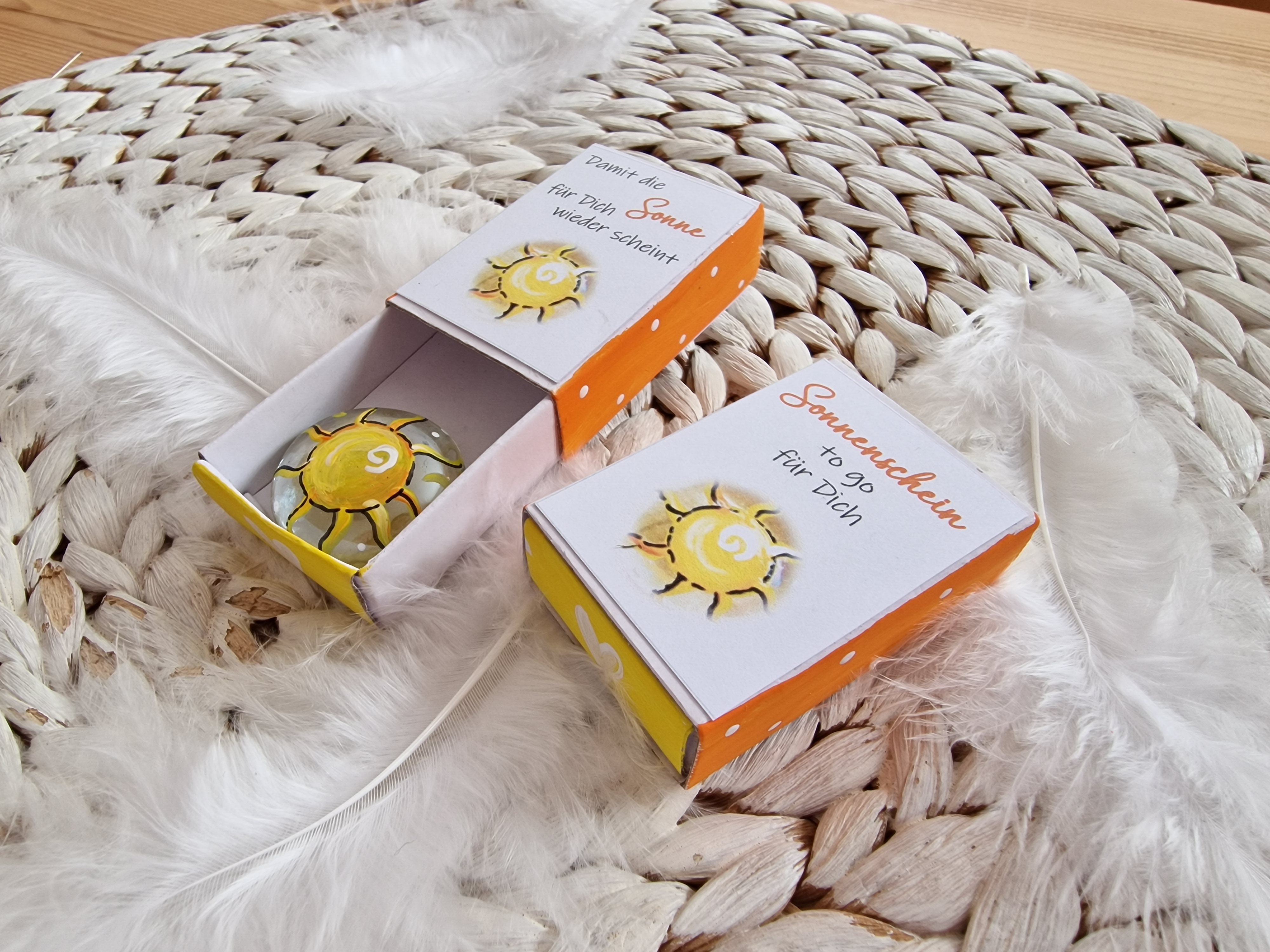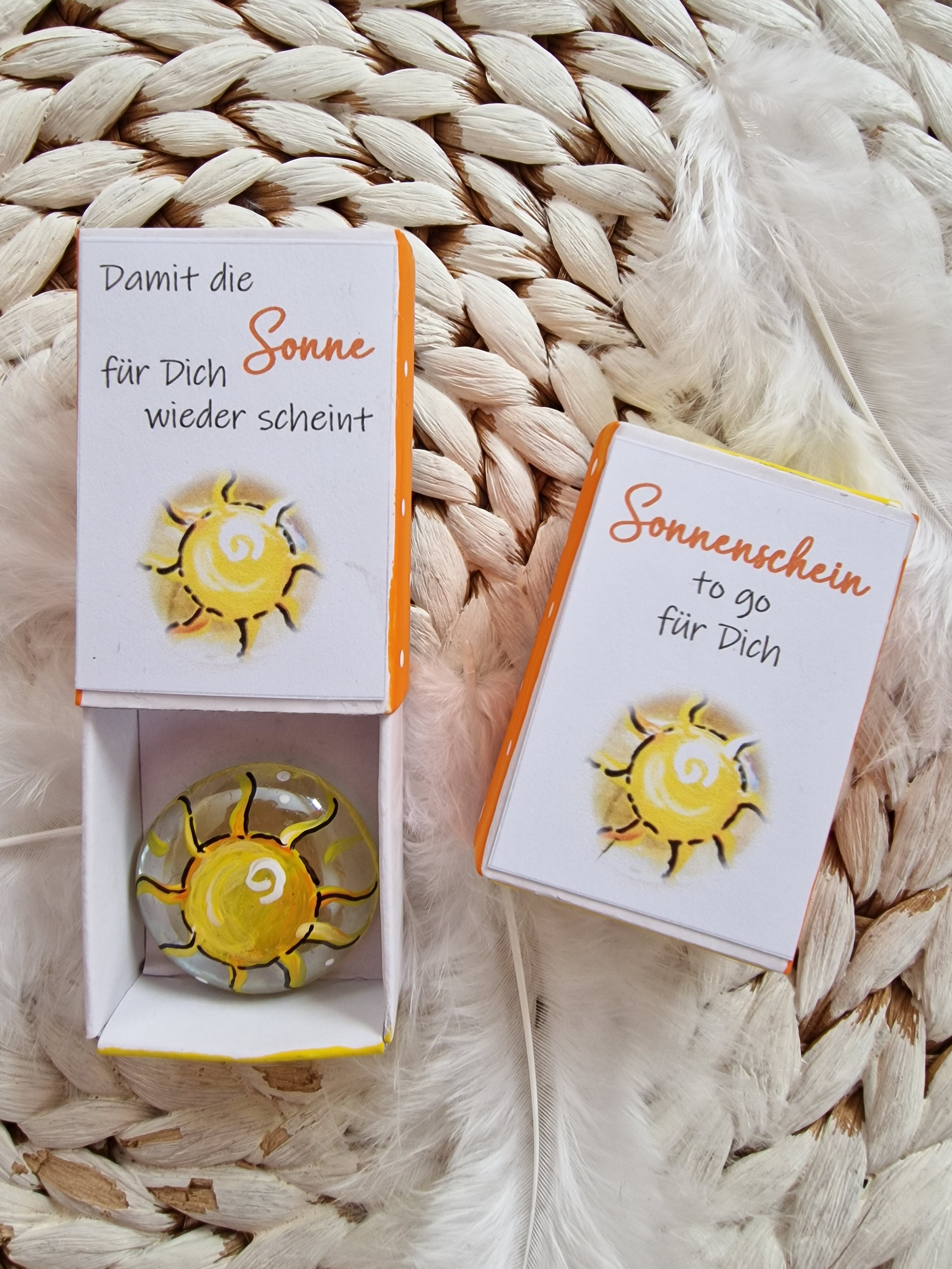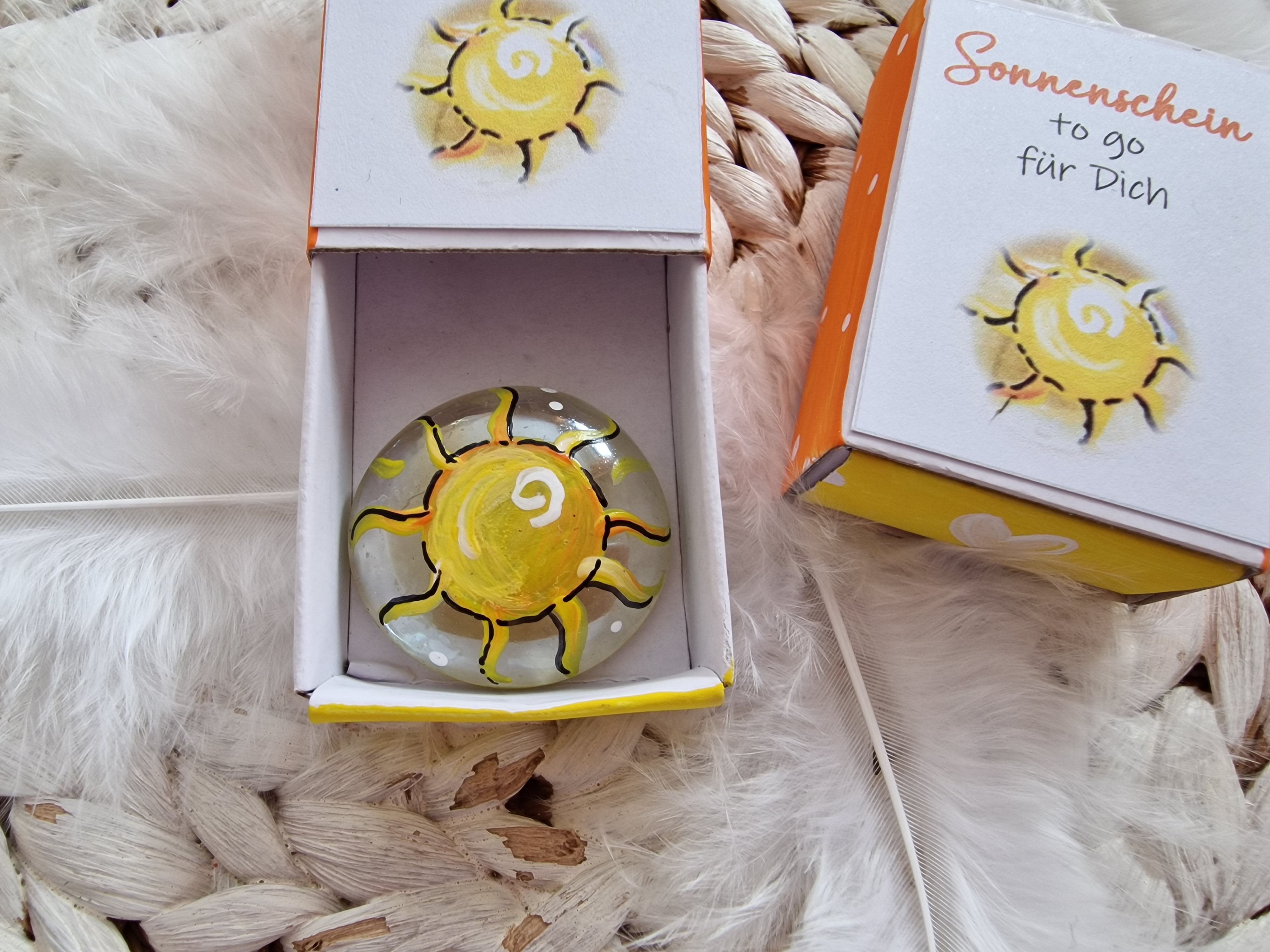 Glasstein * 2,8 cm * Damit die Sonne für Dich wieder scheint / Sonnenschein to go für Dich * bemalt * Hosentaschen-Glücksbringer