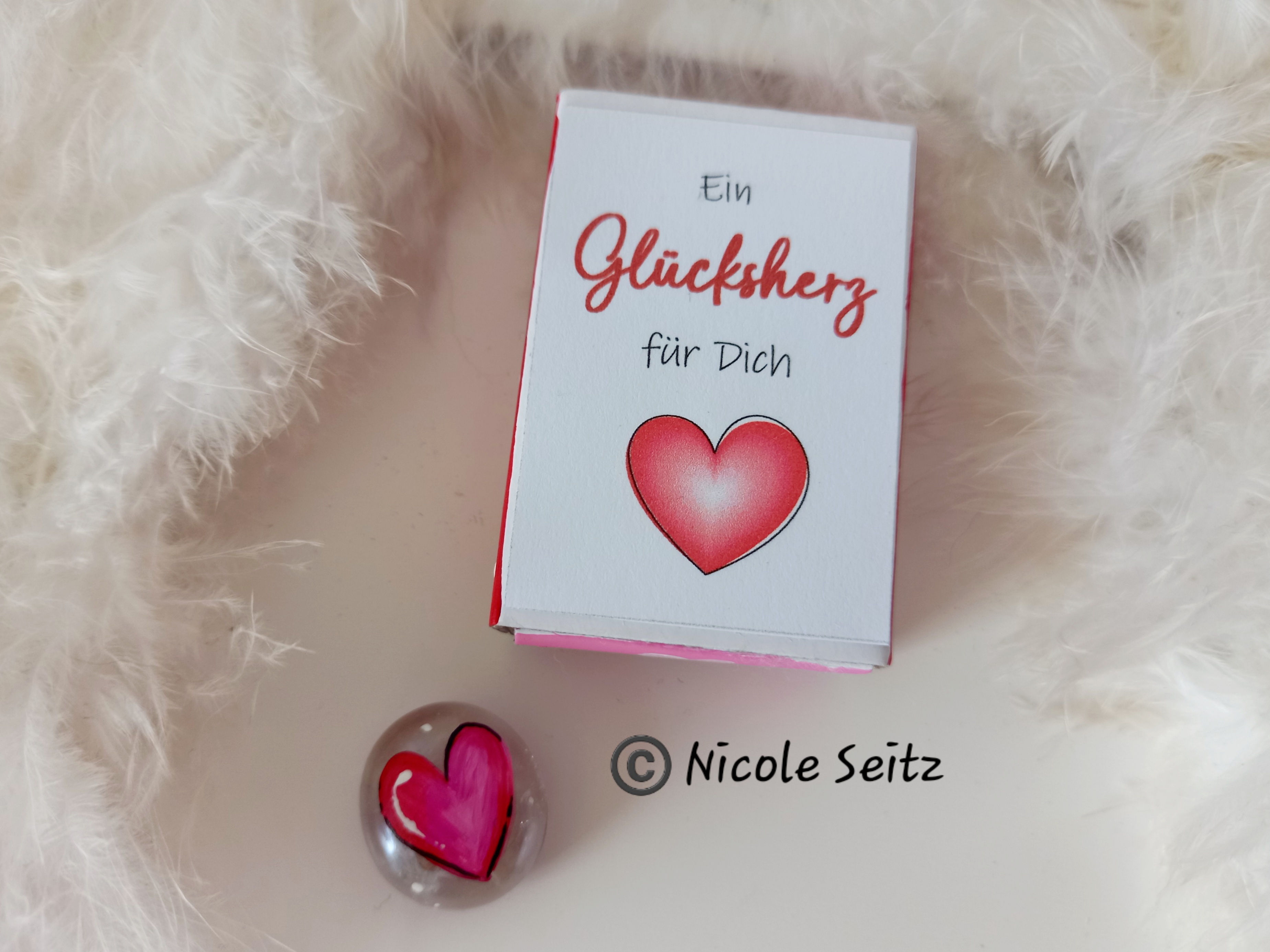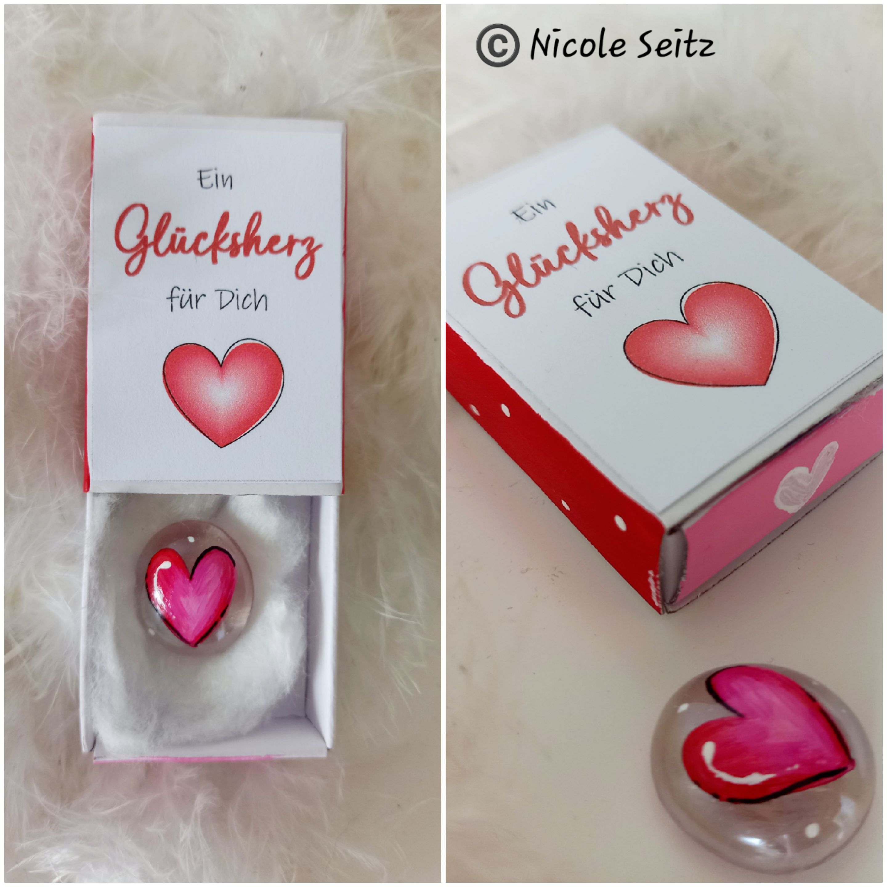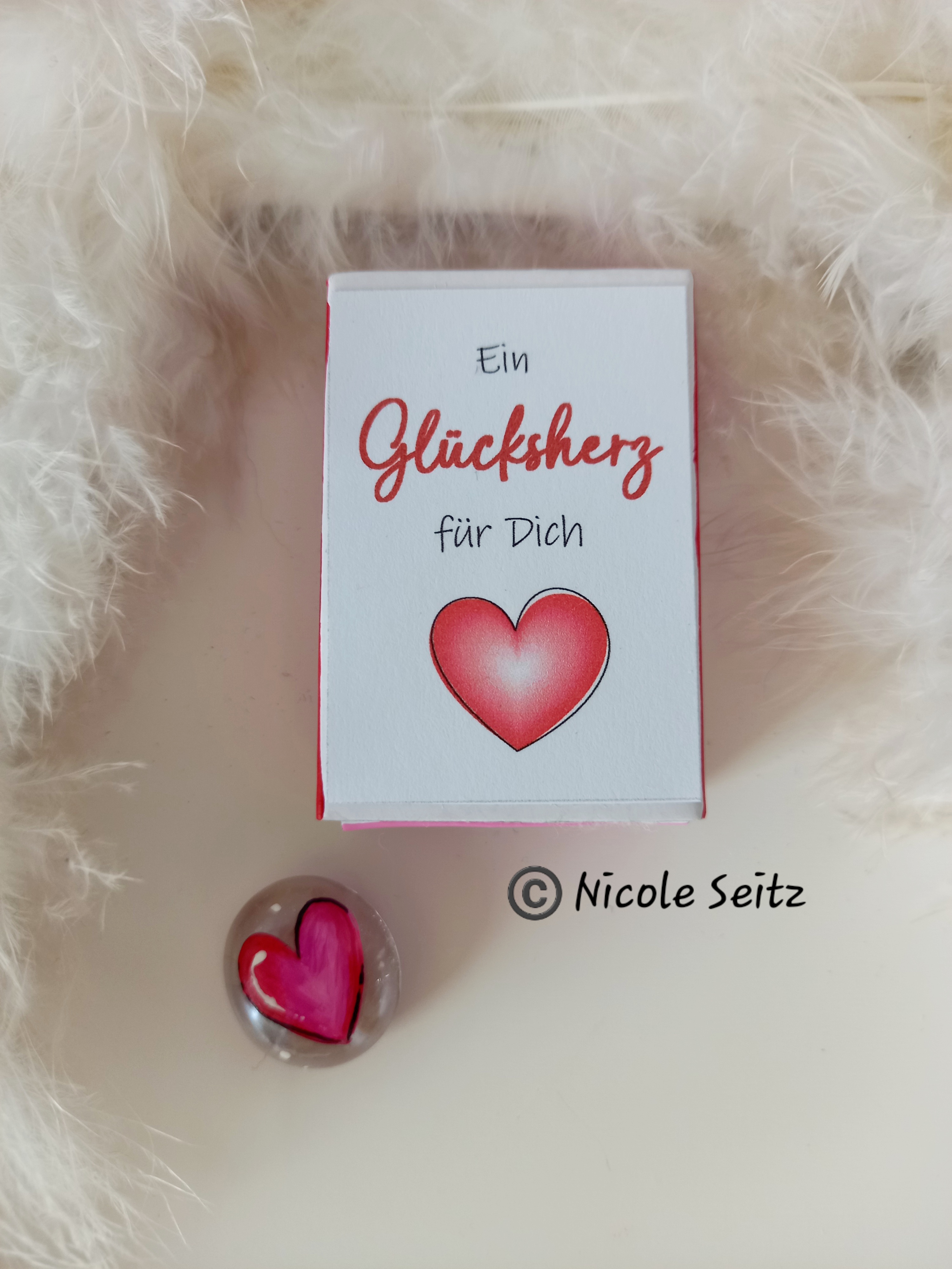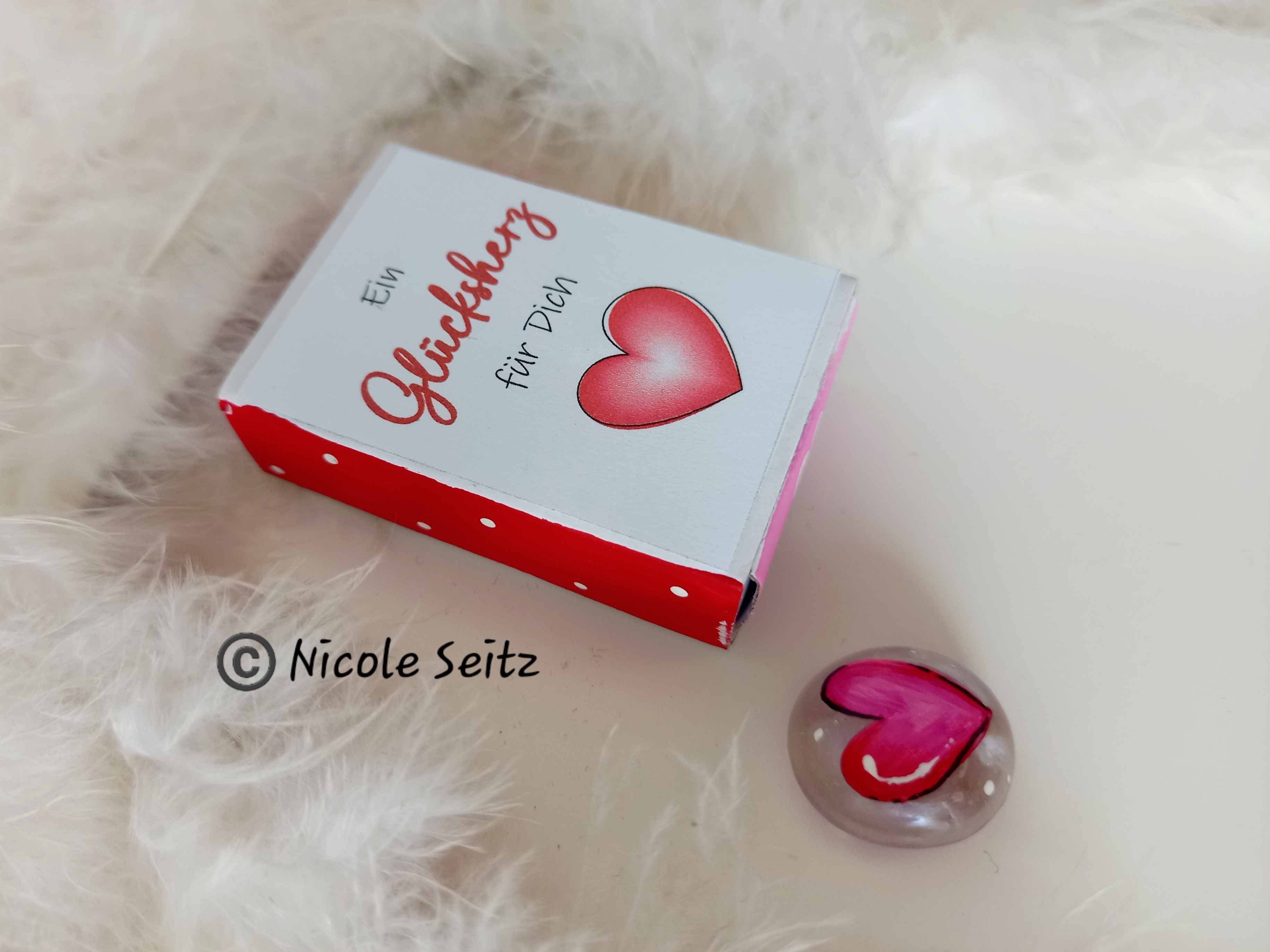Glasstein * Glücksherz * bemalt * in einer kleinen Streichholzschachtel * Rot-Rosa