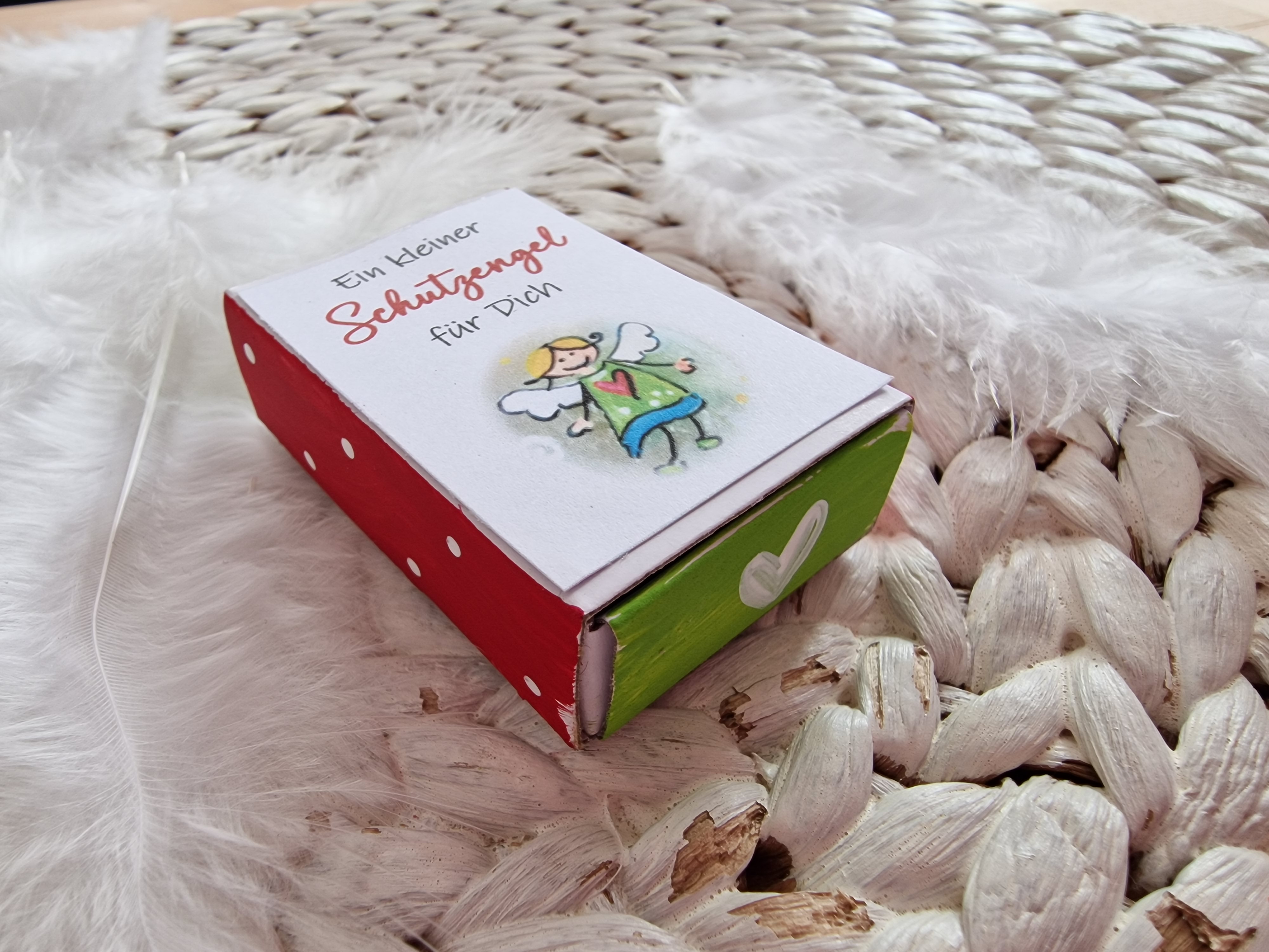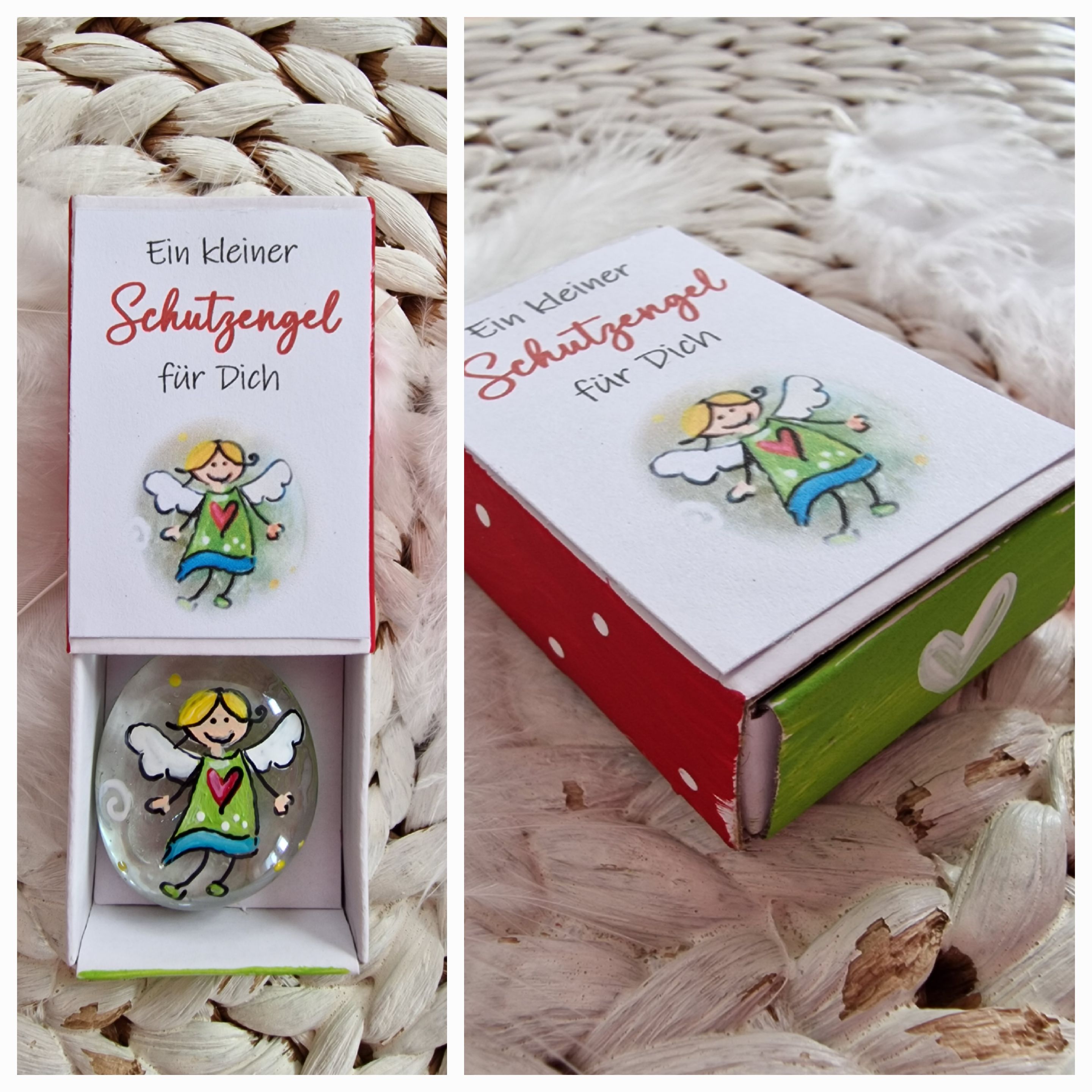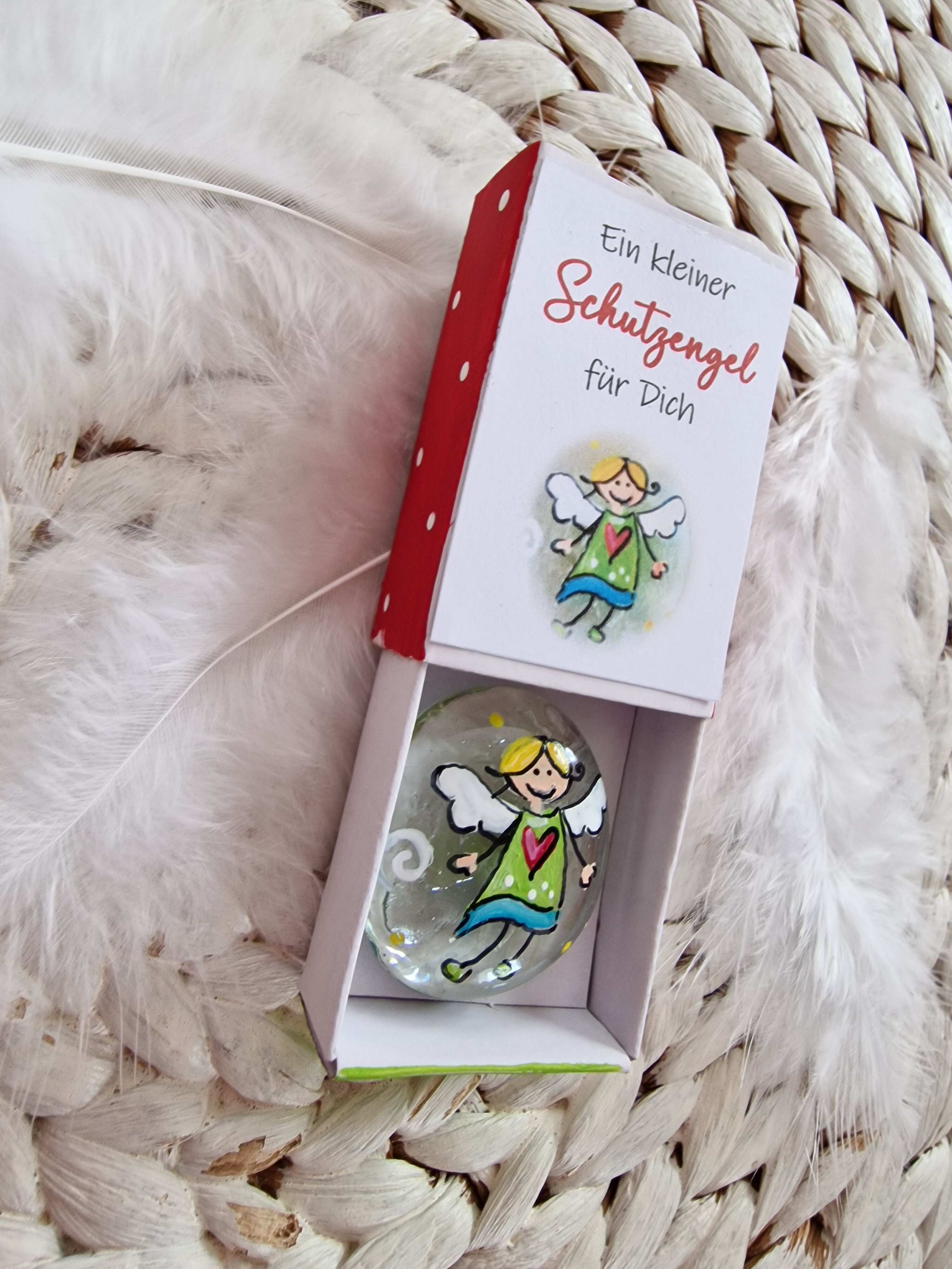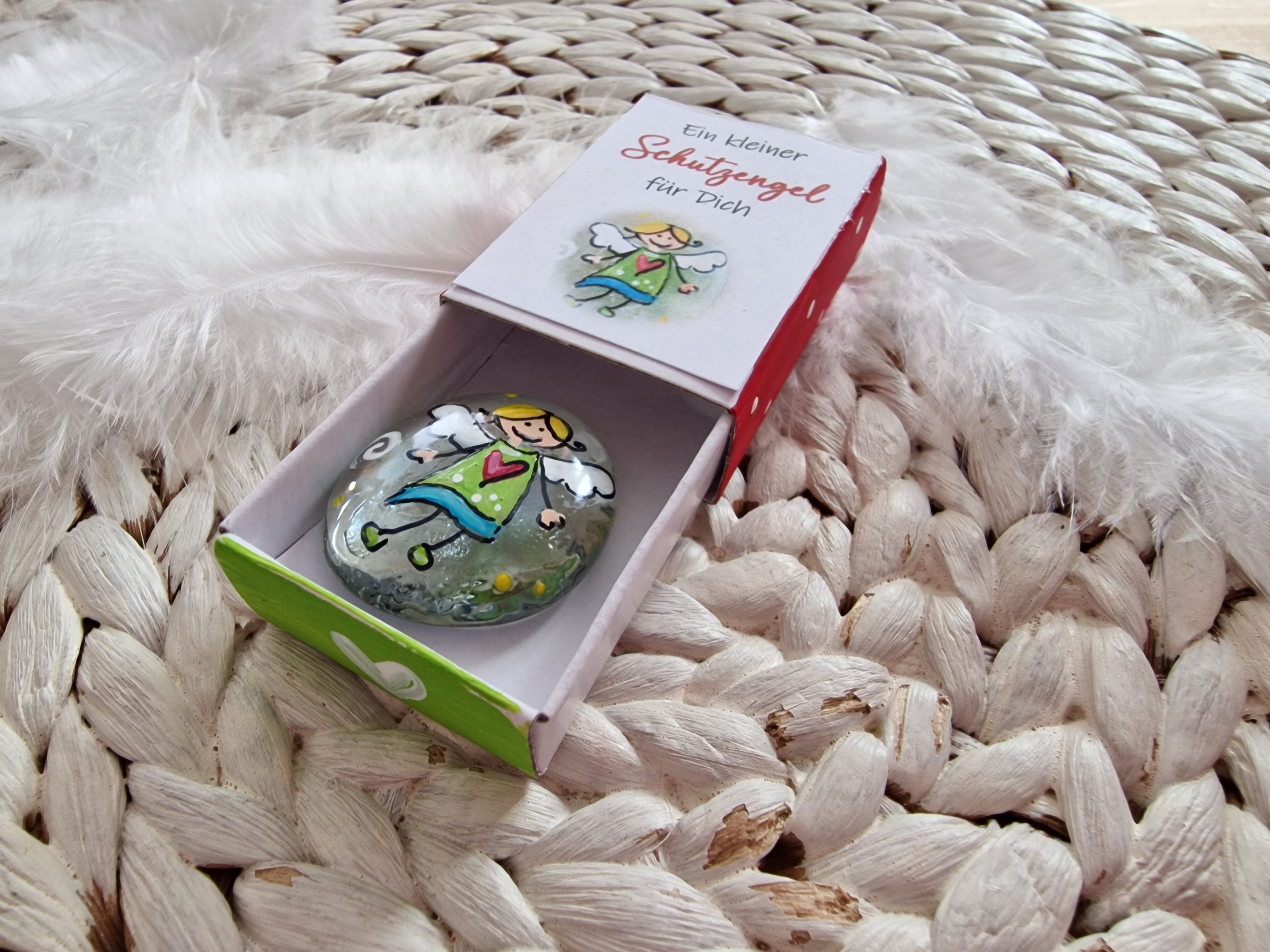 Glasstein * 2,8 cm * Schutzengel * bemalt * in einer Schachtel * Grün-Türkis