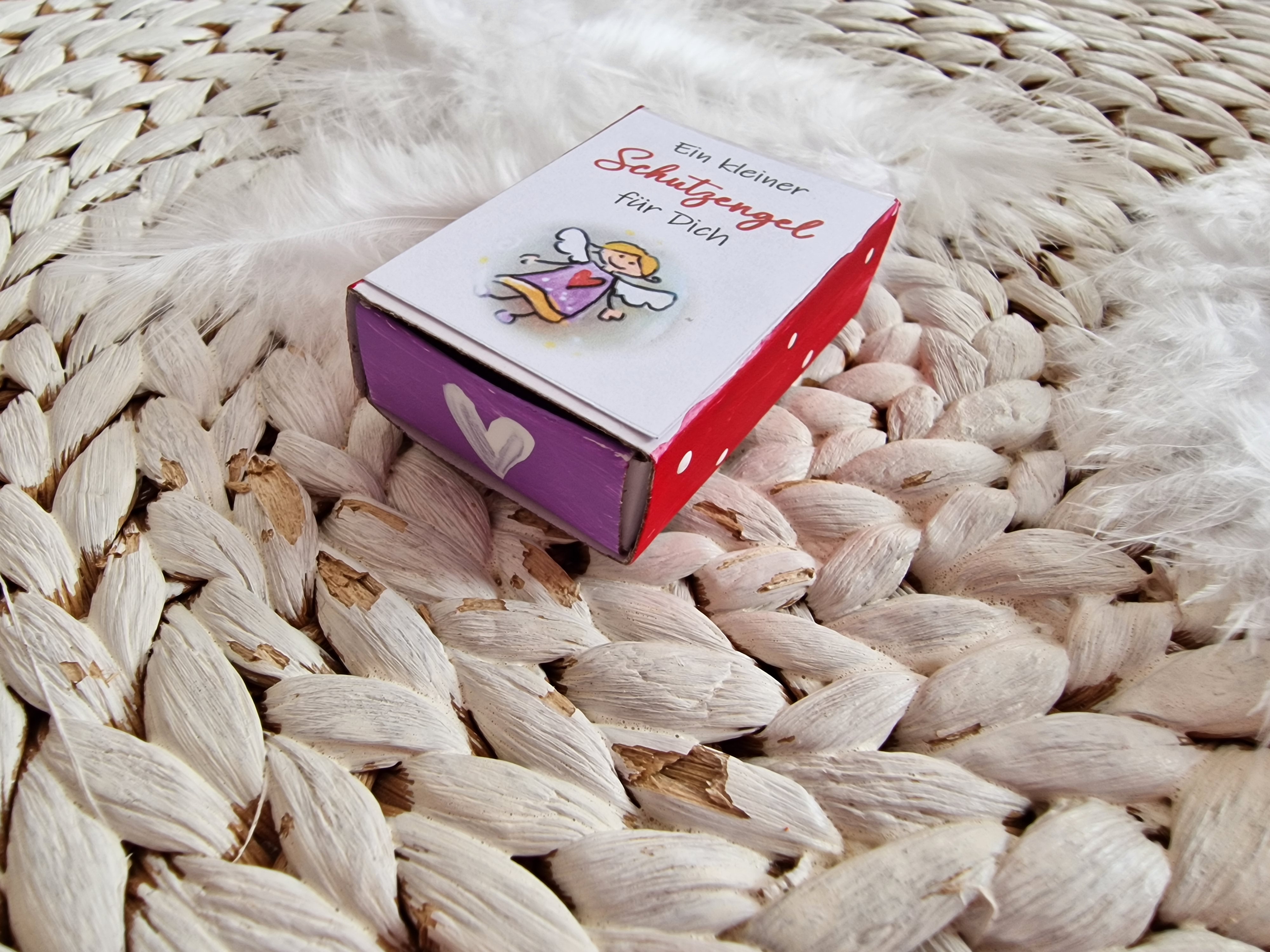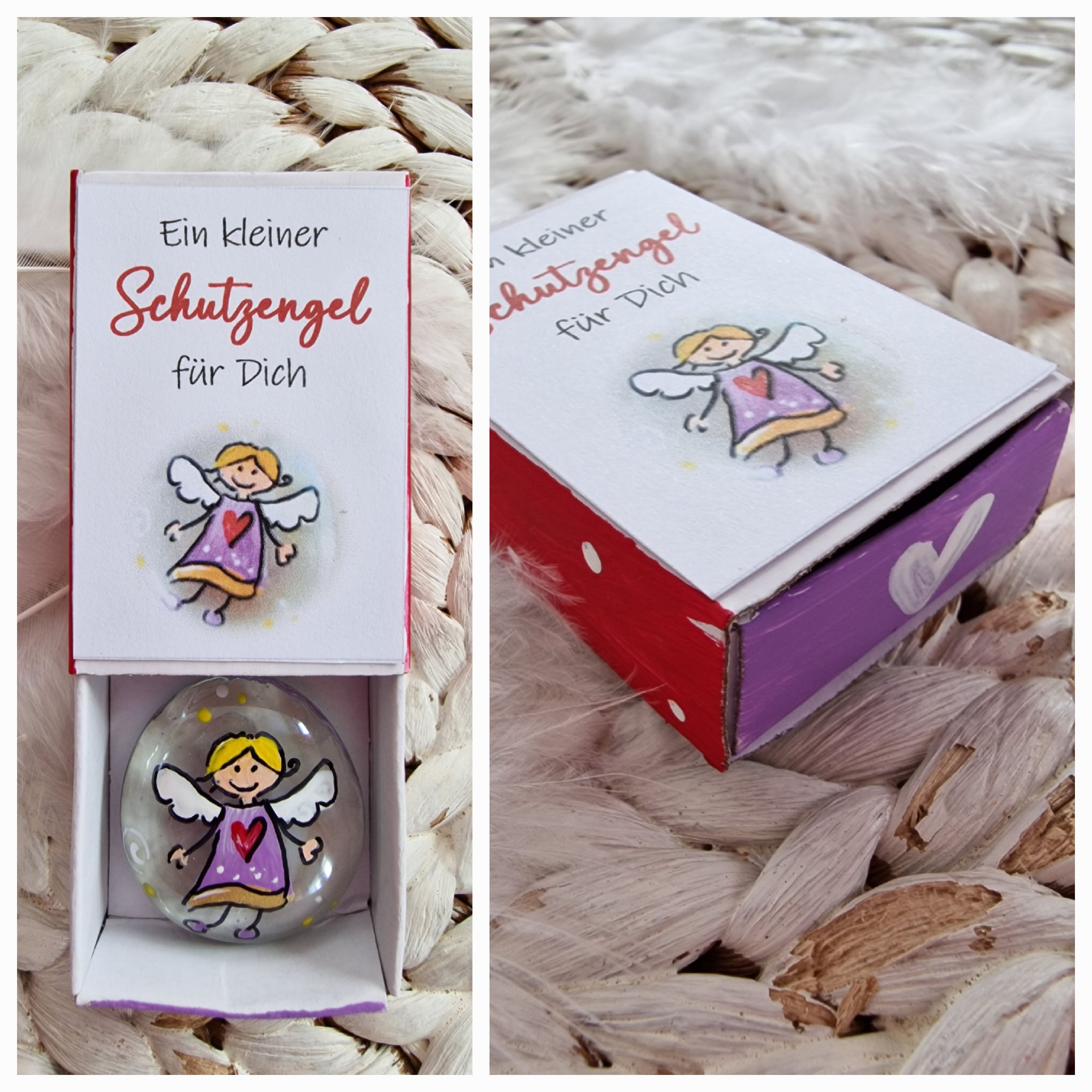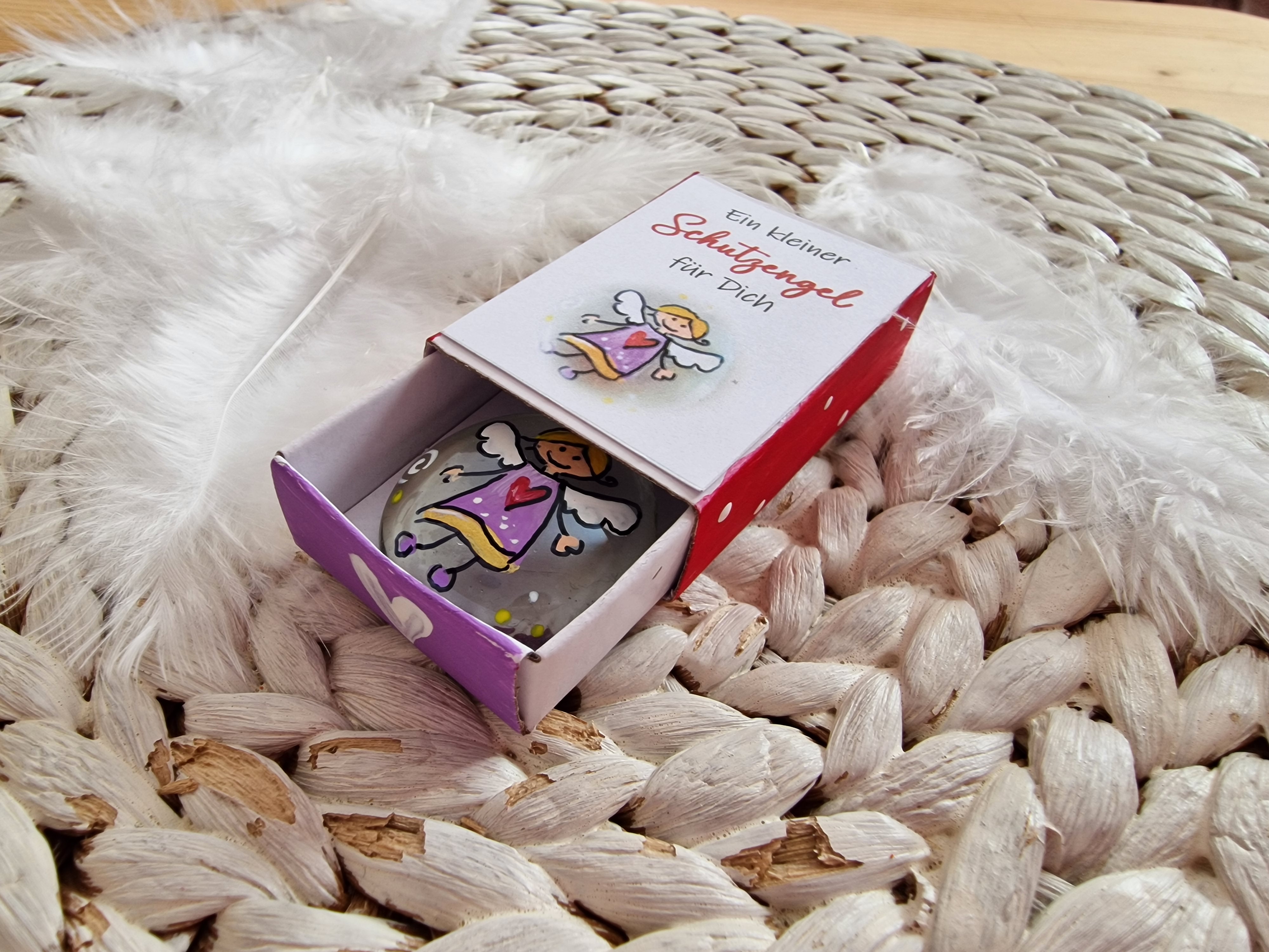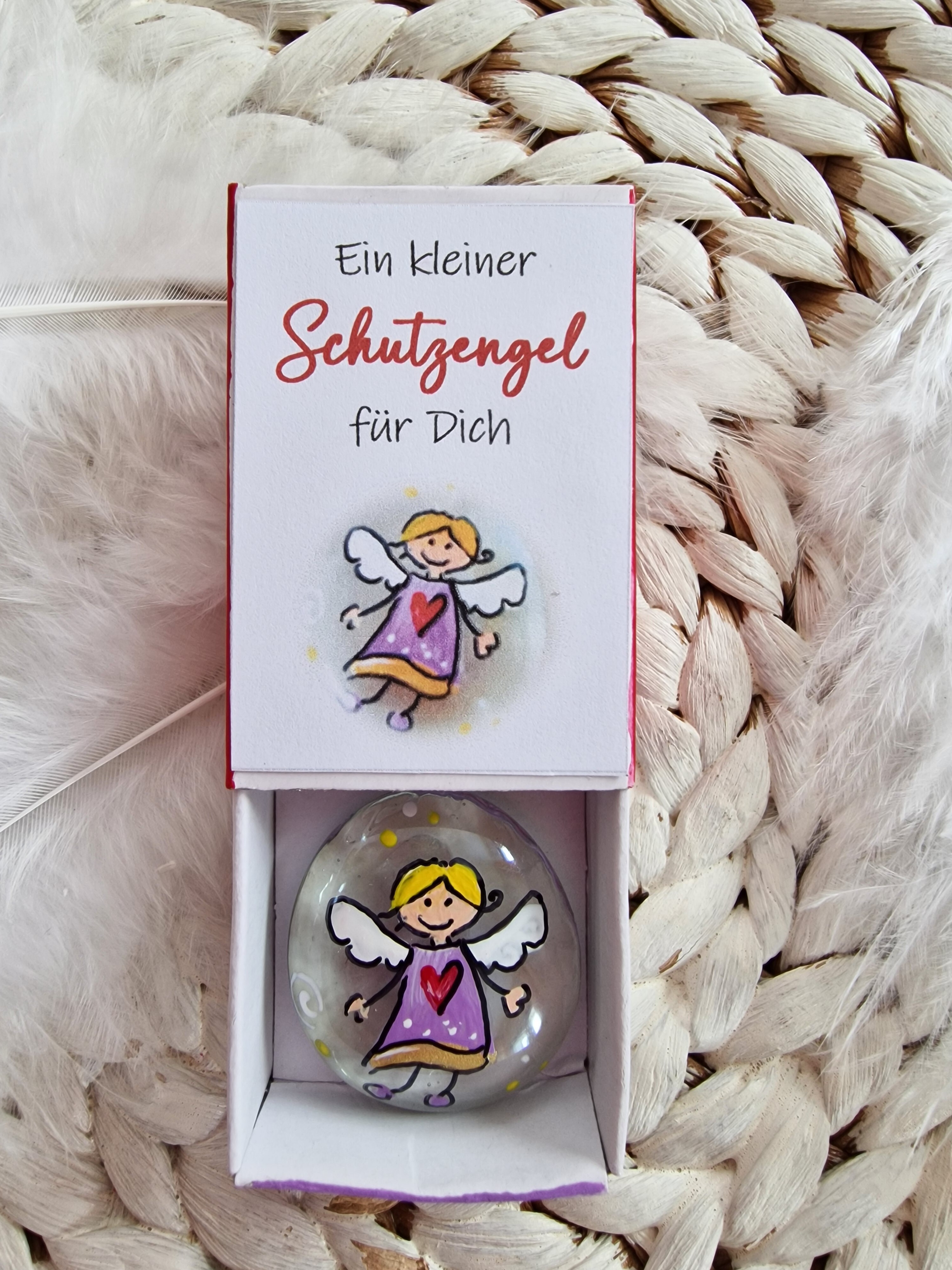Glasstein * 2,8 cm * Schutzengel * bemalt * in einer Schachtel * Lila-Gold
