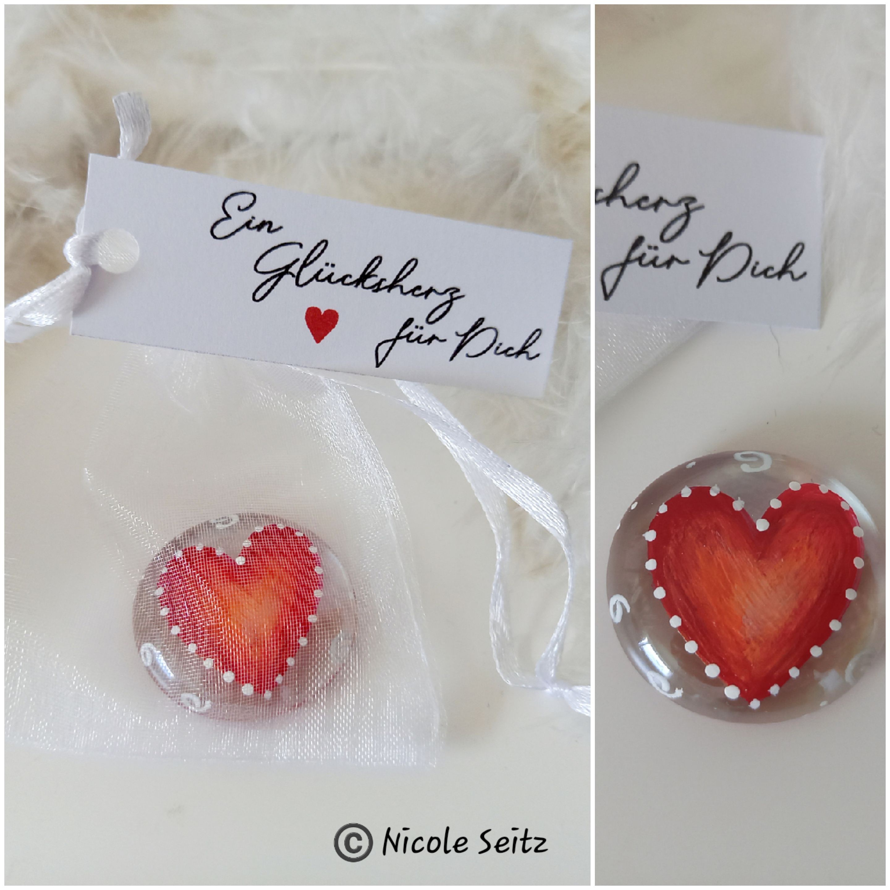 Glasstein * 2,8 cm * Glücksherz * bemalt * in einem Organzabeutel * Rot-Orange