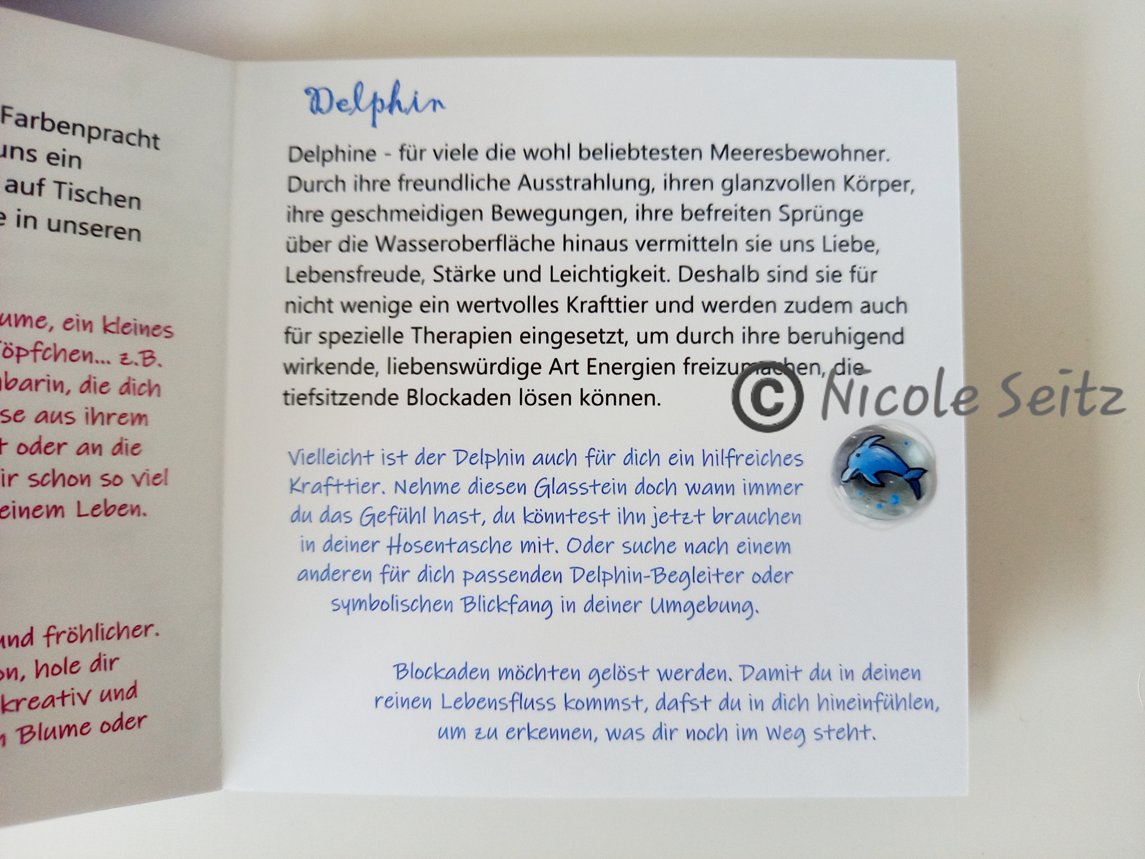 mit einem kleinem Buch, in dem die Beschreibungen zu den einzelnen Glassteinen stehen.