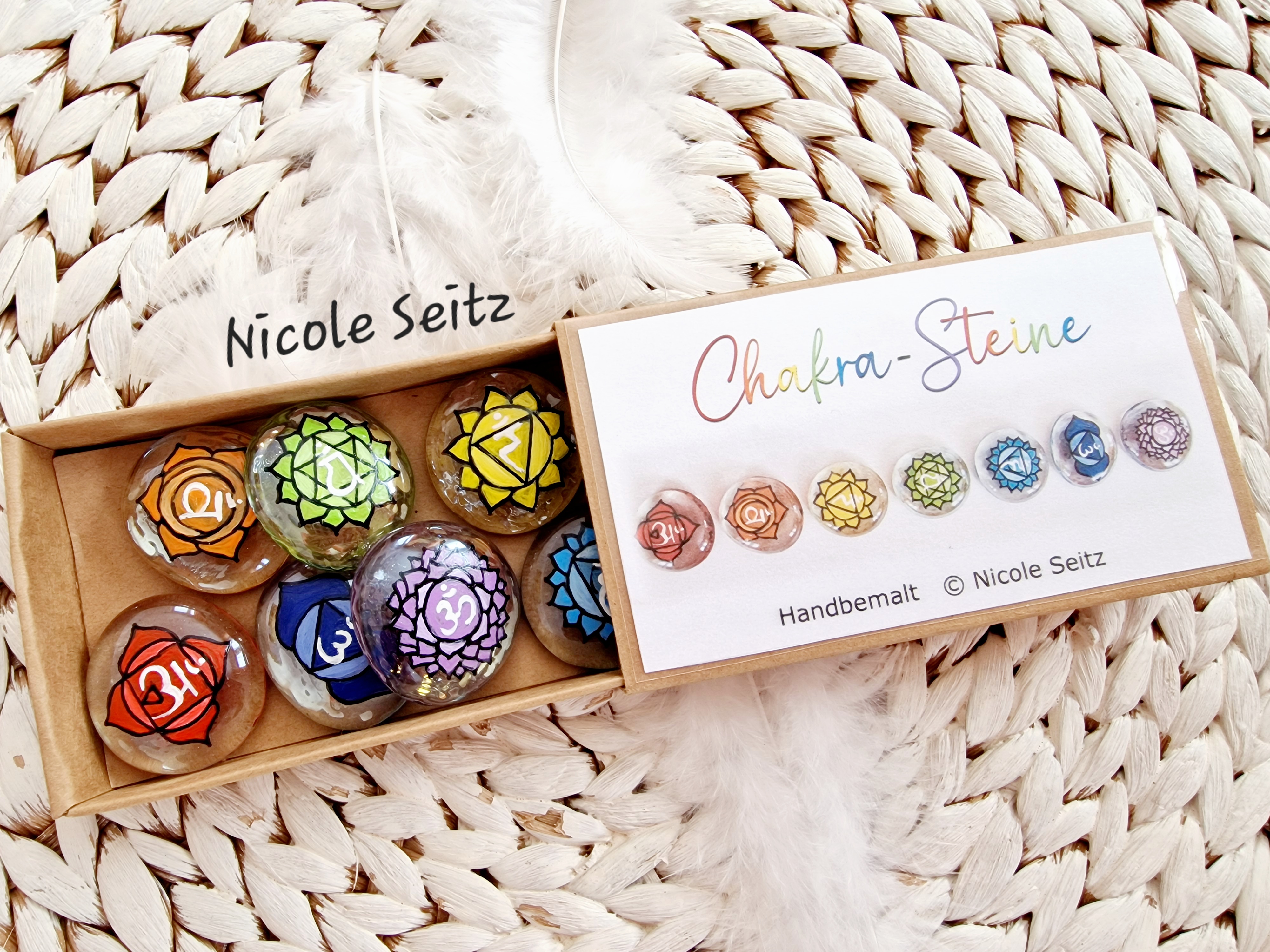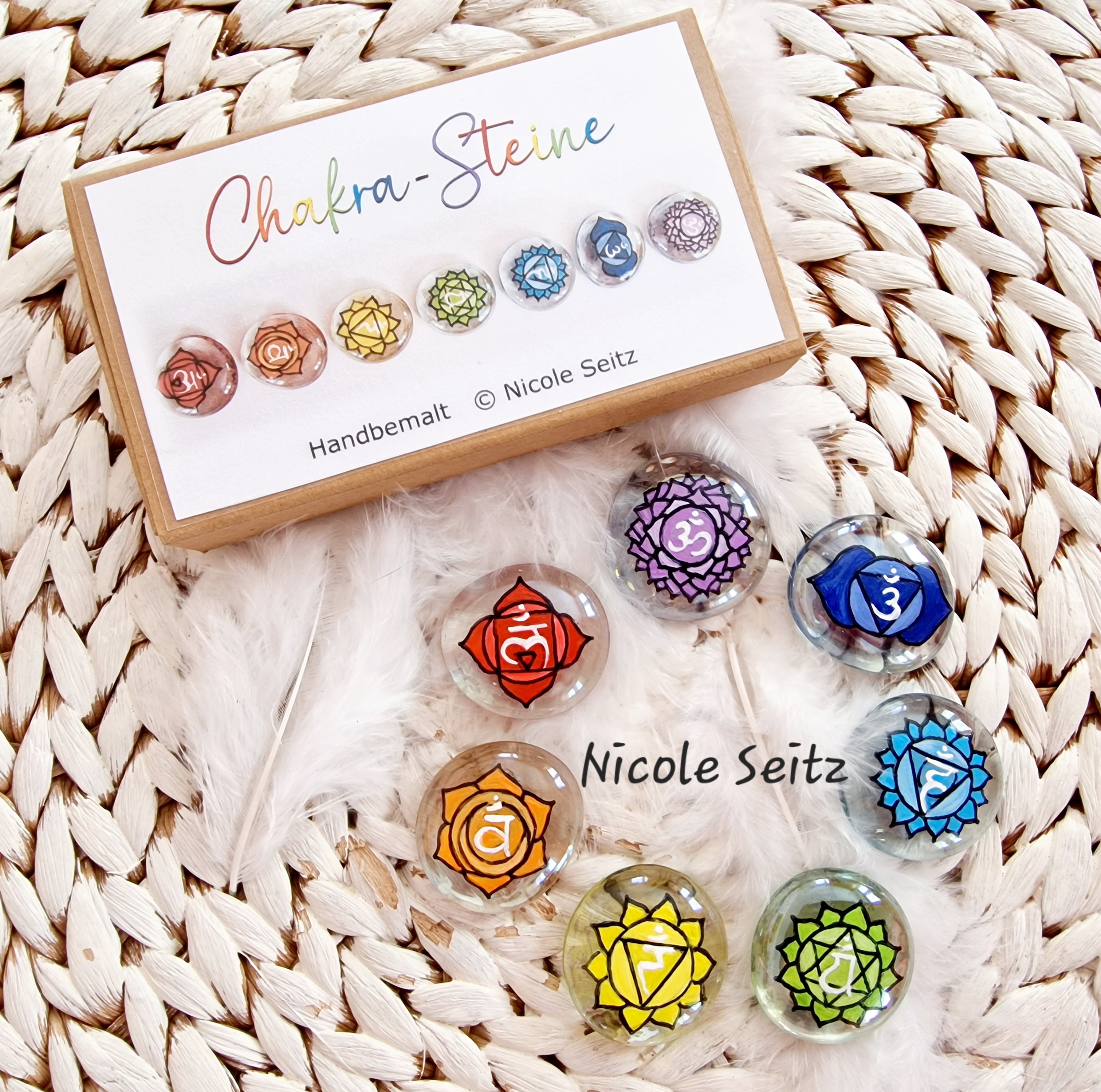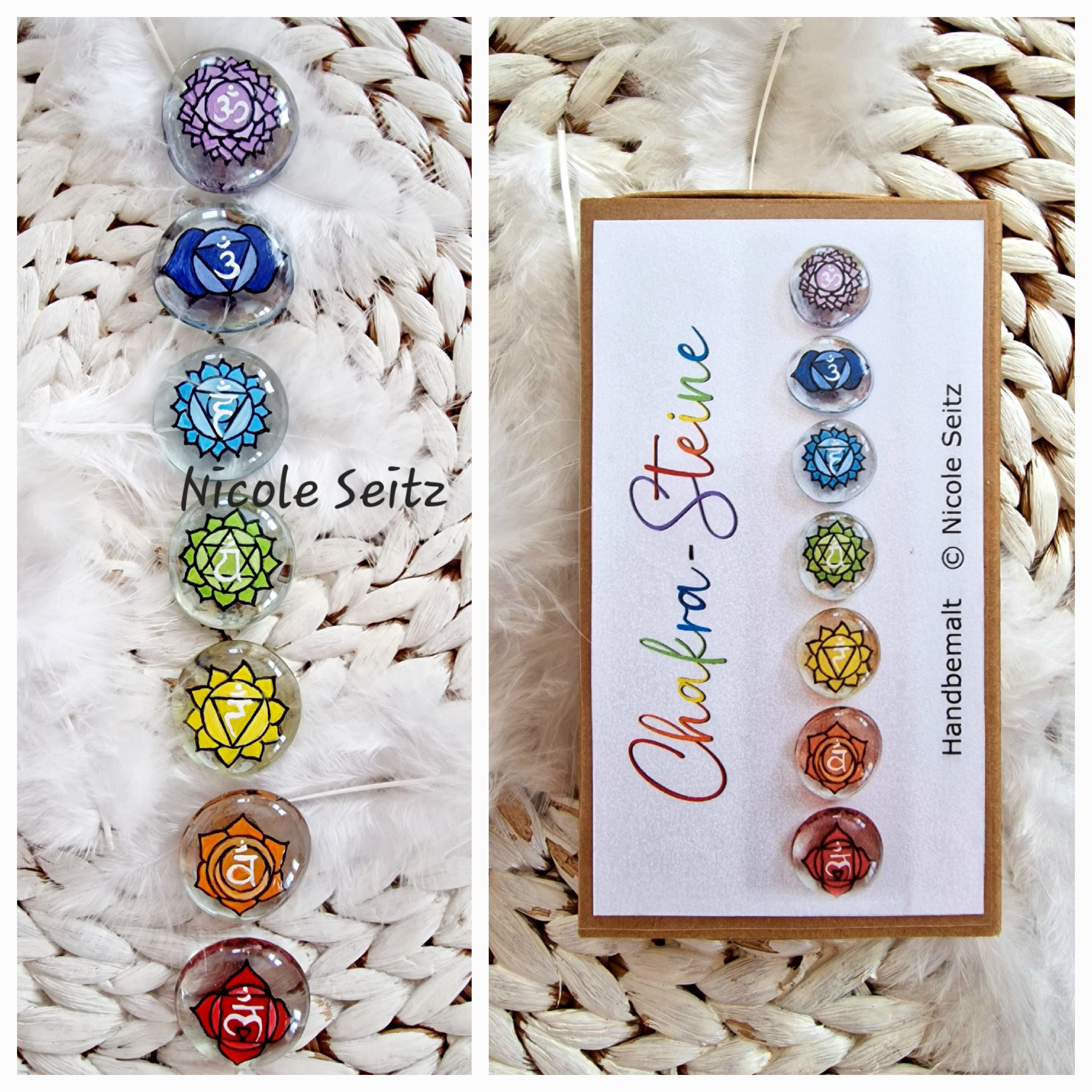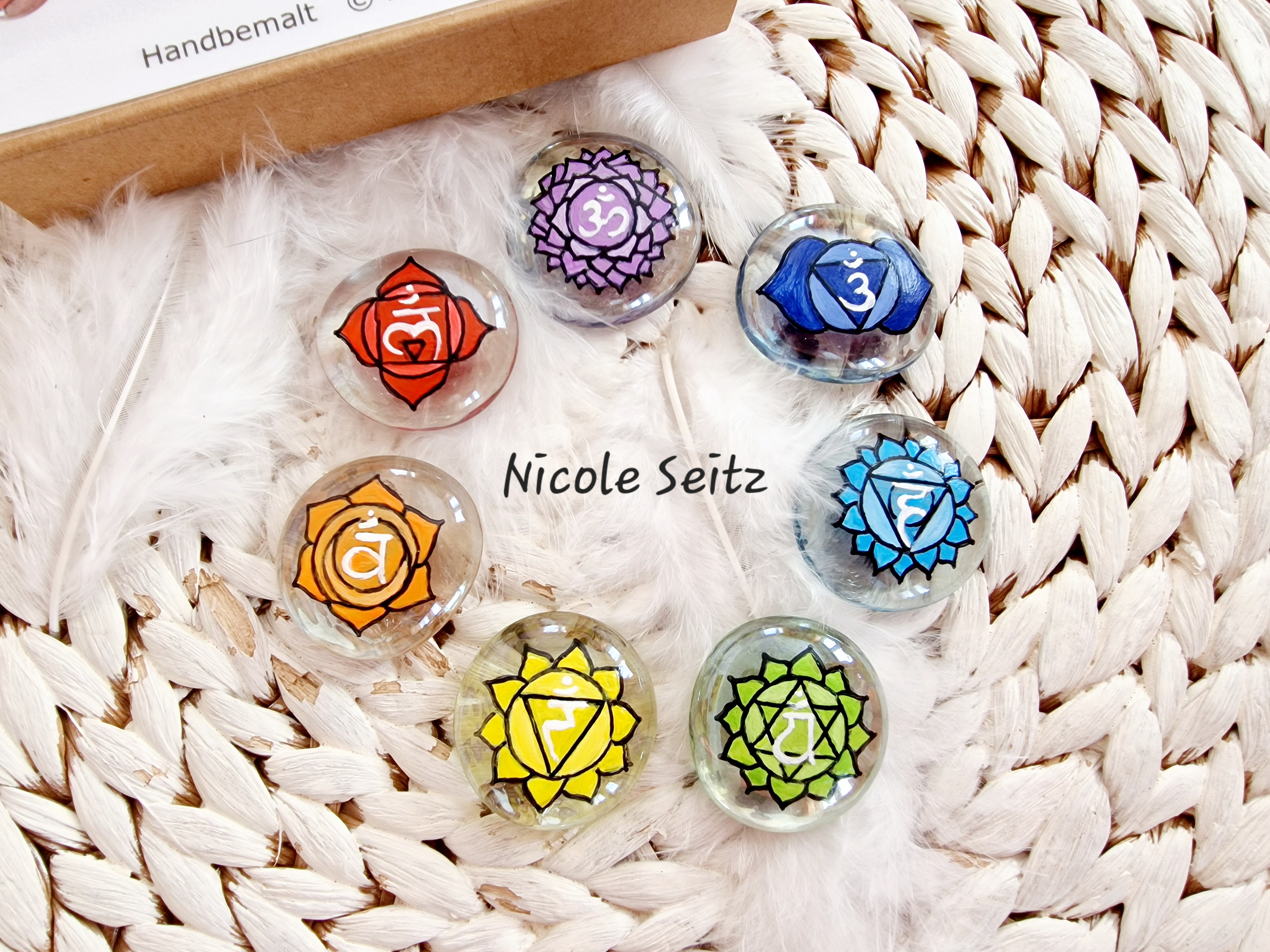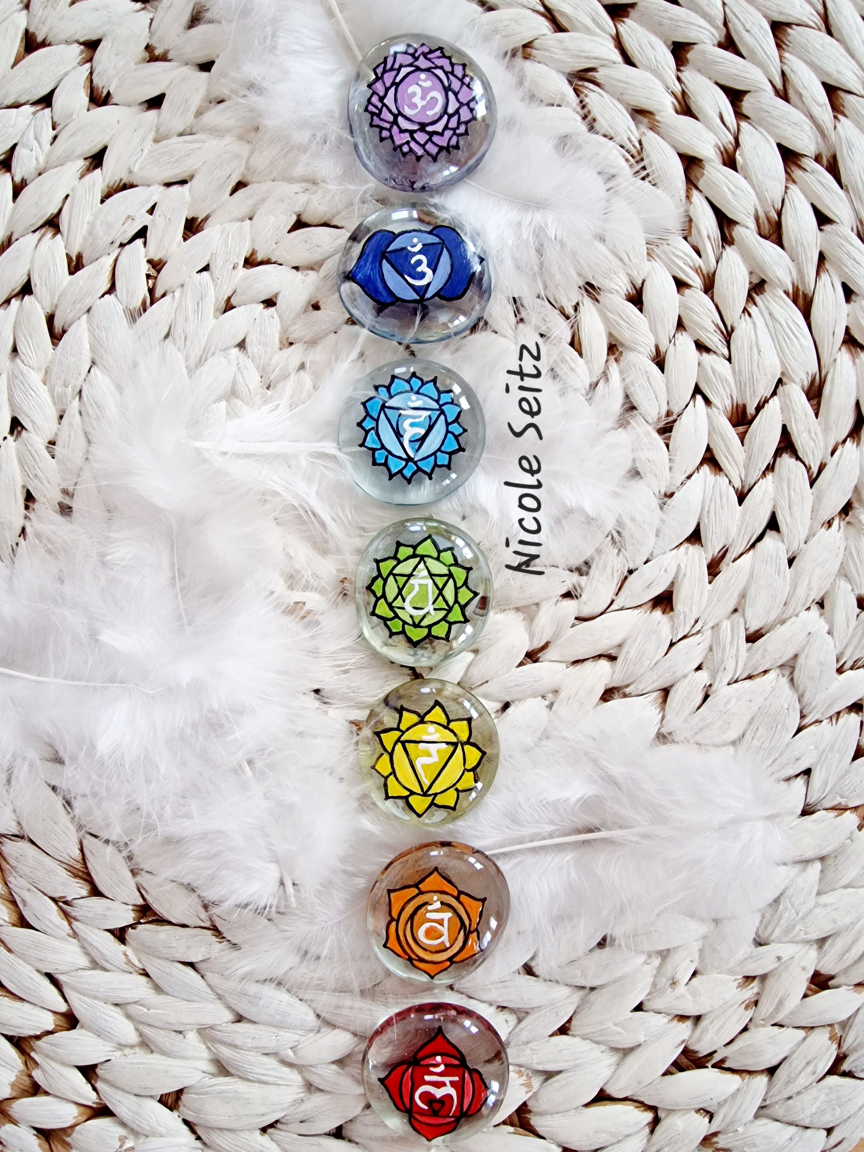 Chakra-Steine * Glasnuggets handbemalt * ca. 3 cm