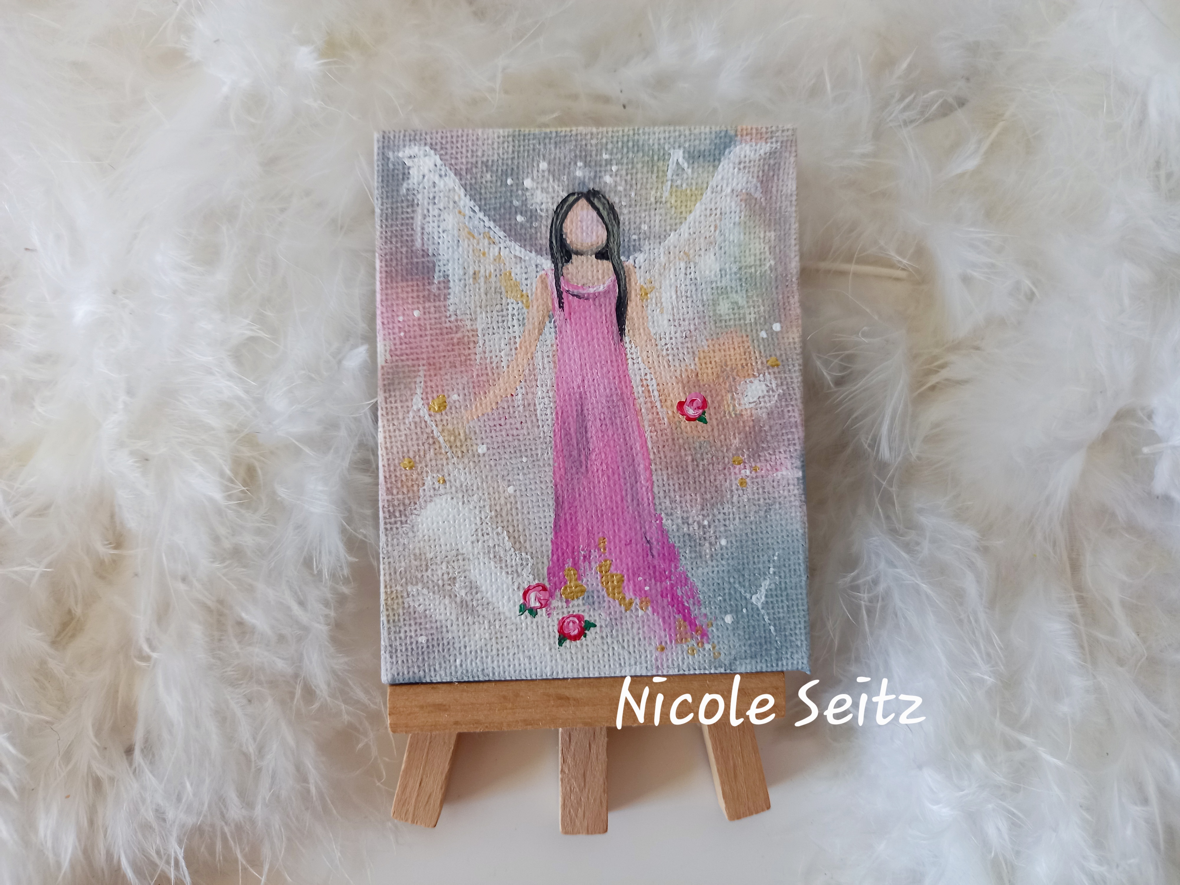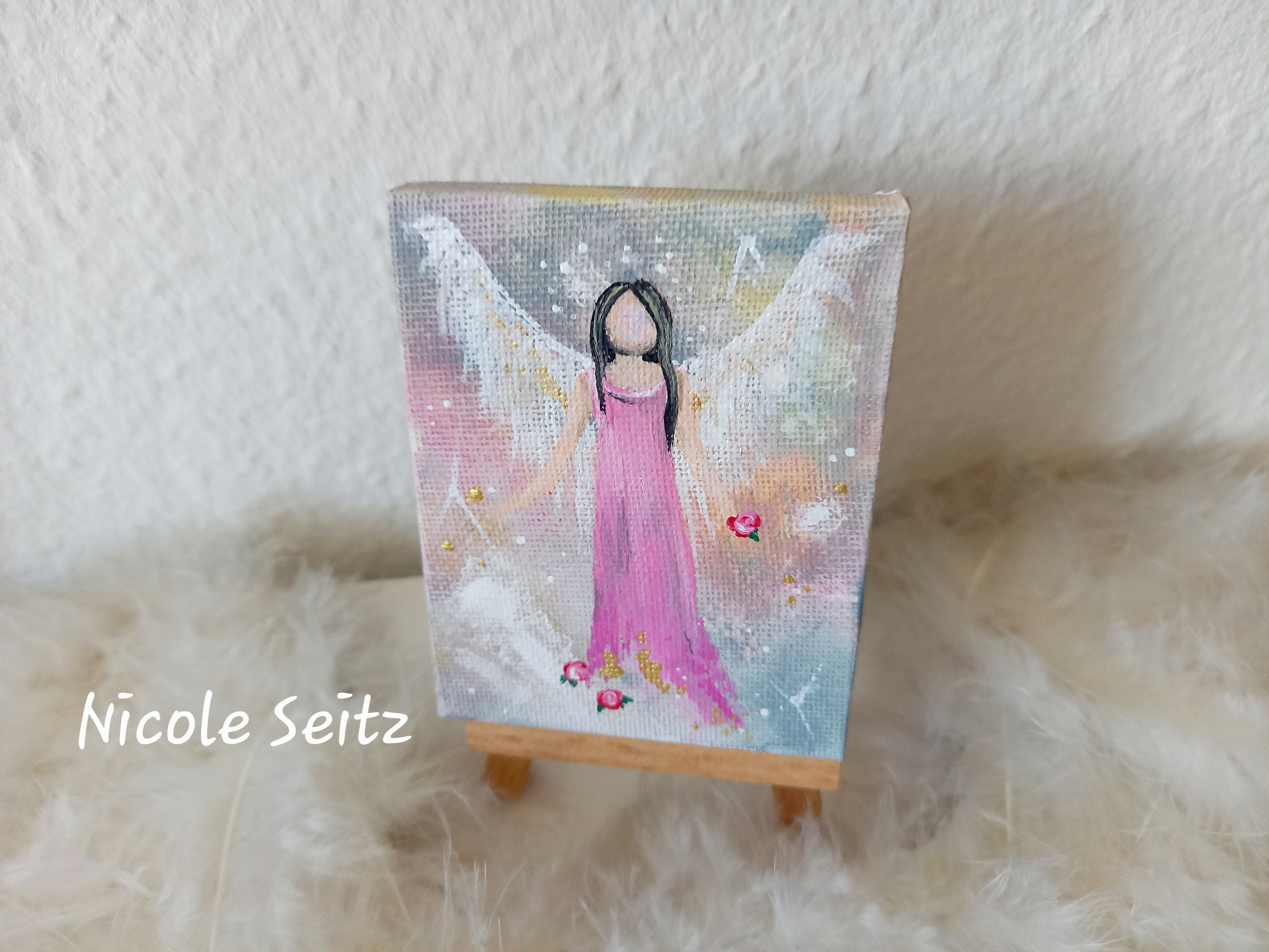 Engel auf einer kleinen Leinwand mit Staffelei