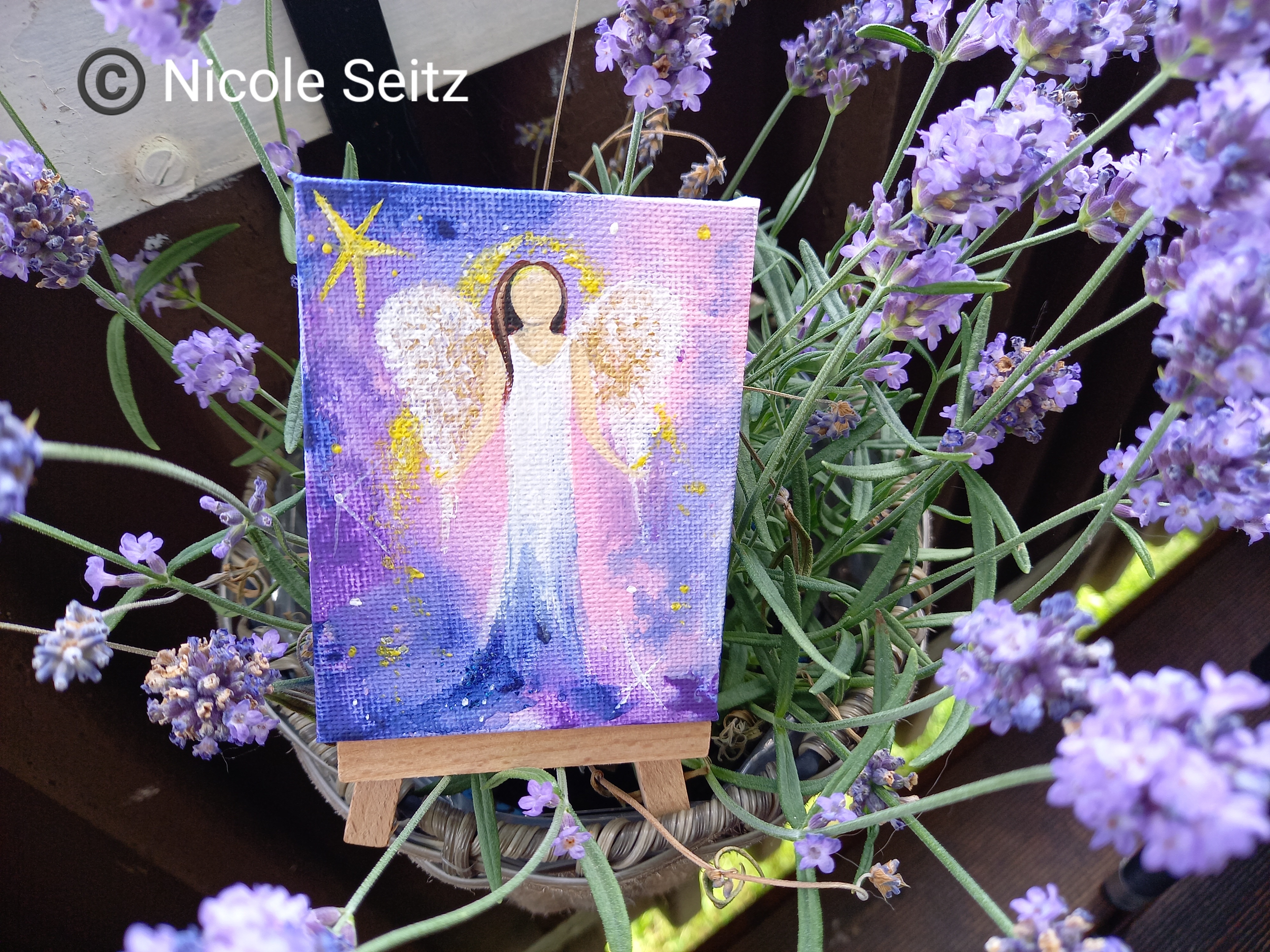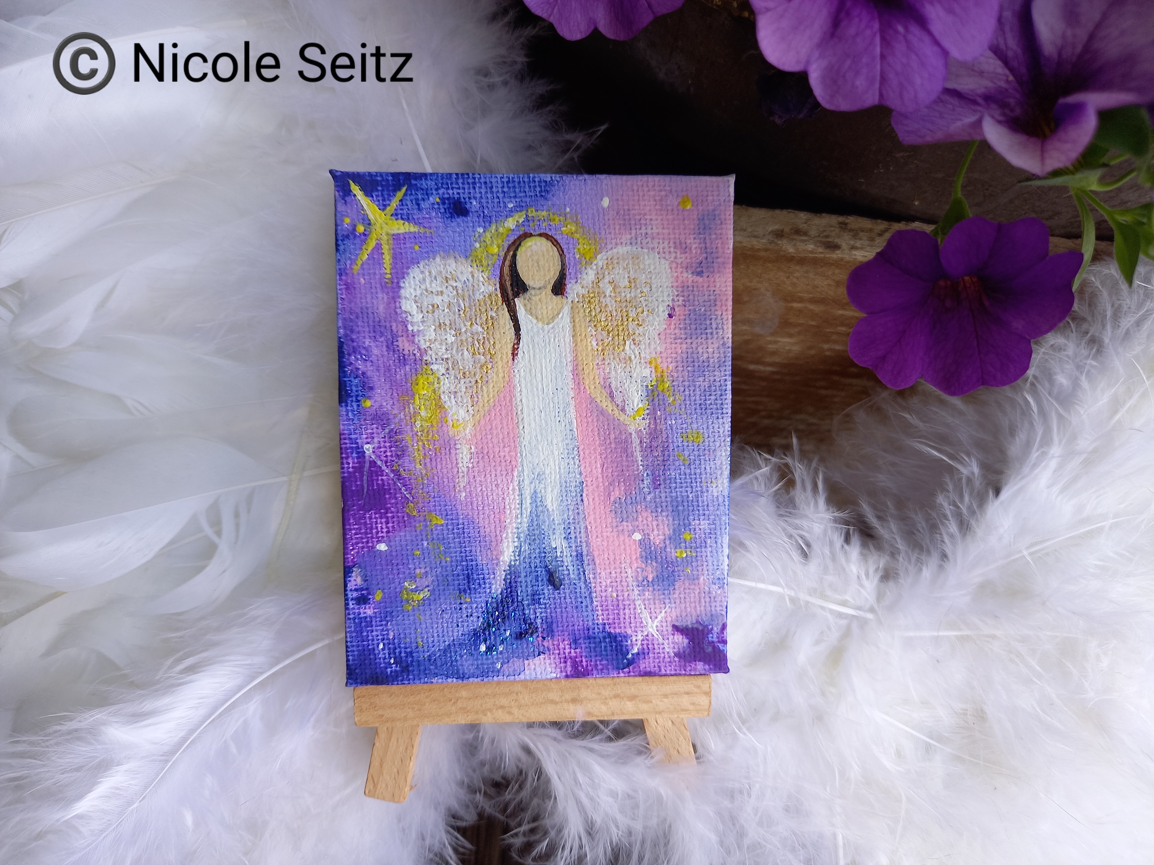 Rosenengel auf einer kleinen Leinwand mit Staffelei
