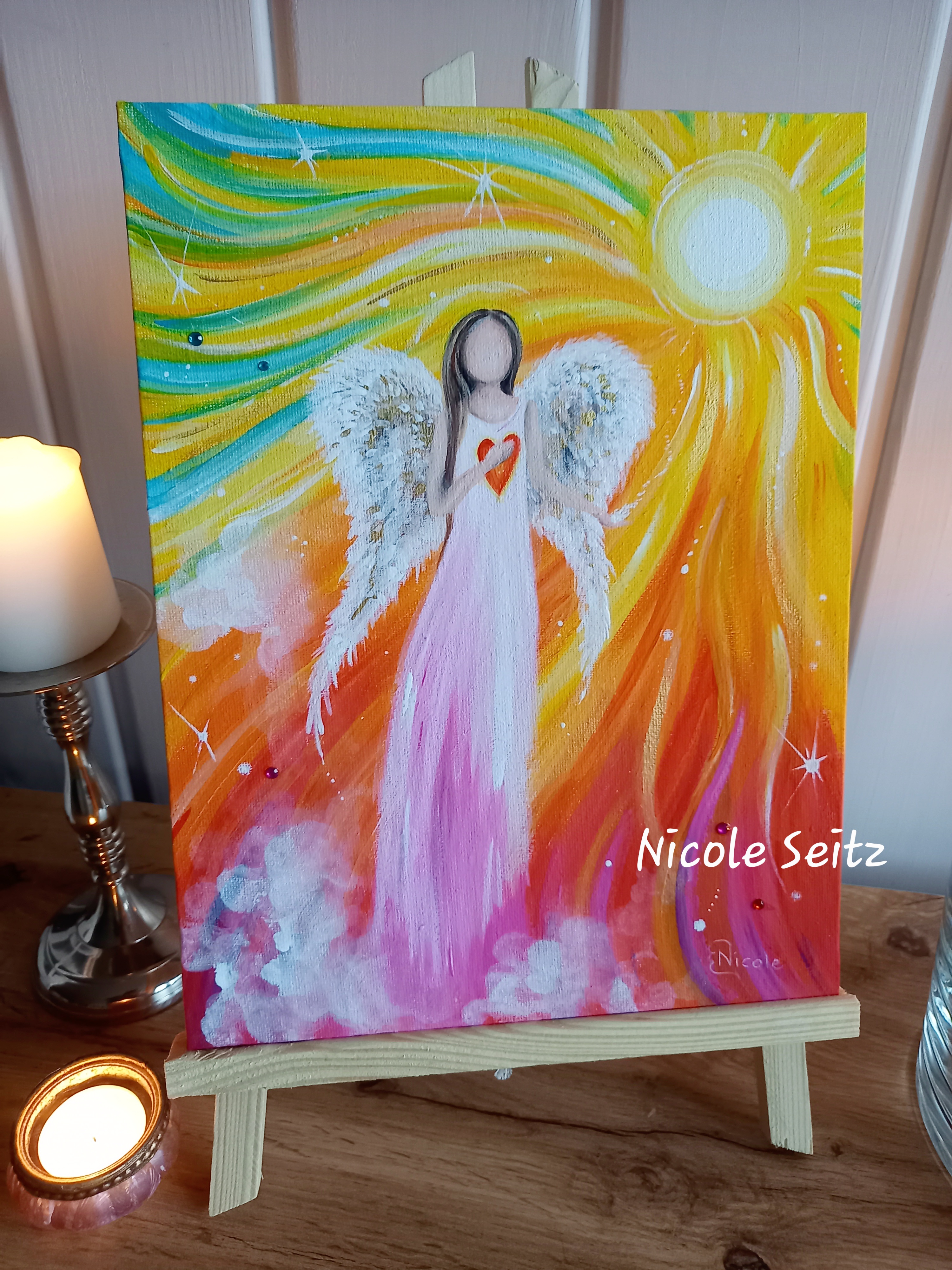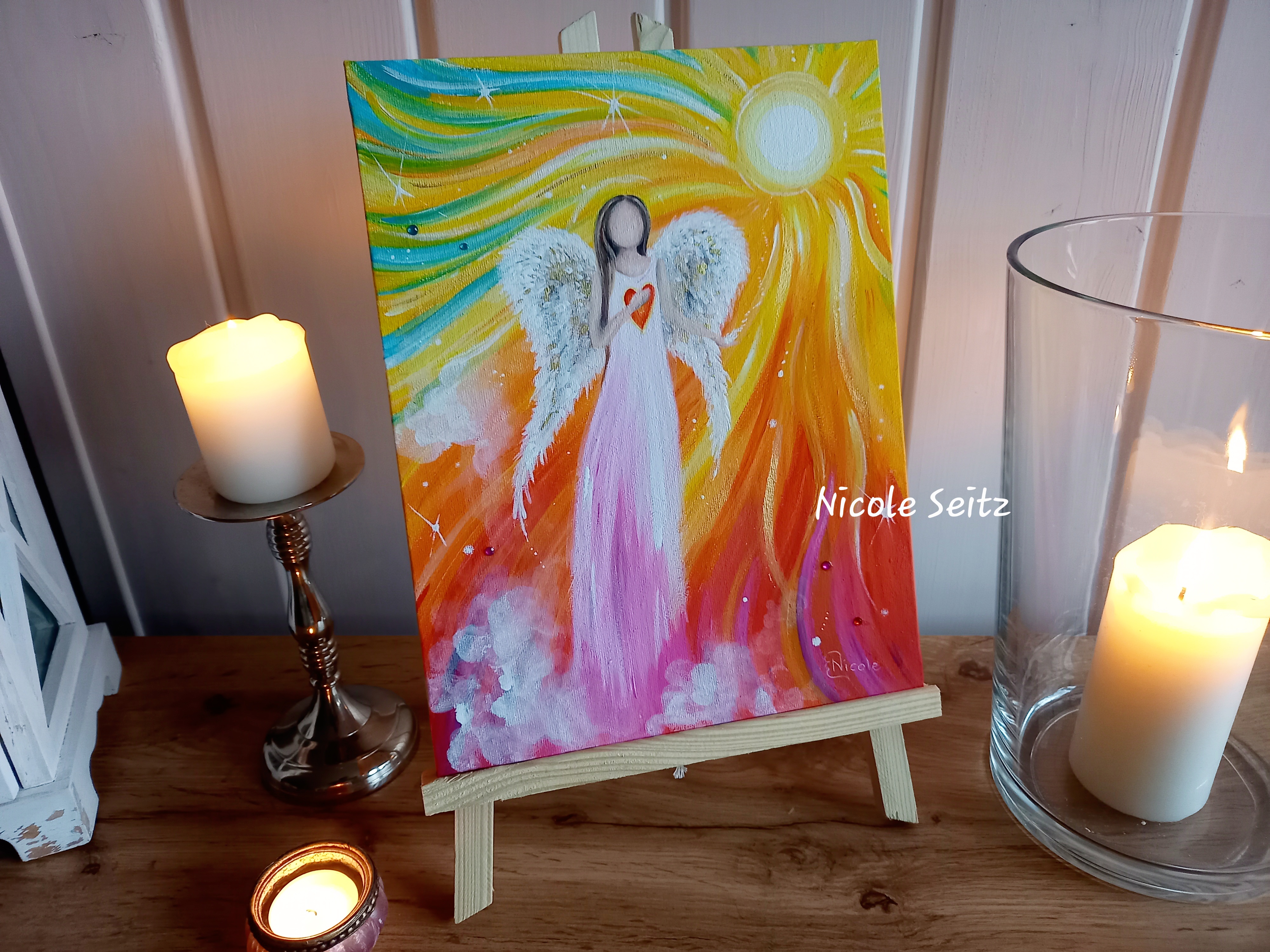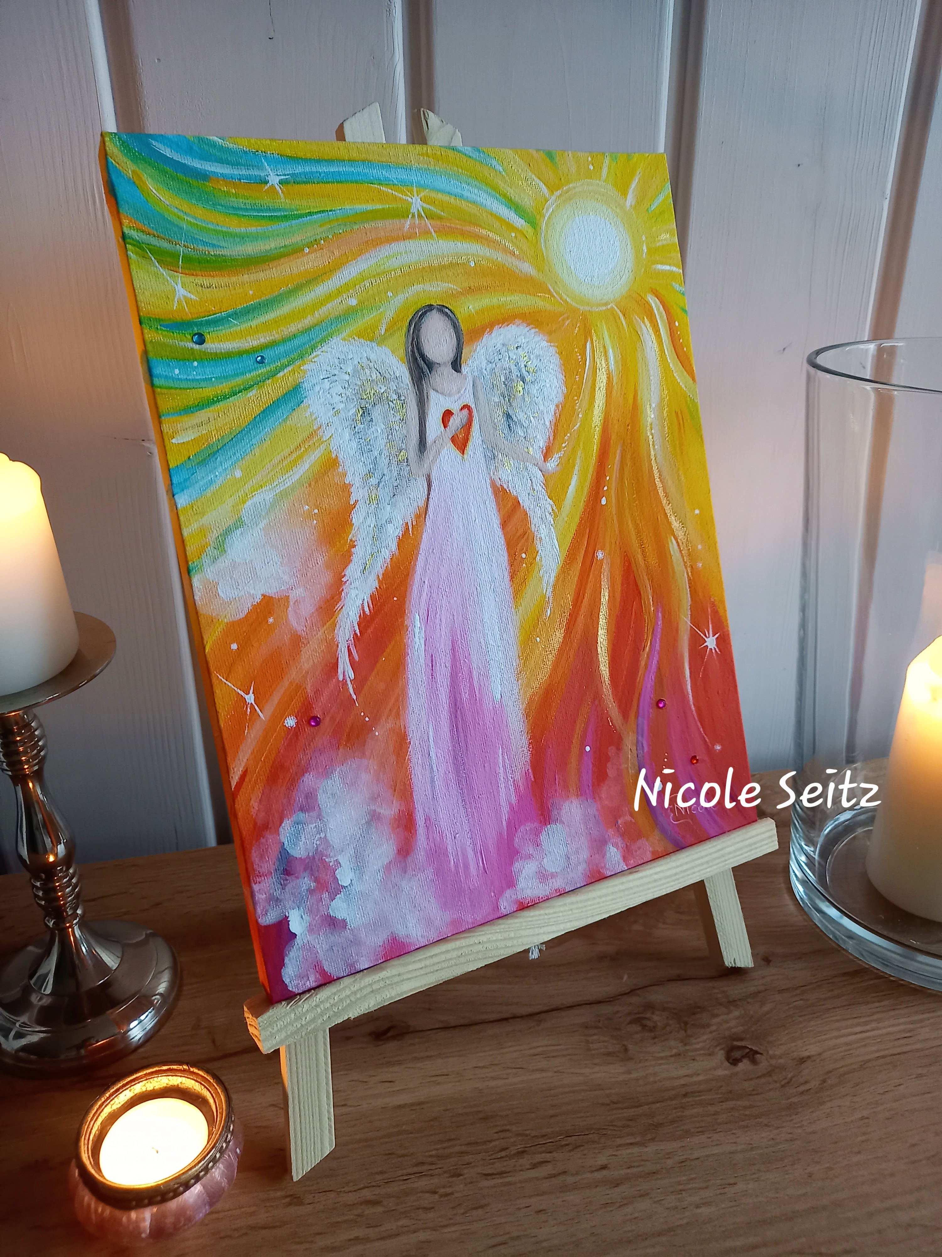 Eigenes Leinwandbild "Engel der Herzensliebe" auf Staffelei