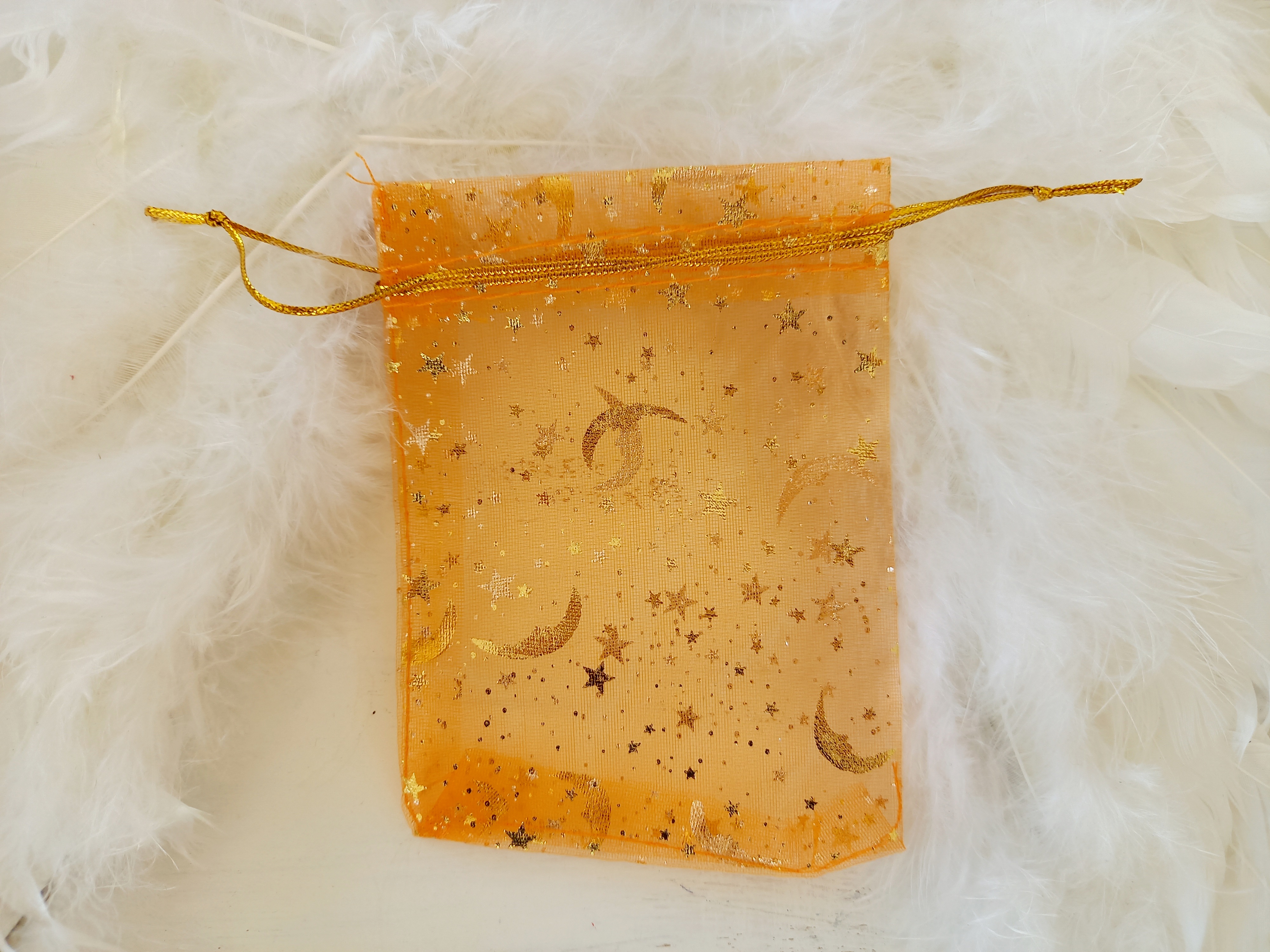 Organzabeutel * Orange * Mond, Sterne * 8,5 x 12 cm