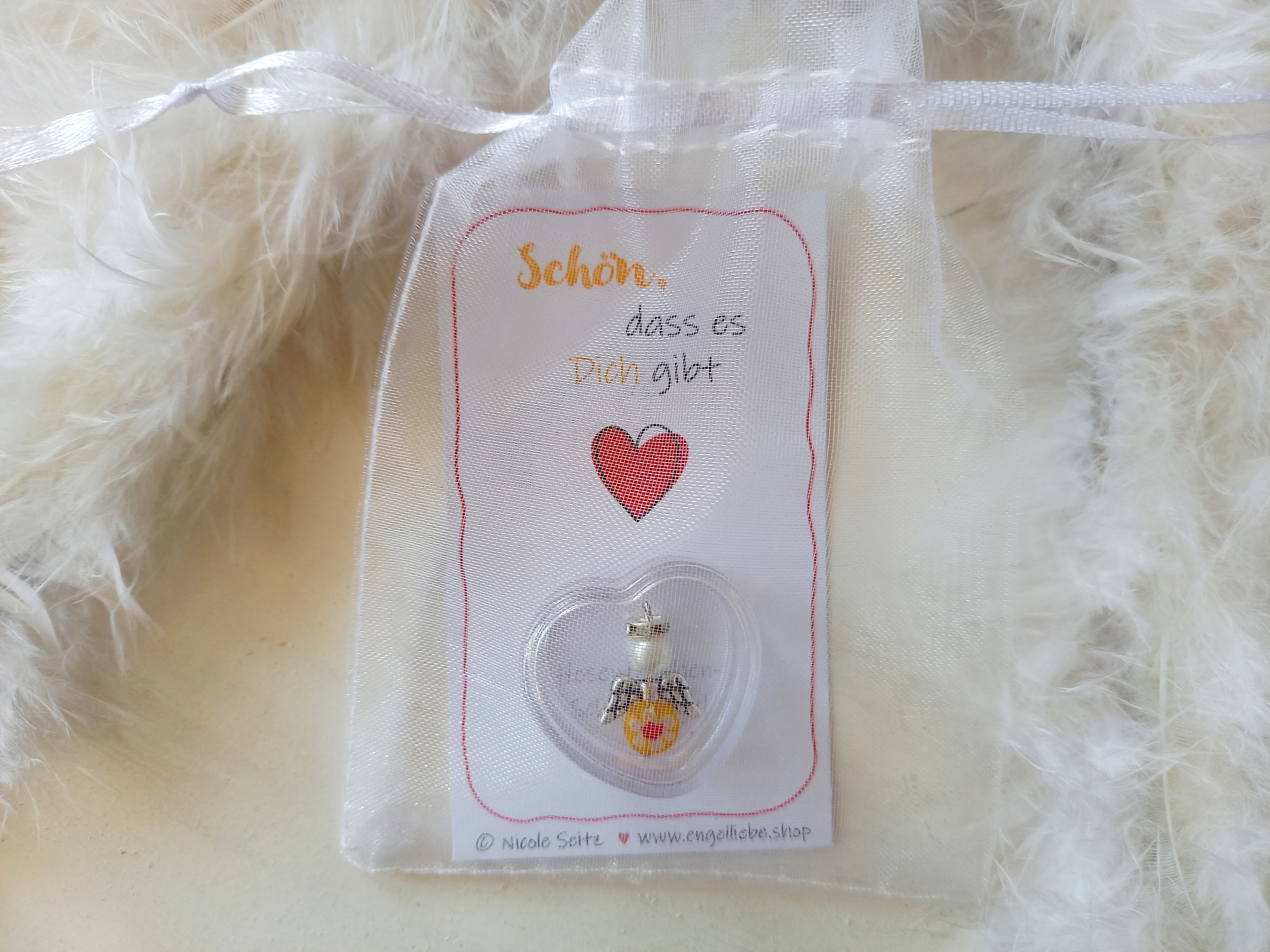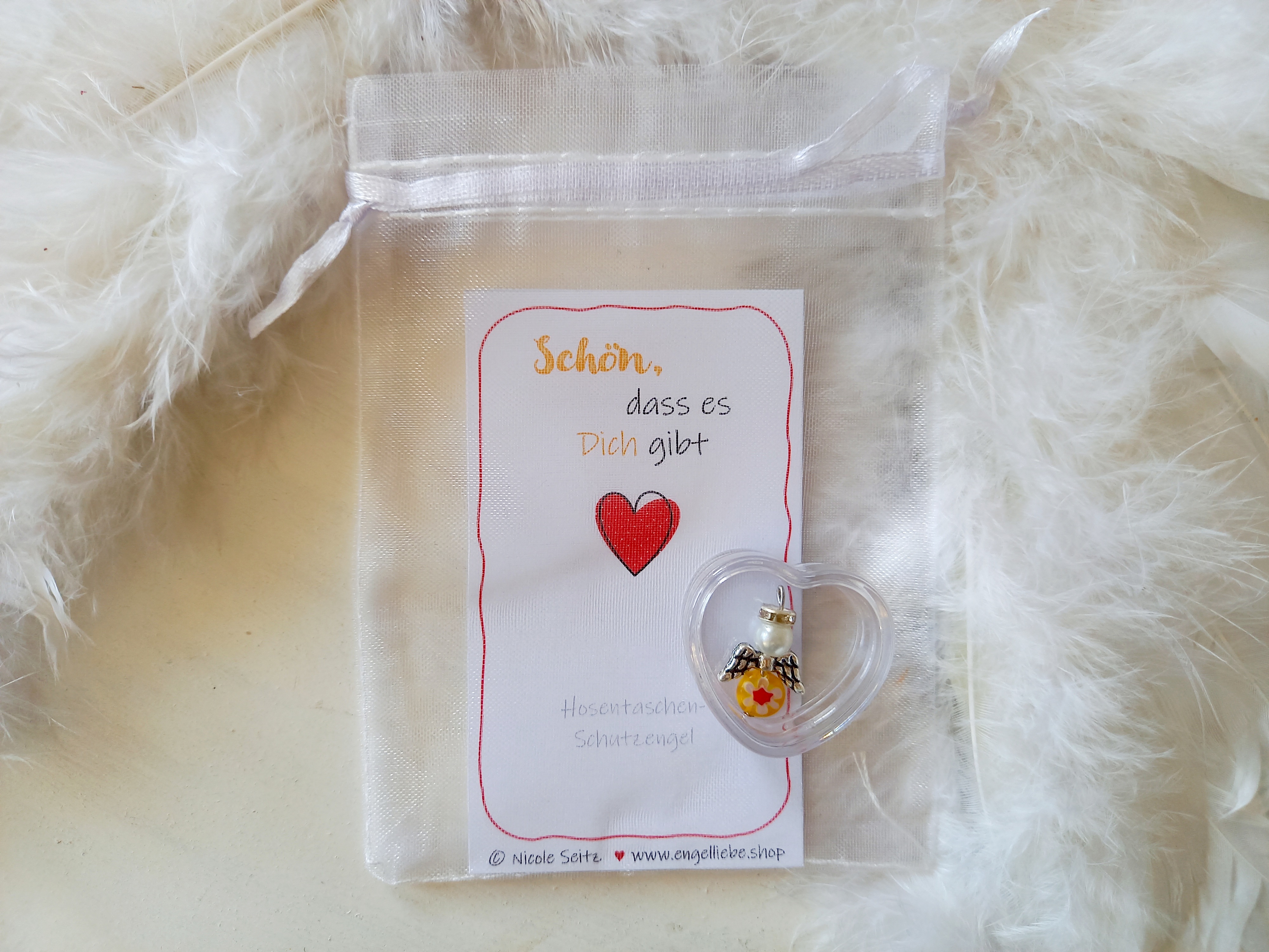 Ein Perlenengel in einer kleinen Herzdose