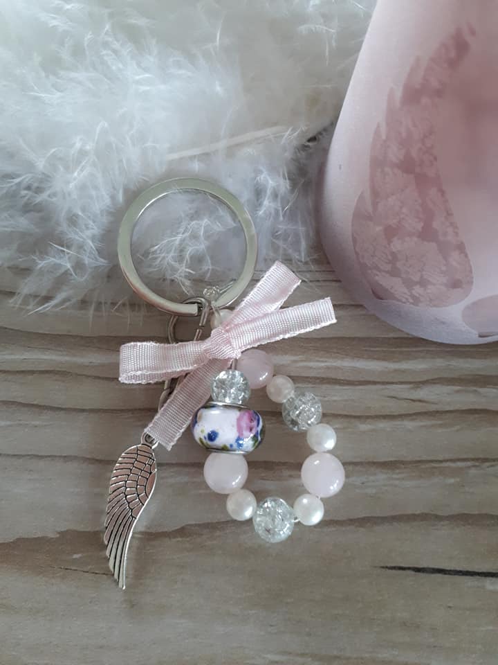 Schlüsselanhänger * Engelflügel * Rosenquarz