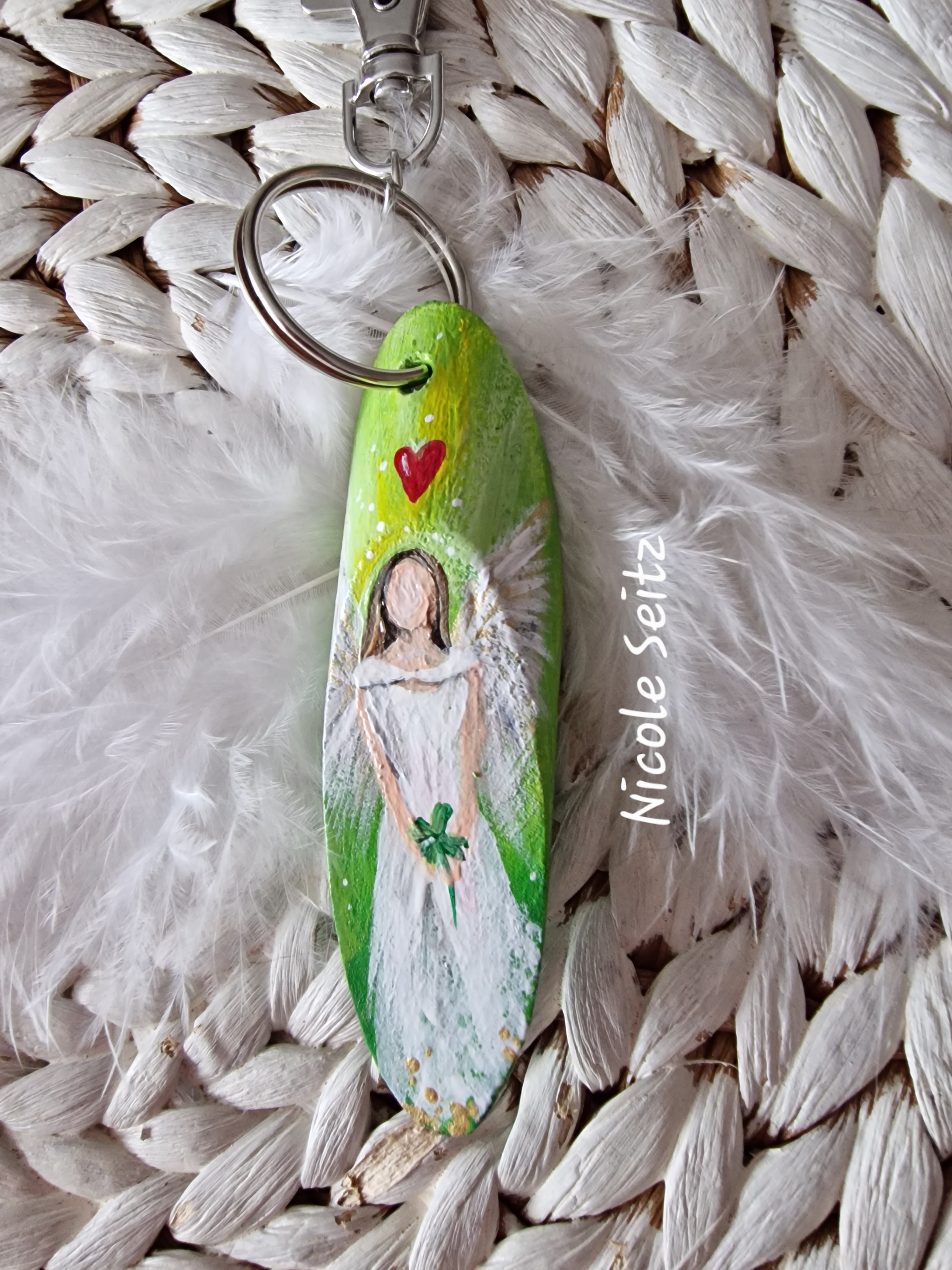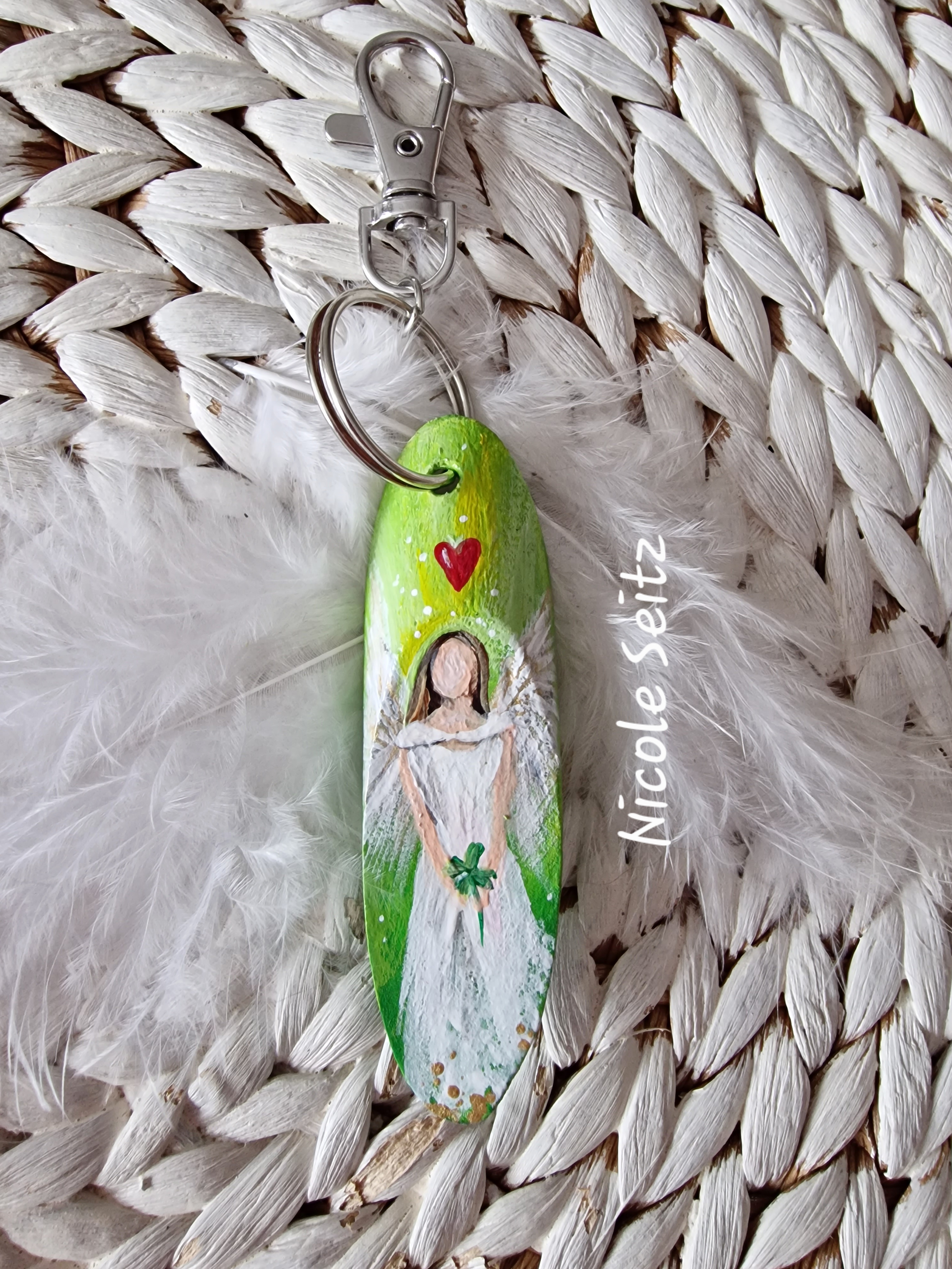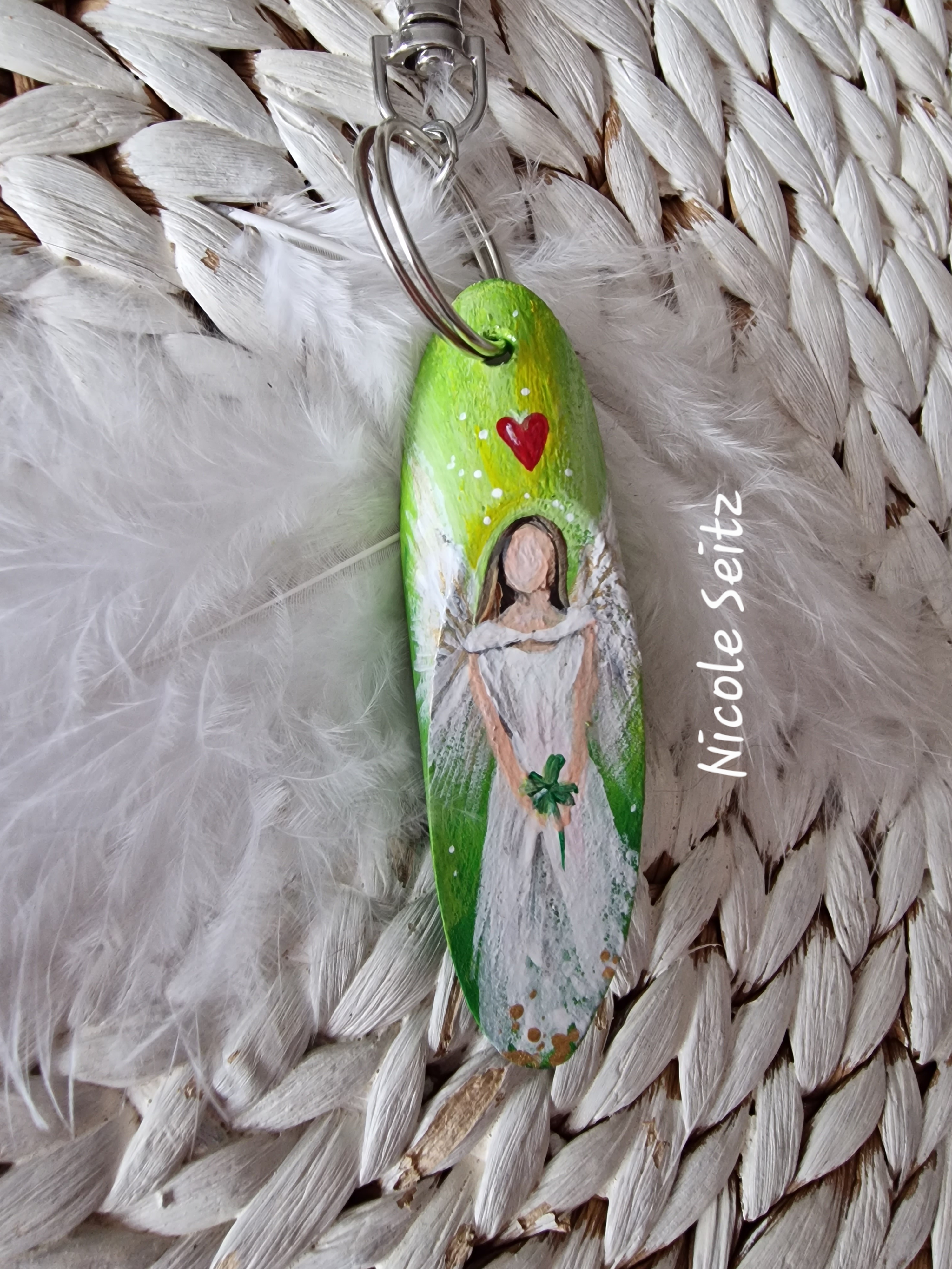 Schlüssel-/Taschenanhänger * Glücksengel * handbemalt * Holz * Grün-Weiß * Herz Kleeblatt