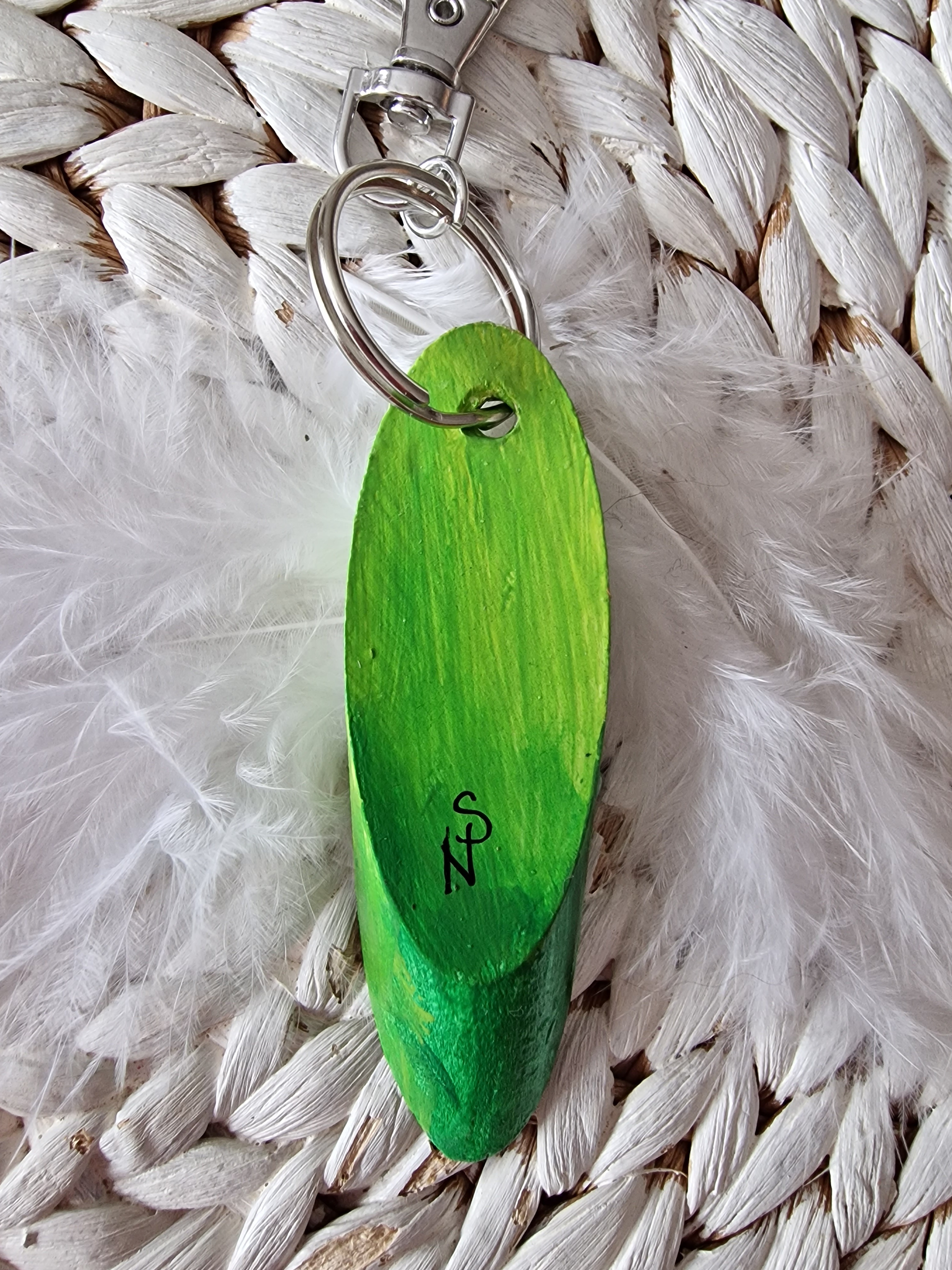 Preview: Schlüssel-/Taschenanhänger * Glücksengel * handbemalt * Holz * Grün-Weiß * Herz Kleeblatt