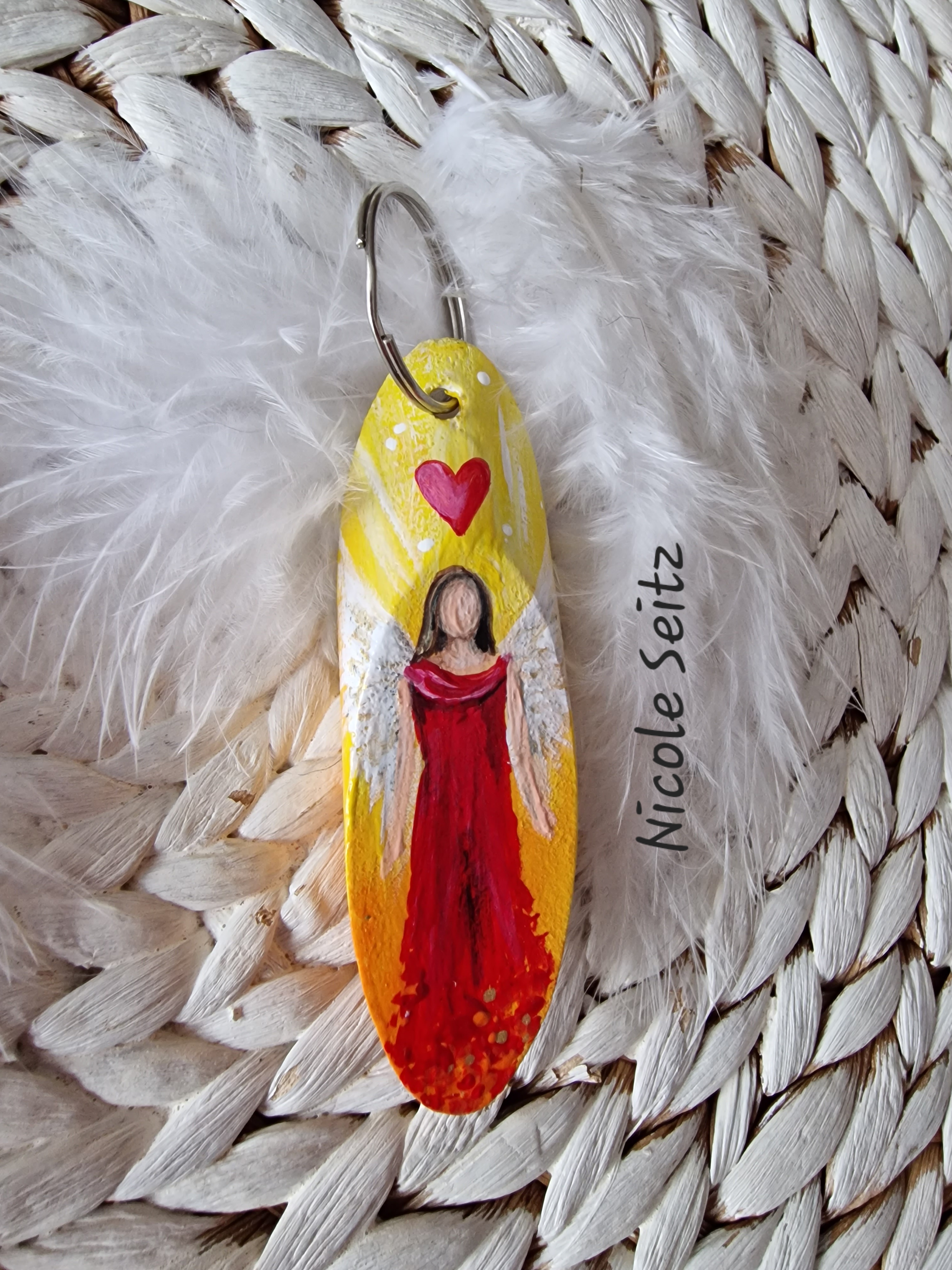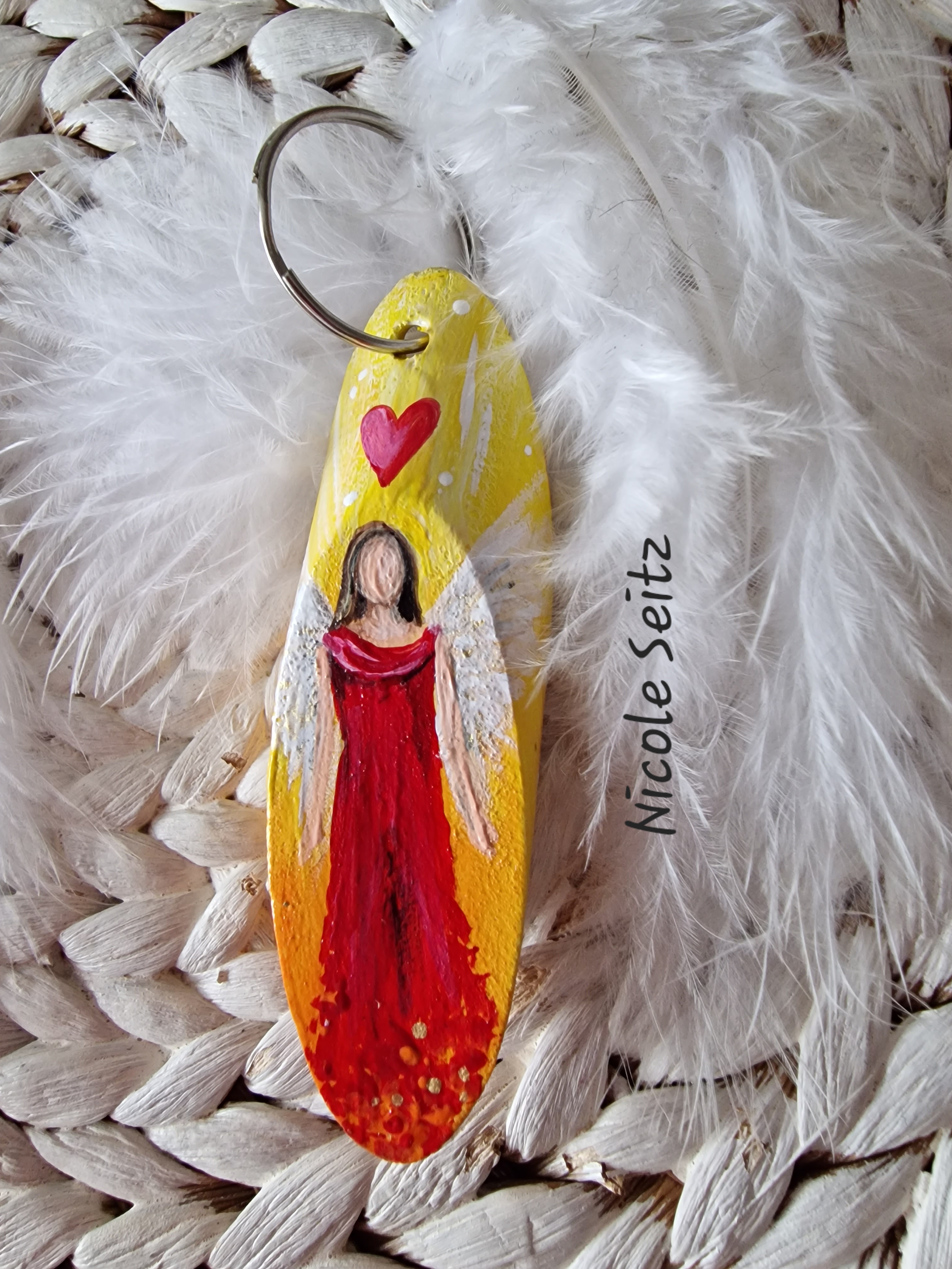 Mobile Preview: Schlüssel-/Taschenanhänger * Engel * handbemalt * Holz * Rot-Orange-Gelb * Herz