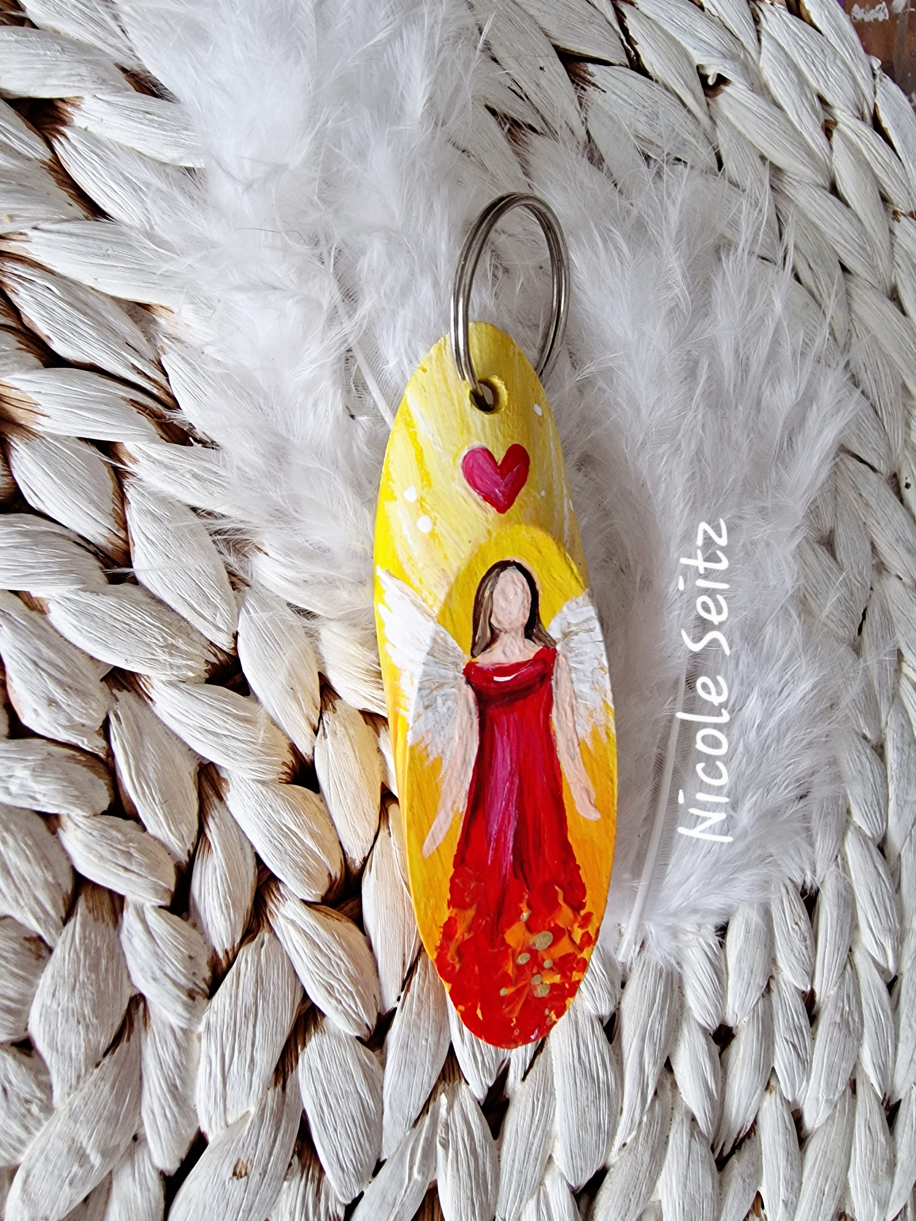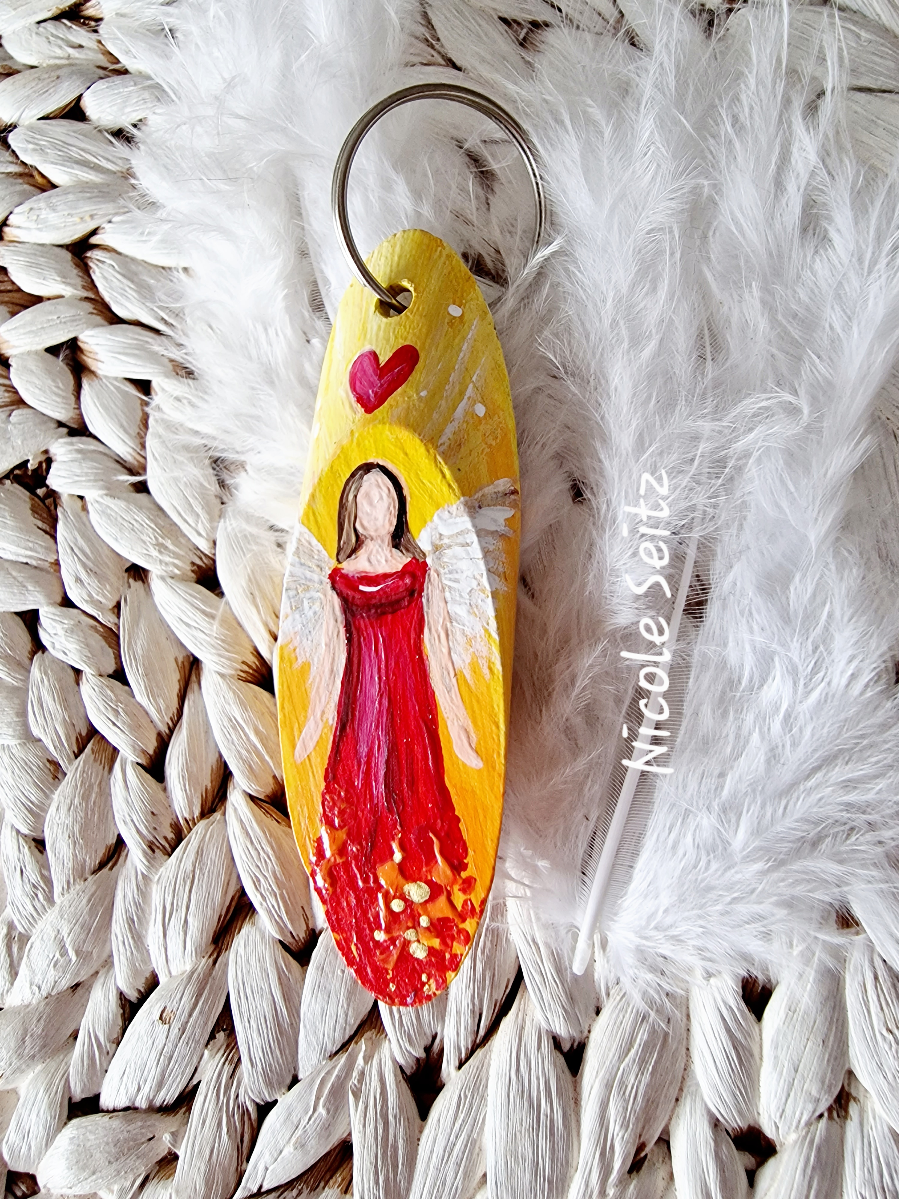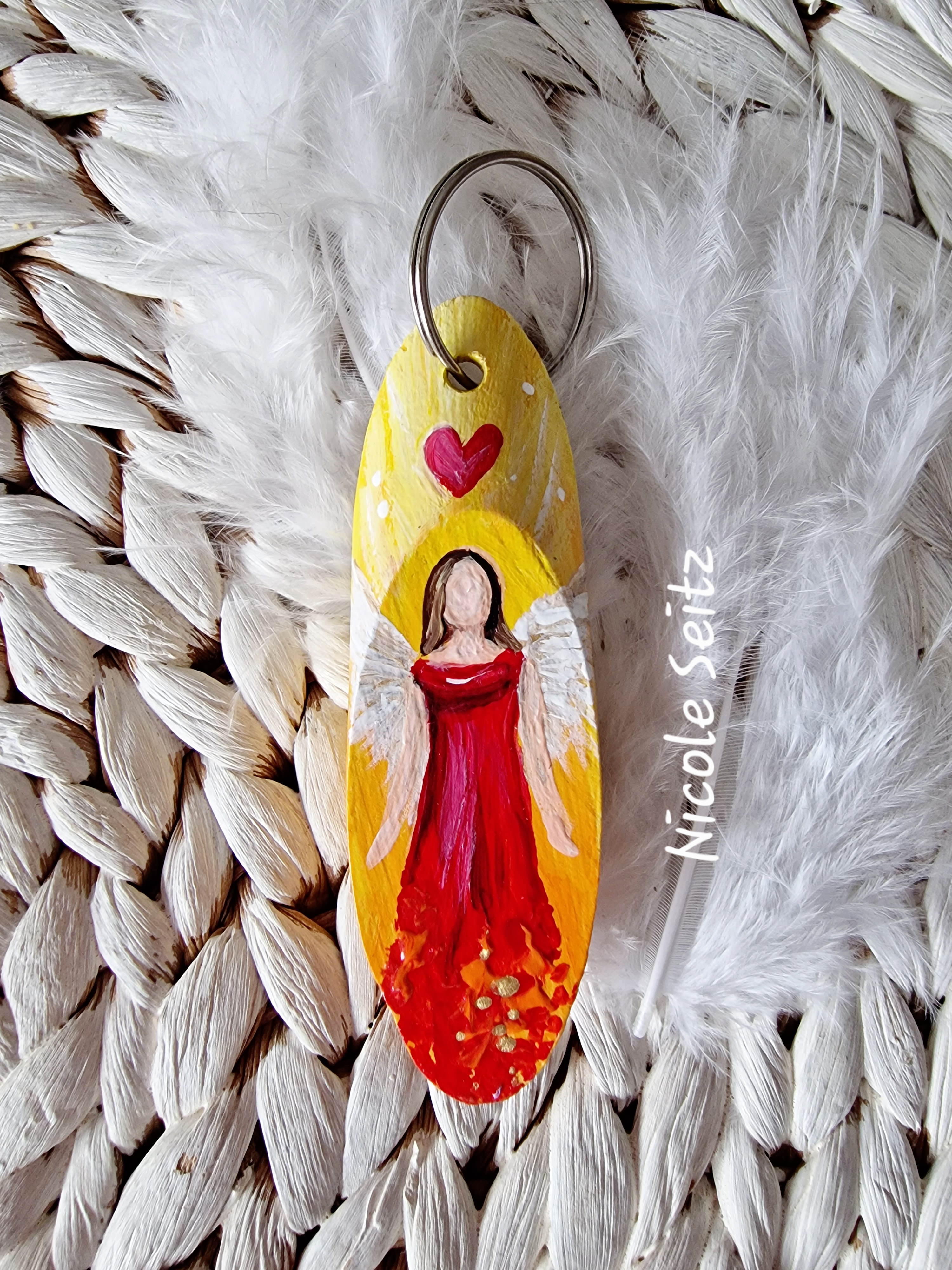 Mobile Preview: Schlüssel-/Taschenanhänger * Engel * handbemalt * Holz * Rot-Orange-Gelb * Herz
