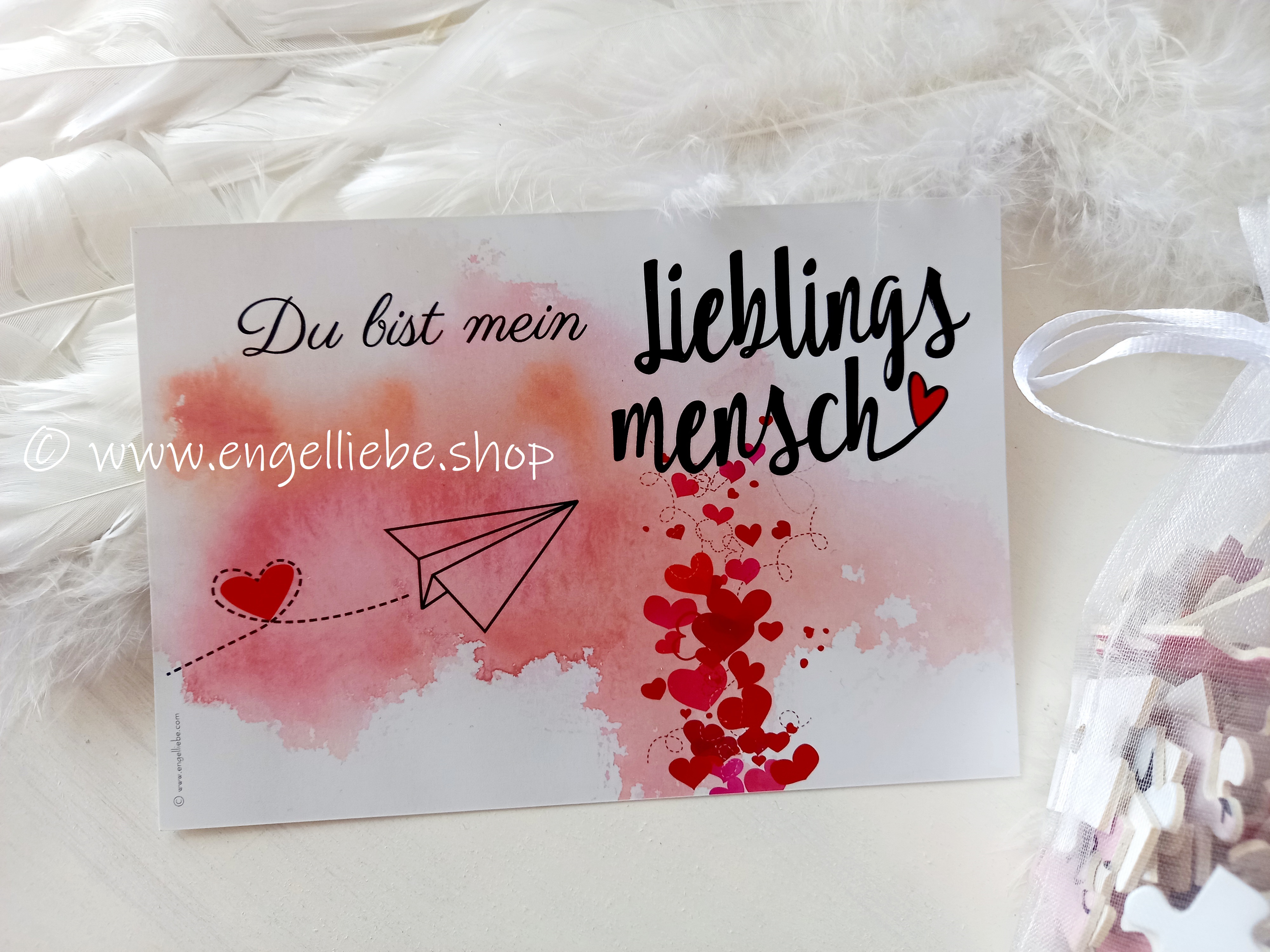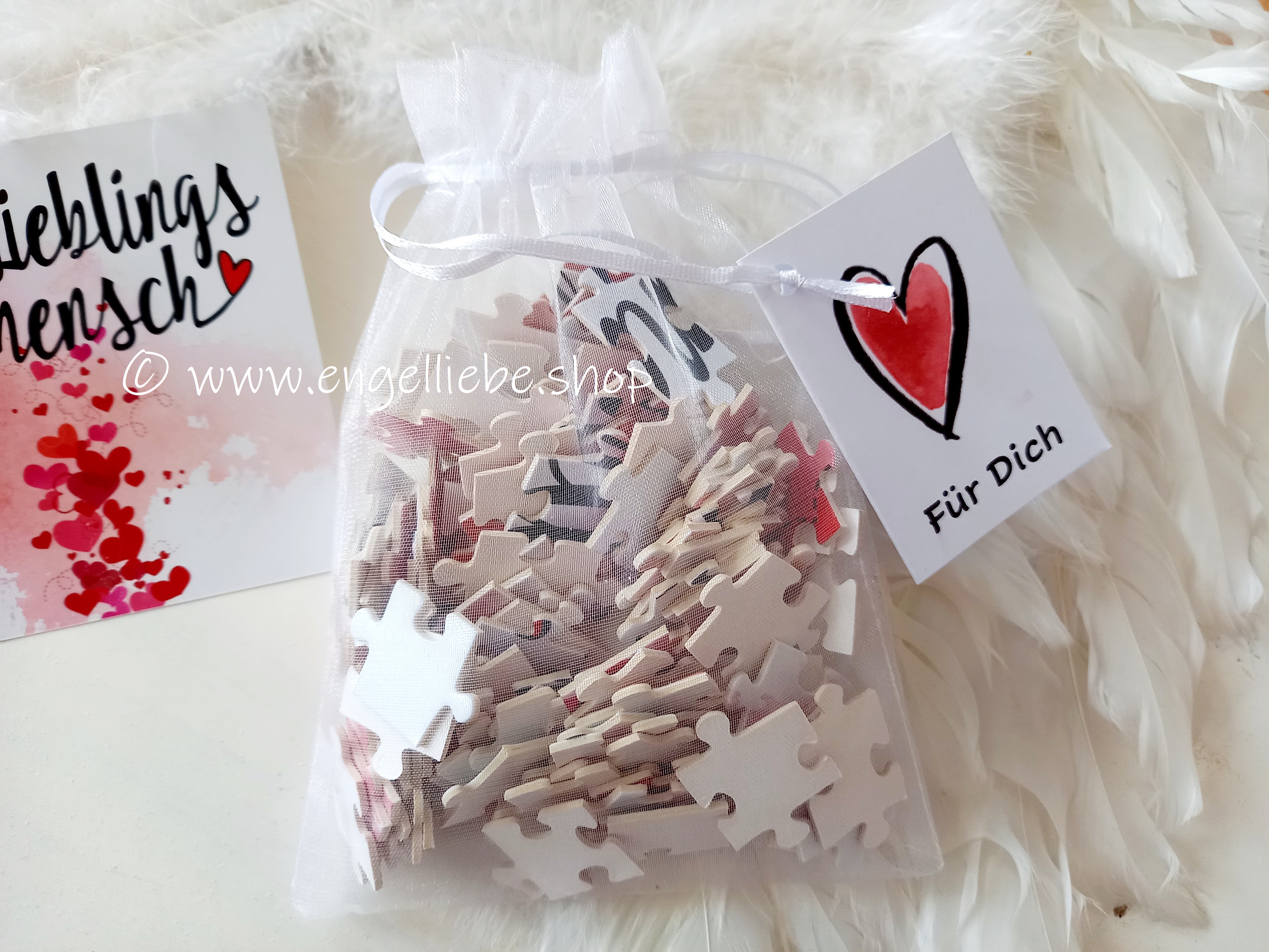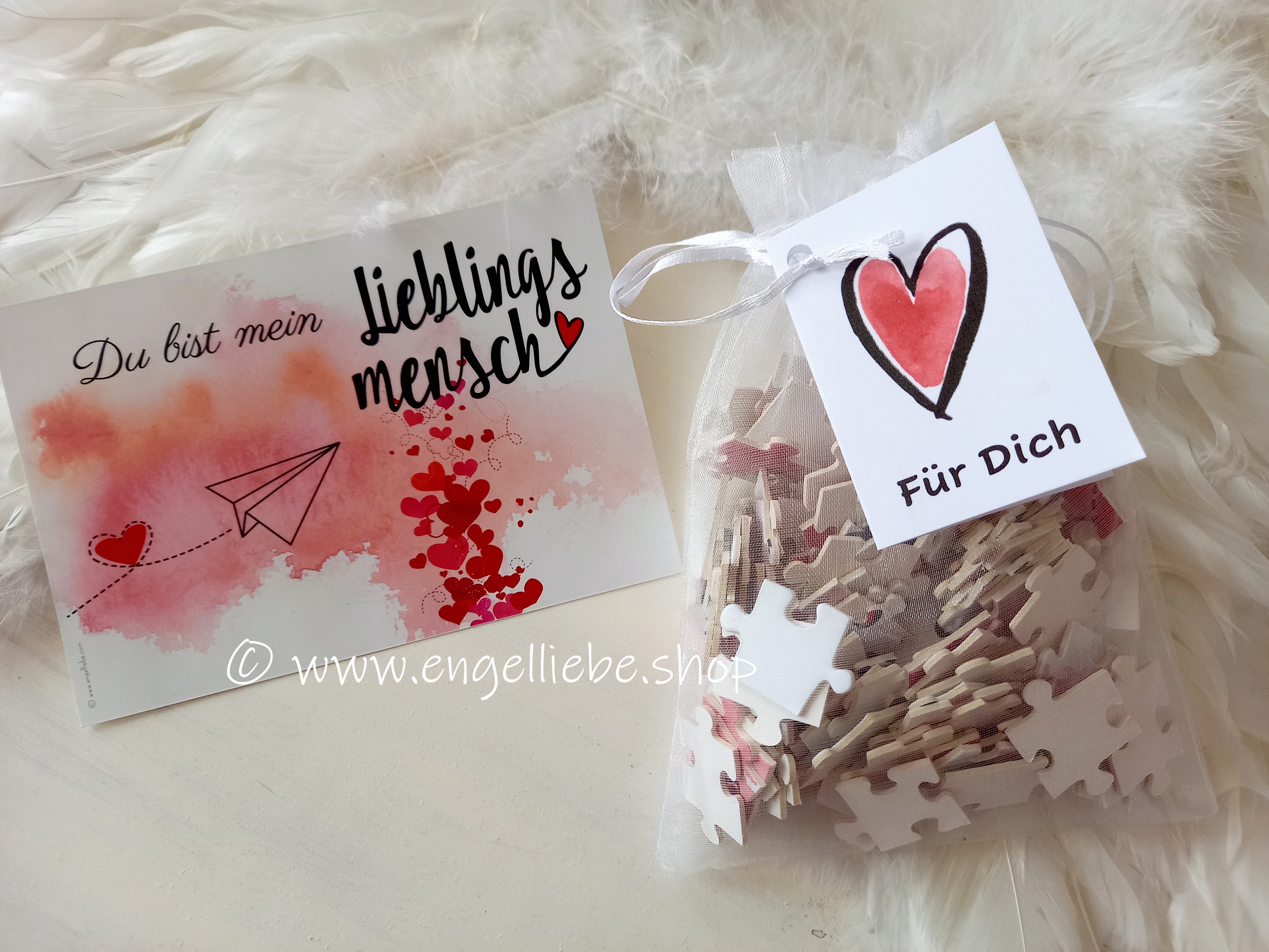 Puzzle * Du bist mein Lieblingsmensch In einem weißen Organzasäckchen mit einer kleinen Grußkarte Statt einer Karte ein Puzzle verschenken ;-) Puzzlegröße: 20 x 30 cm (112 Teile)