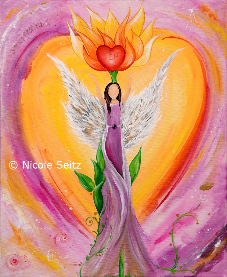 Der „ICH bin-Engel“ mit meiner vor einigen Jahren entworfenen „Ich-Blüte“. Beschreibung dazu siehe unten...