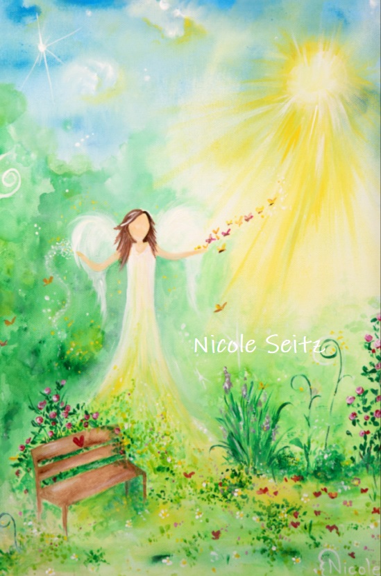 Das Engelbild habe ich passend zu einem Gedicht von mir "Bin in meinem Herzensgarten" gemalt (als Karte auch in meinem Shop hier erhältlich).