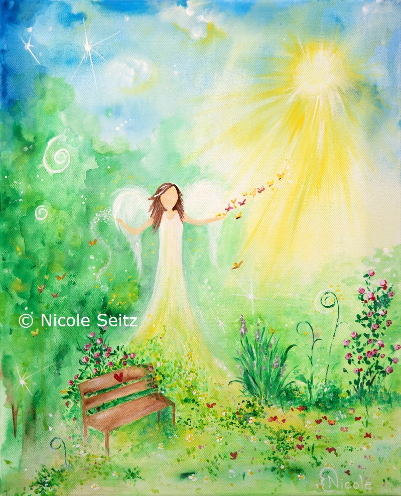 Das Engelbild habe ich passend zu einem Gedicht von mir "Bin in meinem Herzensgarten" gemalt (als Karte auch in meinem Shop hier erhältlich).
